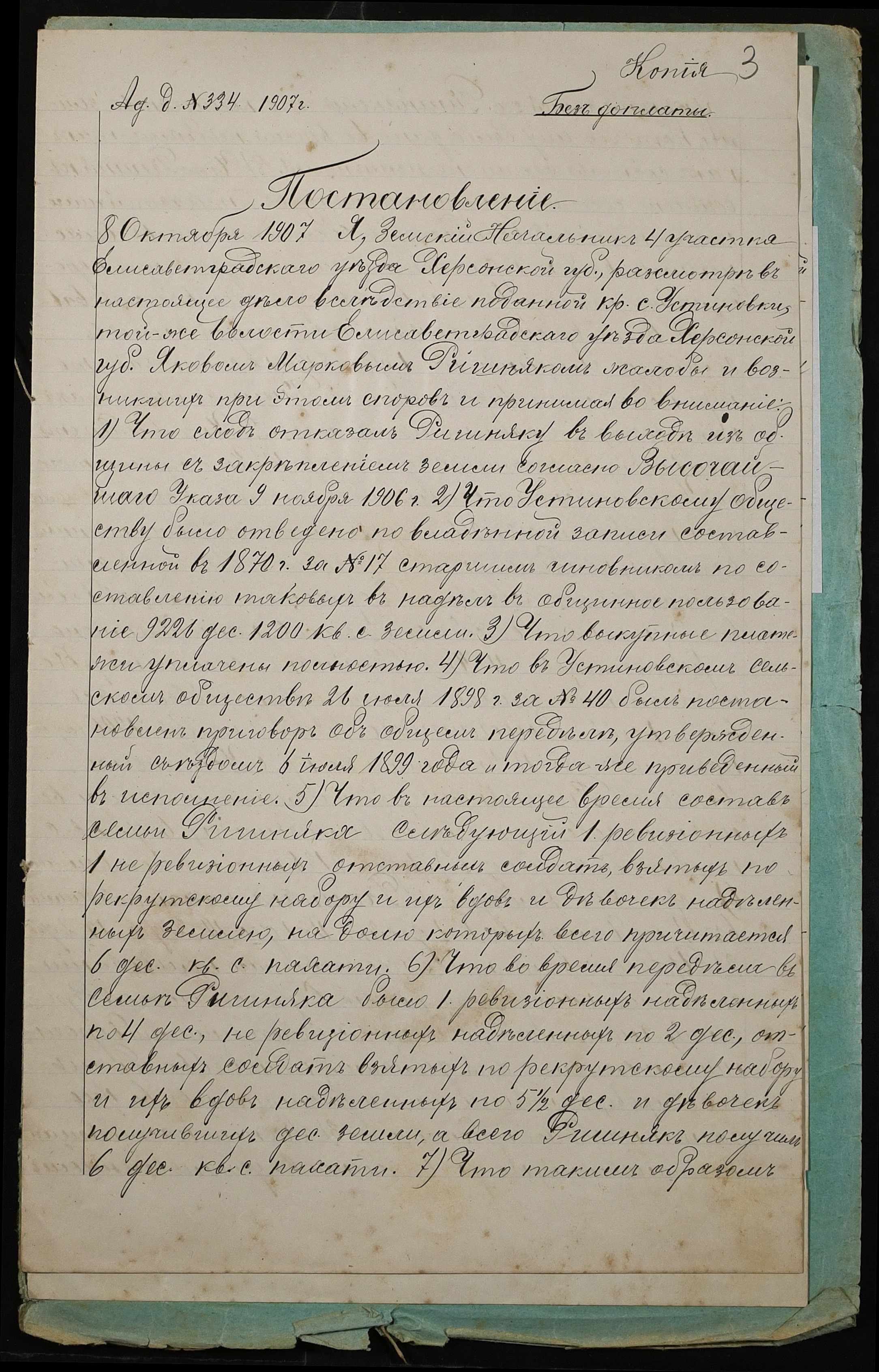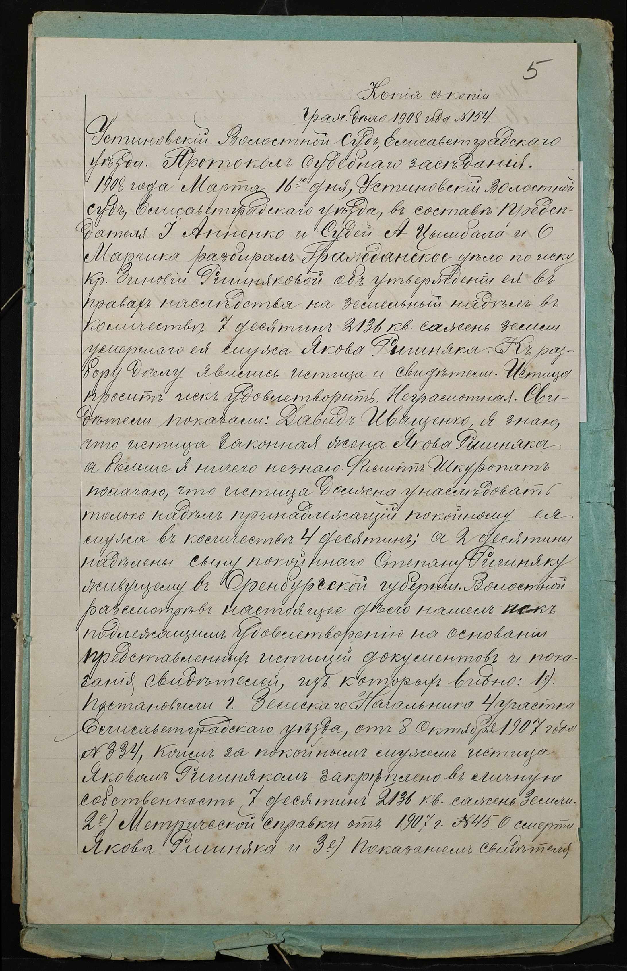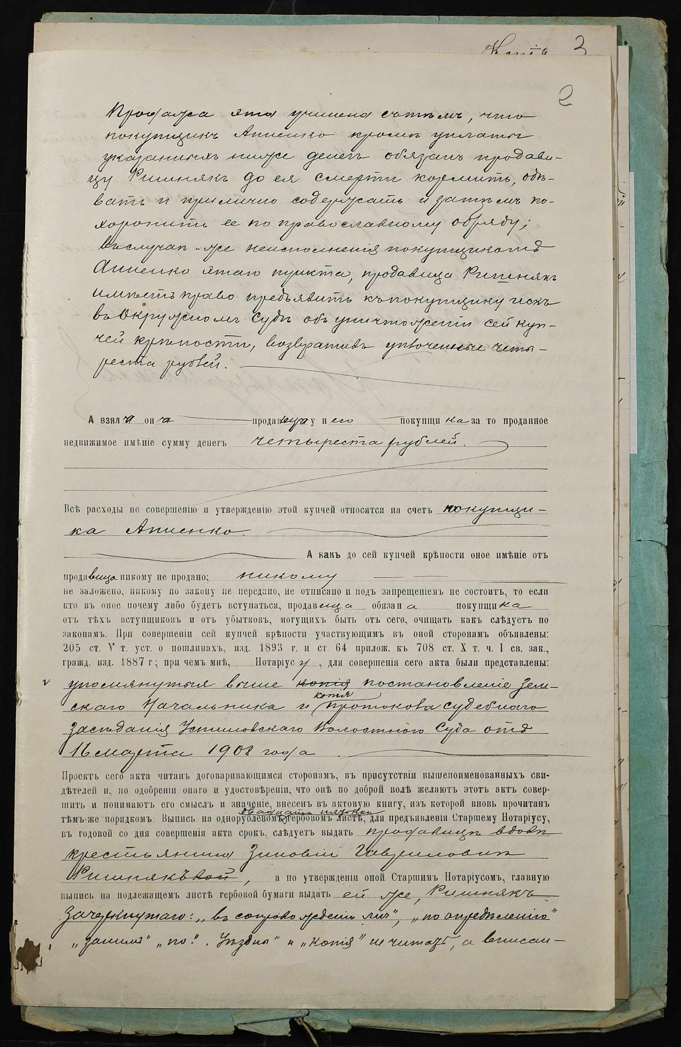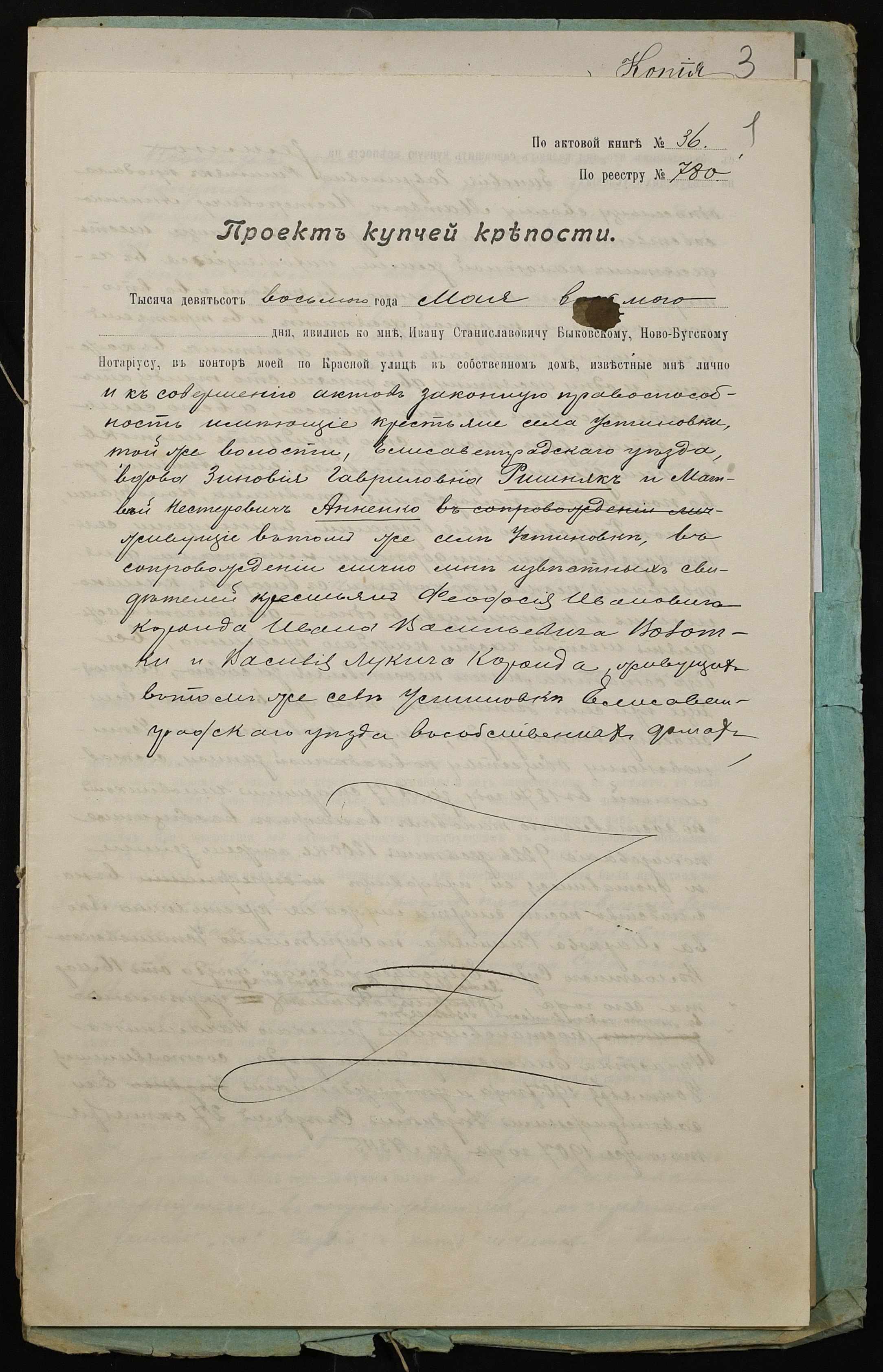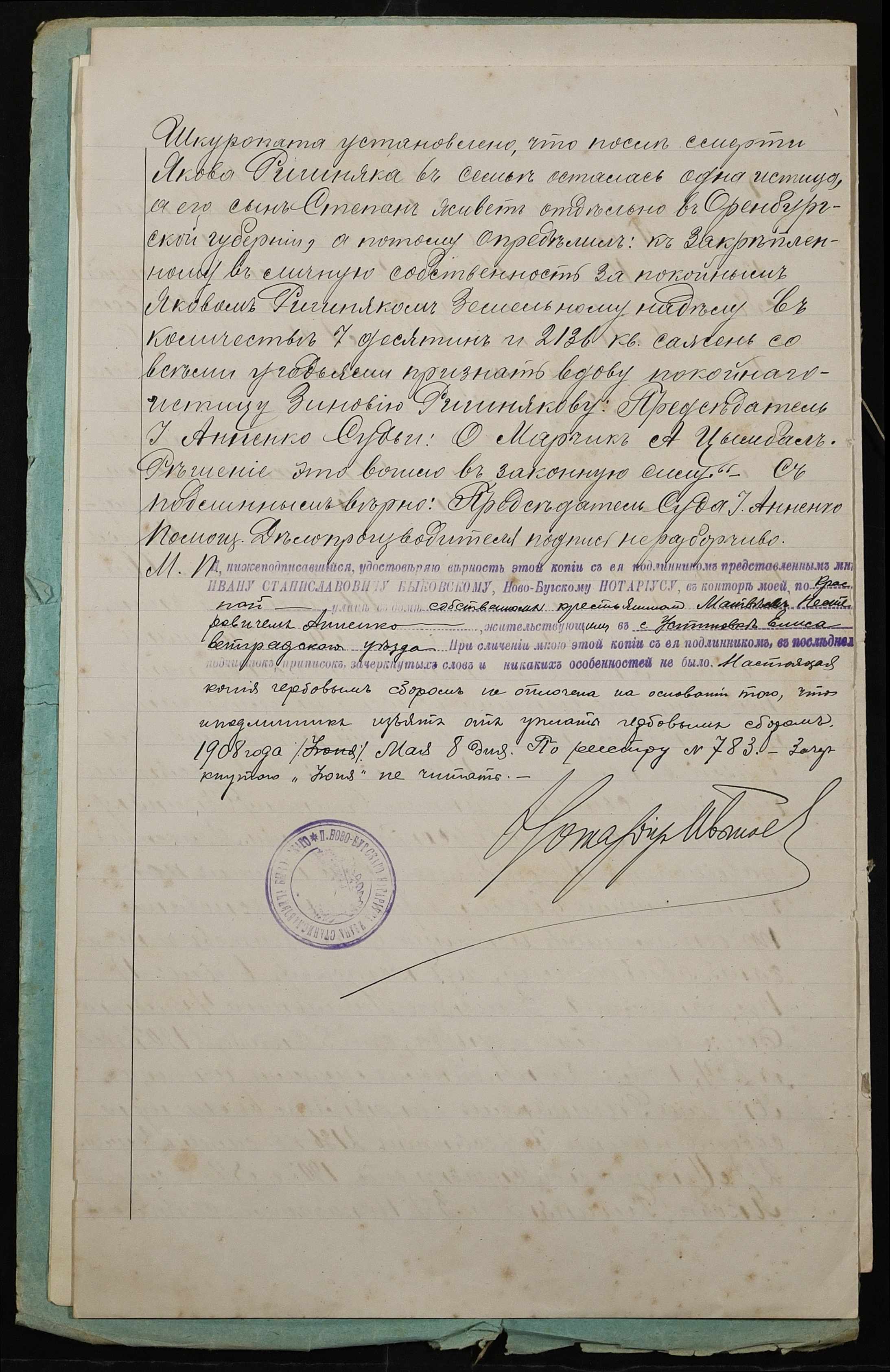 • • • • Справа № 23 “Справа про вчинення купчої про продаж землі удовою селянина Ришняк Зиновією Гаврилівною (Зиновией Гавриловной) на користь селянина Анненка Матвія (Анненко Матвея) Несторовича”