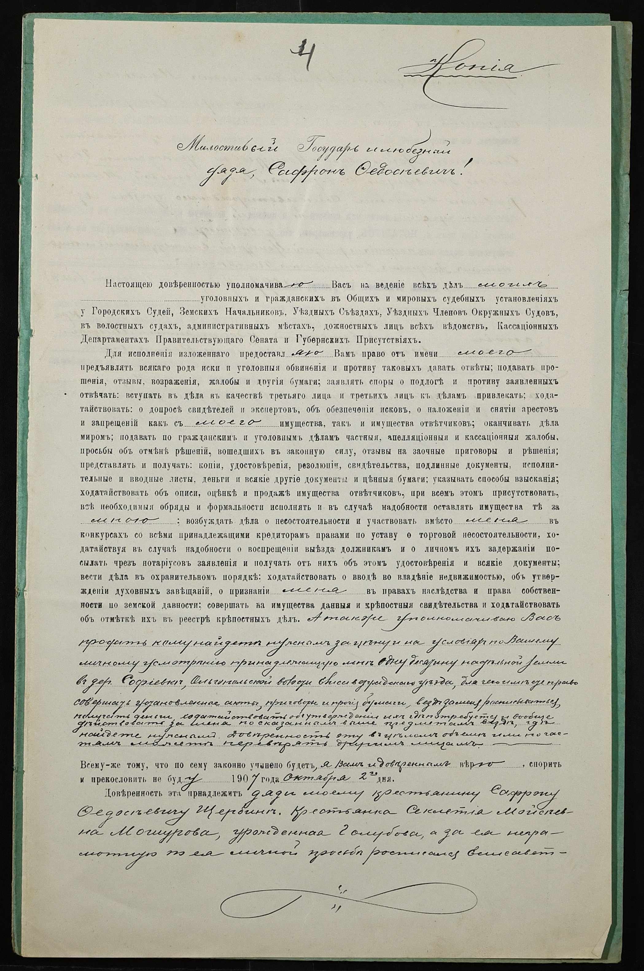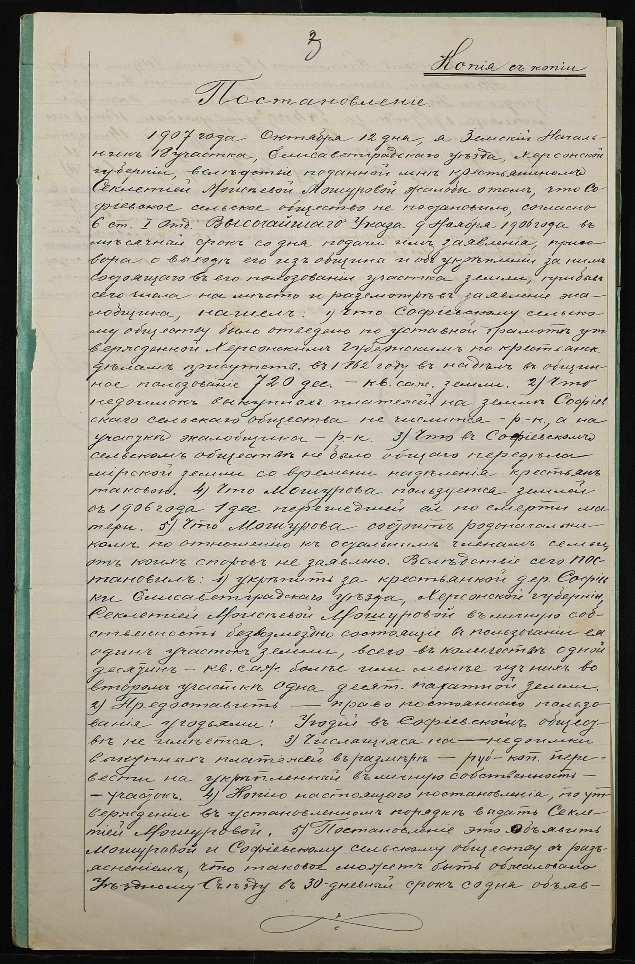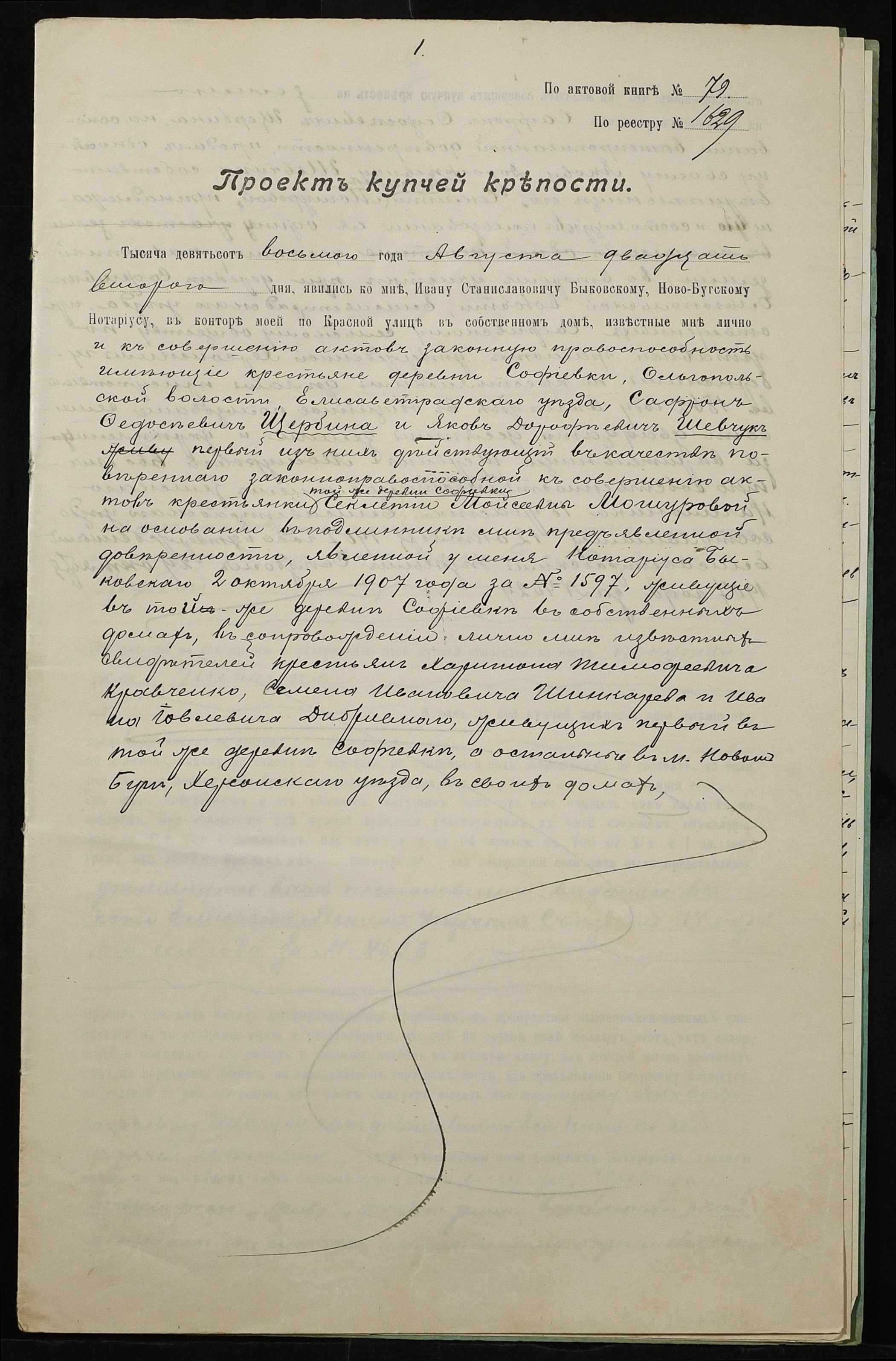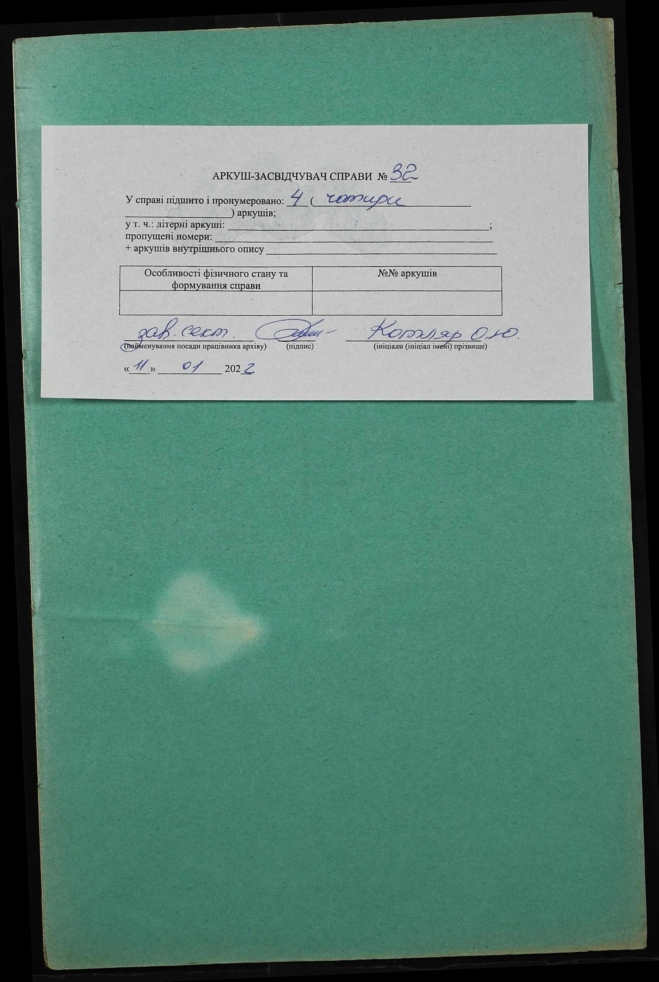 • • • • Справа № 32 “Справа про вчинення купчої про продаж землі селянином Щербиною (Щербиной) Сафроном Федосійовичем (Федосеевичем) на користь Шевчука Якова Дорофійовича (Дорофеевича)”