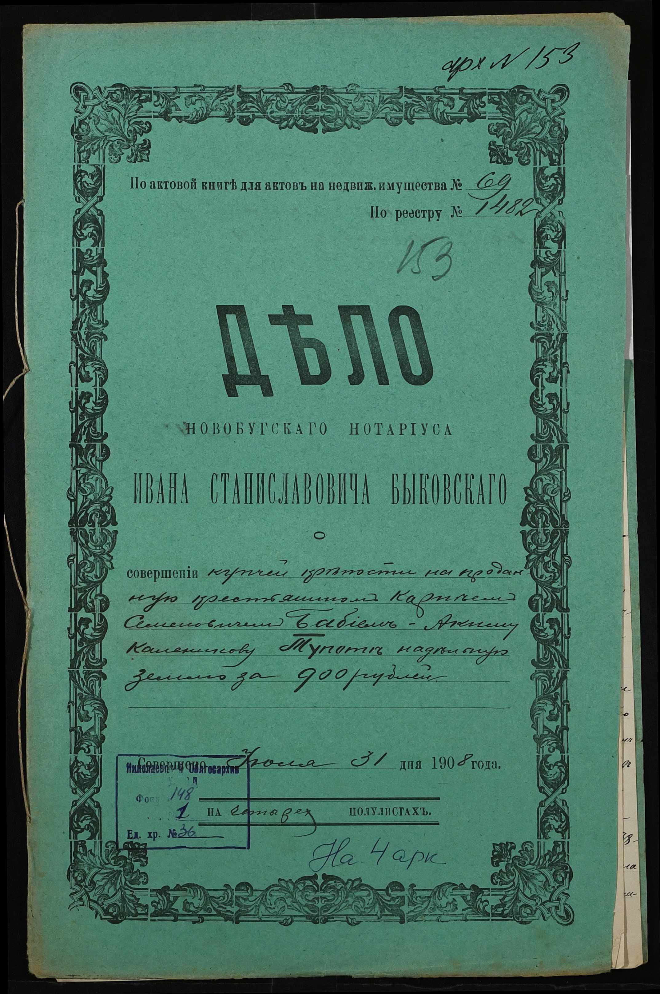 ◦ ◦ Фонд № 148 “Контора новобузького нотаріуса Биковського Івана Станіславовича”