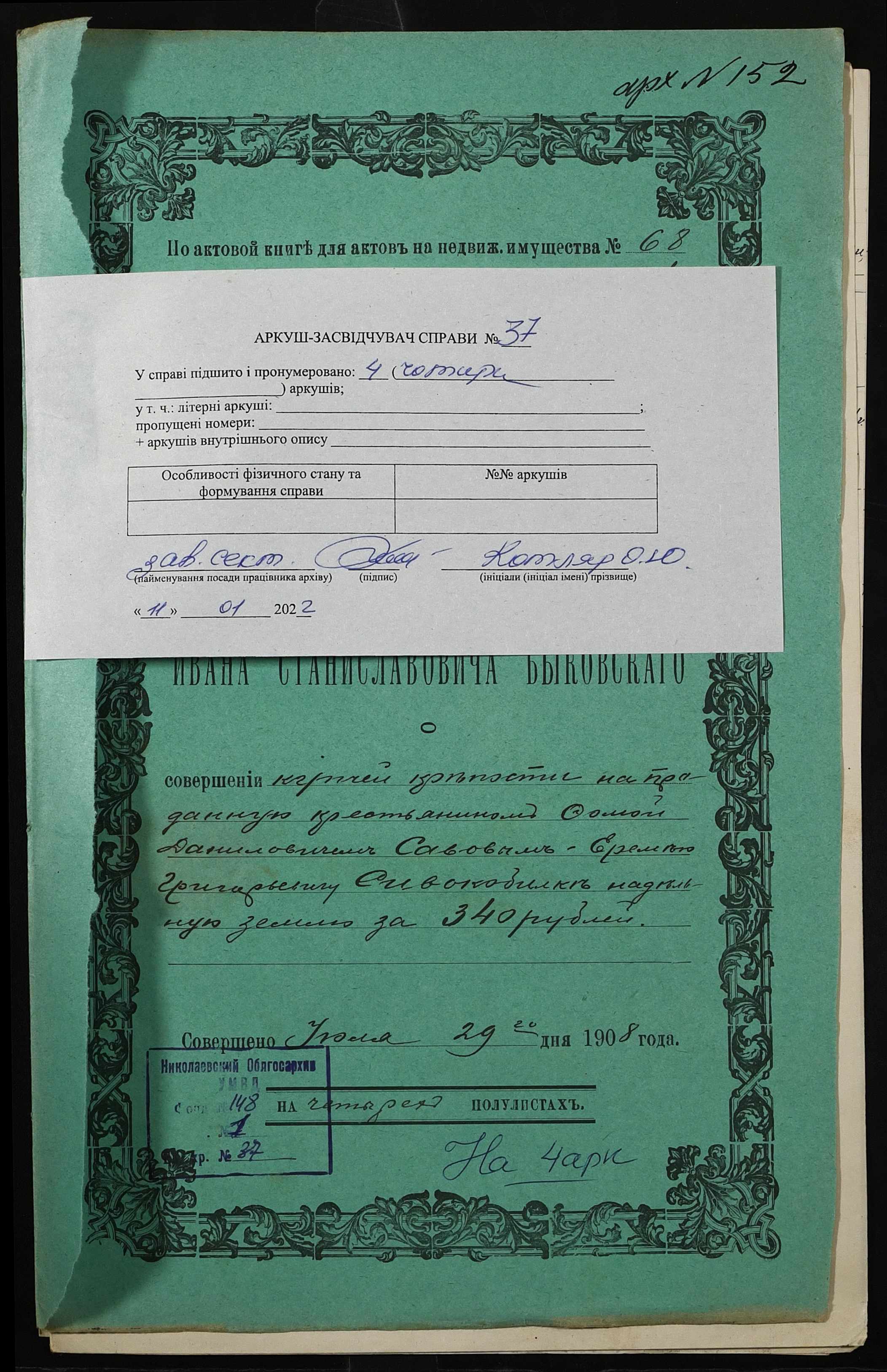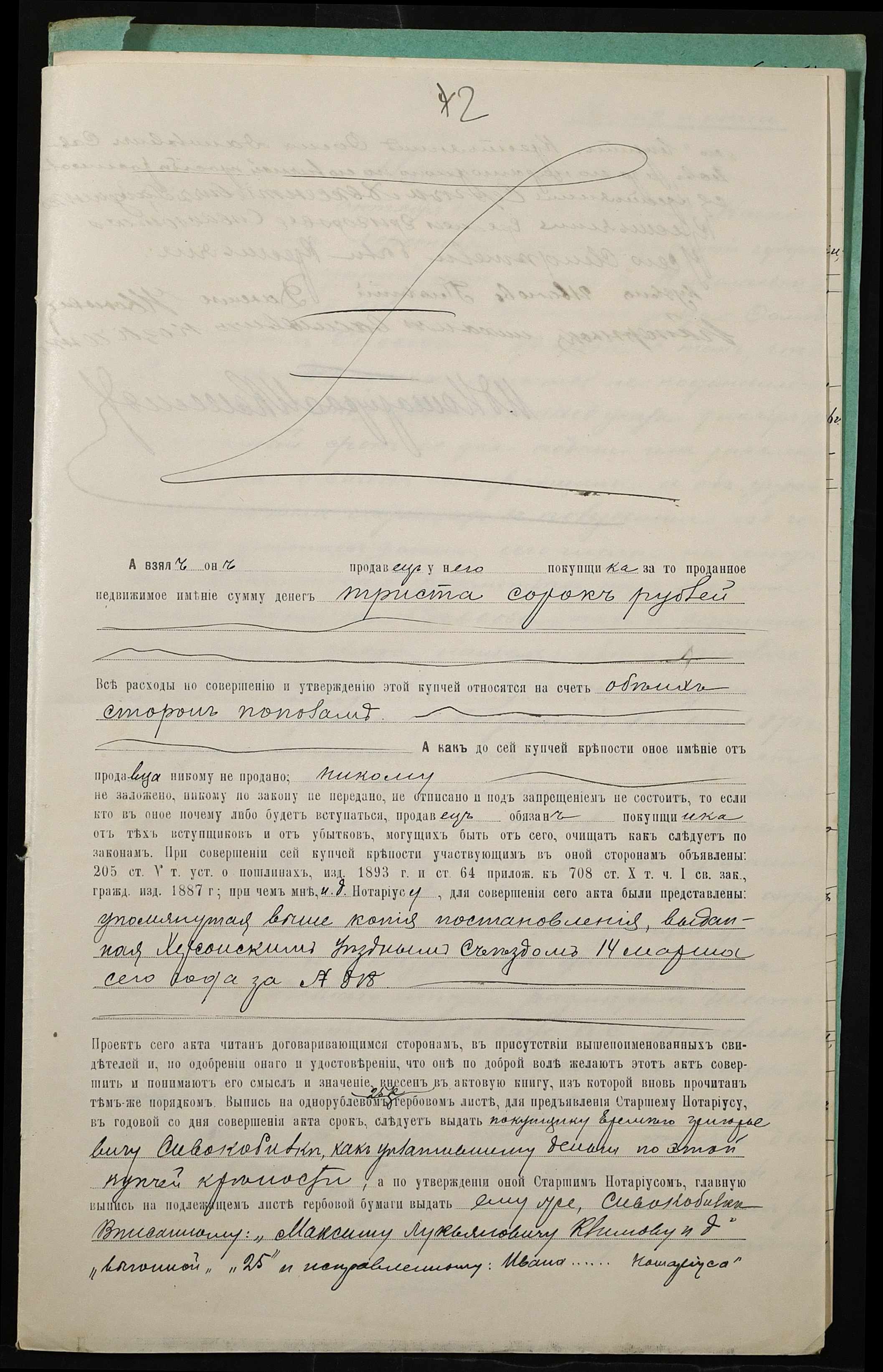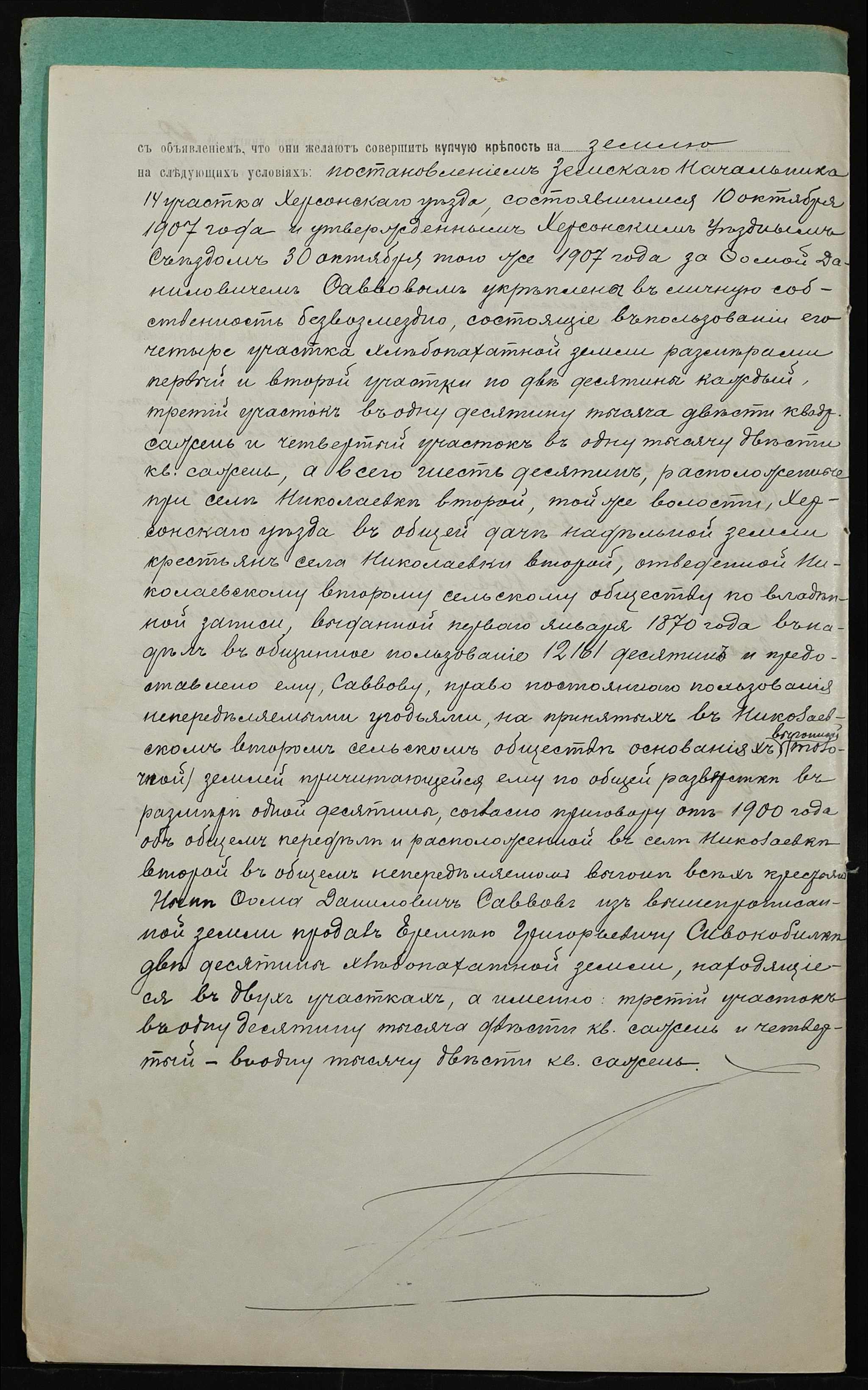 • • • • Справа № 37 “Справа про вчинення купчої про продаж землі селянином Савовим Хомою (Савовым Фомой) Даниловичем на користь селянина Сивокобилки Яреми Григоровича (Сивокобылки Еремея Григорьевича)”