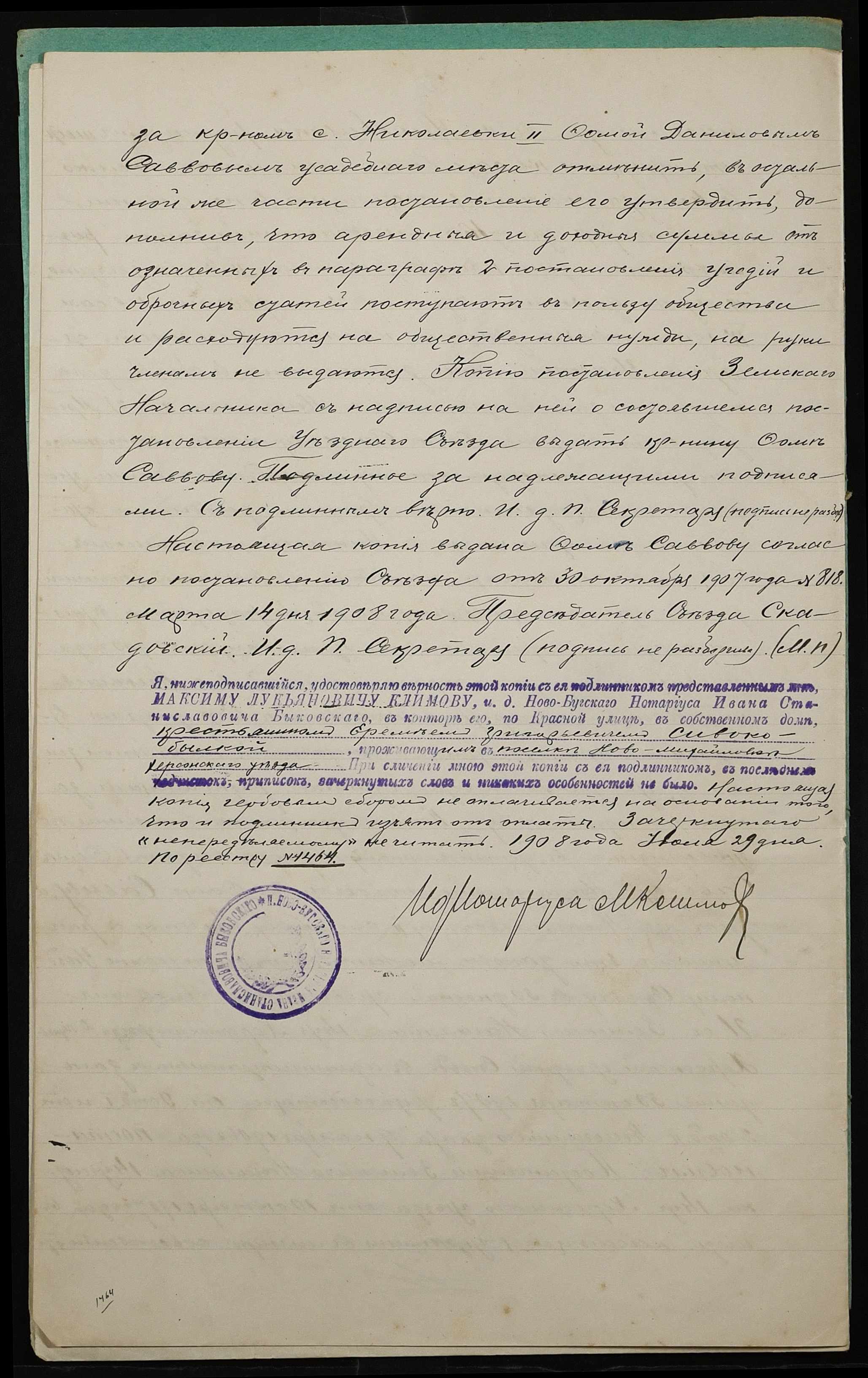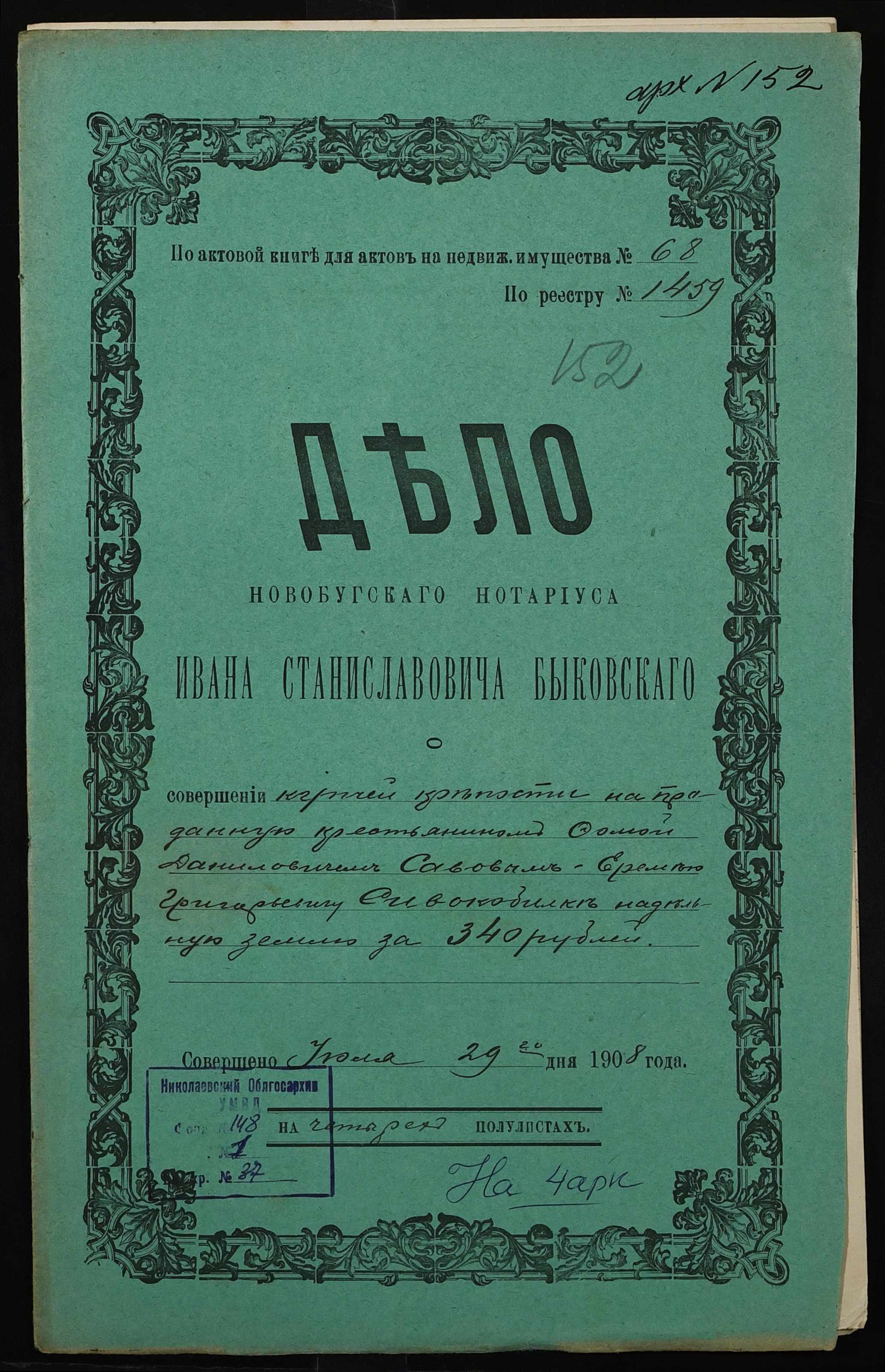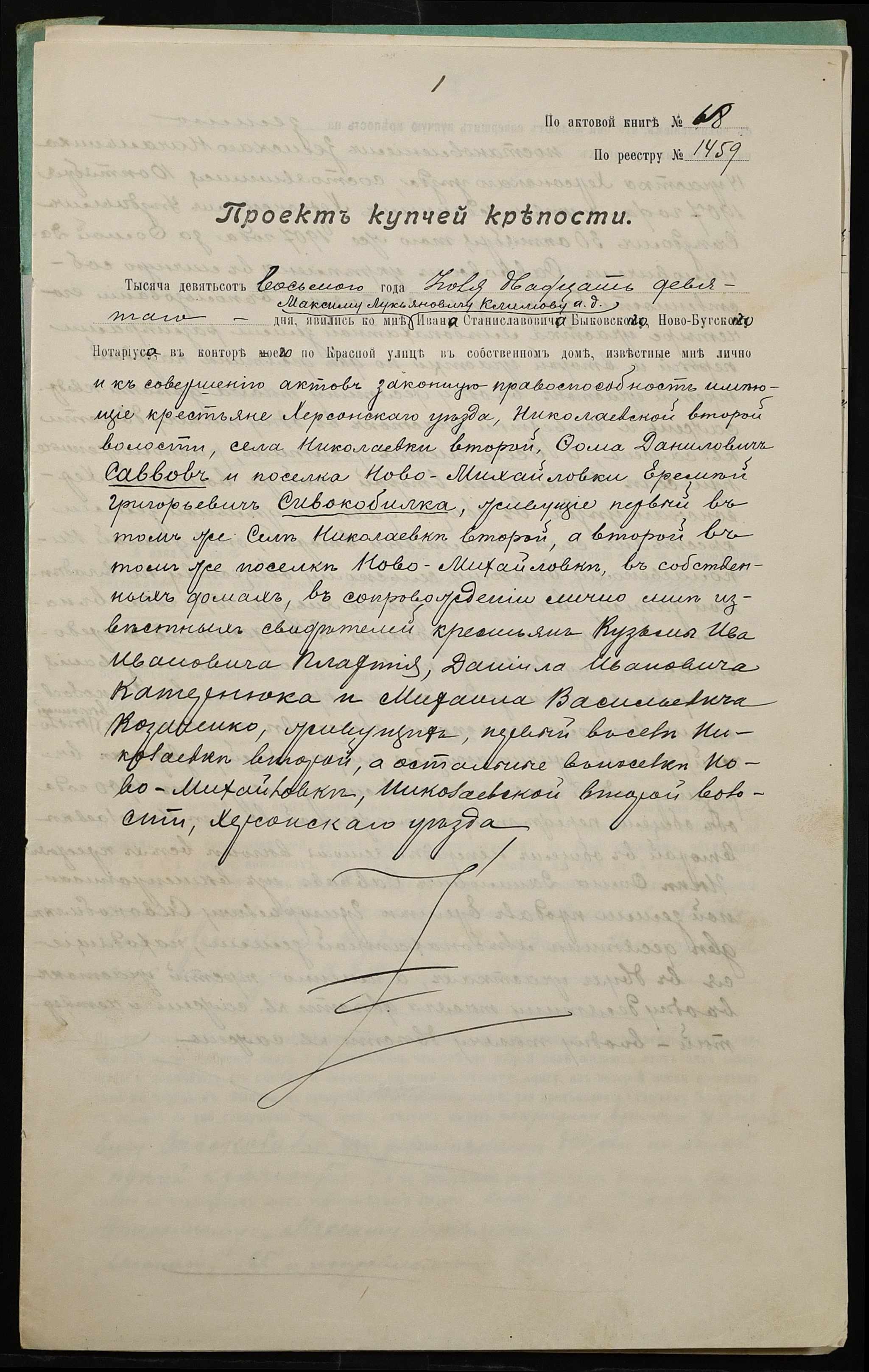 • • • • Справа № 37 “Справа про вчинення купчої про продаж землі селянином Савовим Хомою (Савовым Фомой) Даниловичем на користь селянина Сивокобилки Яреми Григоровича (Сивокобылки Еремея Григорьевича)”