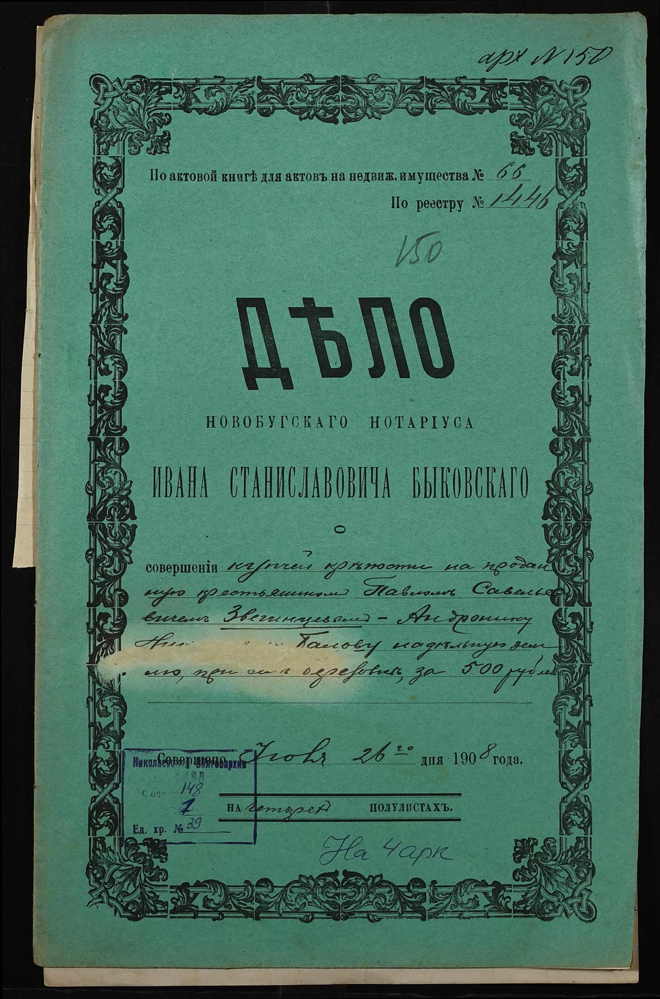 ◦ ◦ Фонд № 148 “Контора новобузького нотаріуса Биковського Івана Станіславовича”