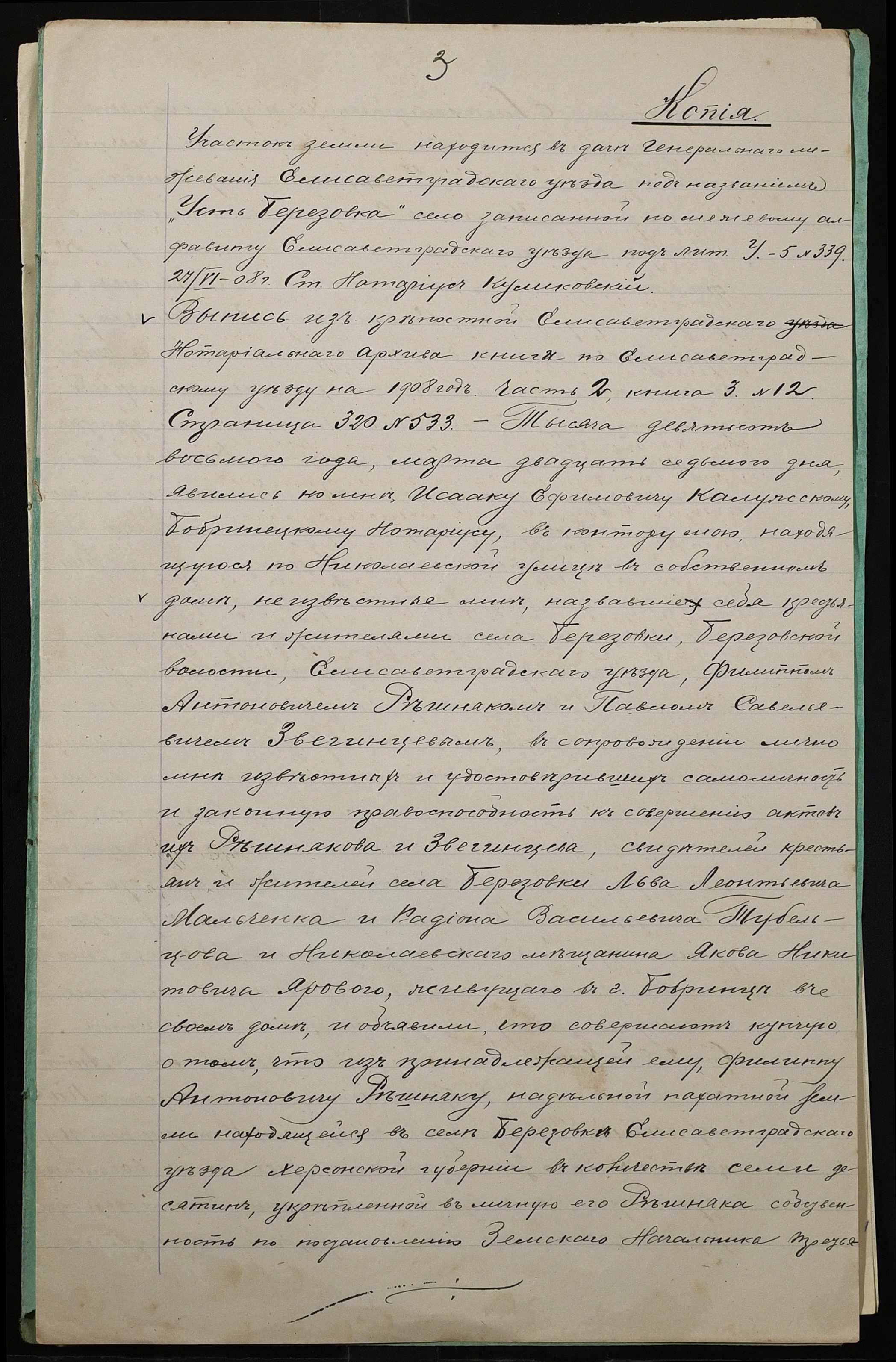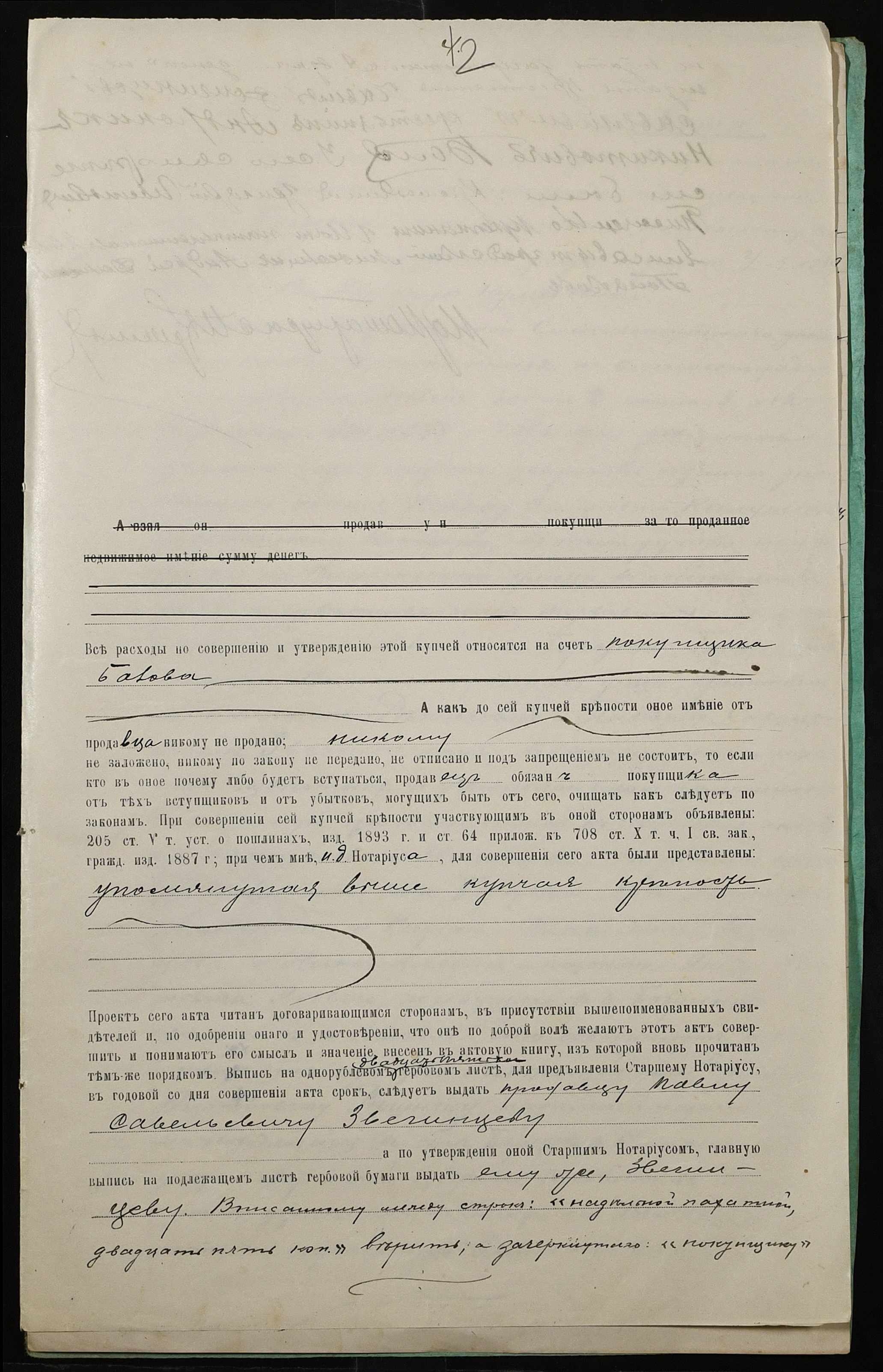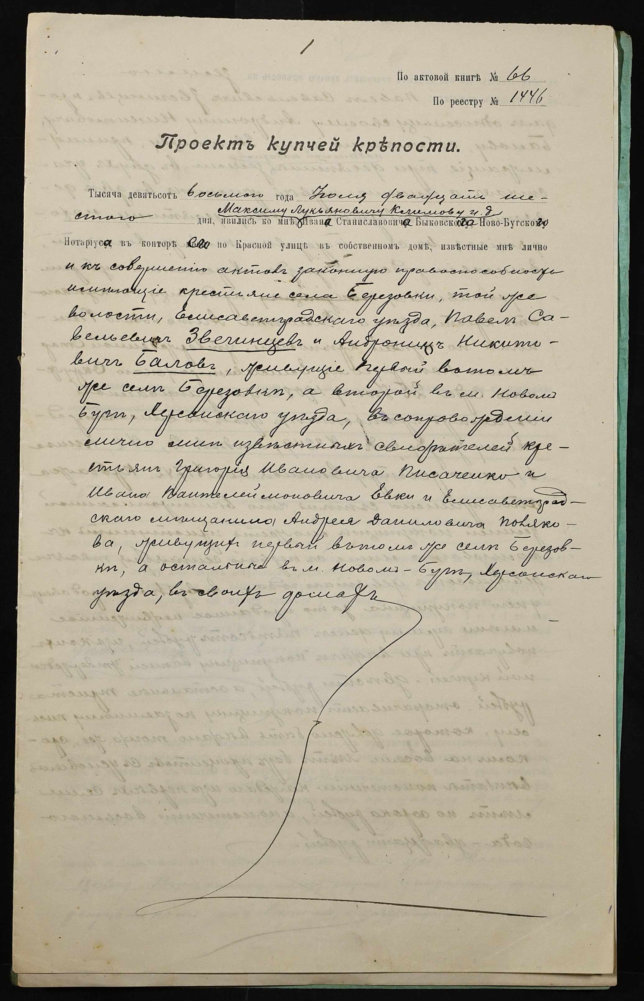 • • • • Справа № 39 “Справа про вчинення купчої про продаж землі селянином Звегінцевим (Звегинцевым) Павлом Савелійовичем (Савельевичем) на користь селянина Балова Андроника Микитовича (Никитовича)”