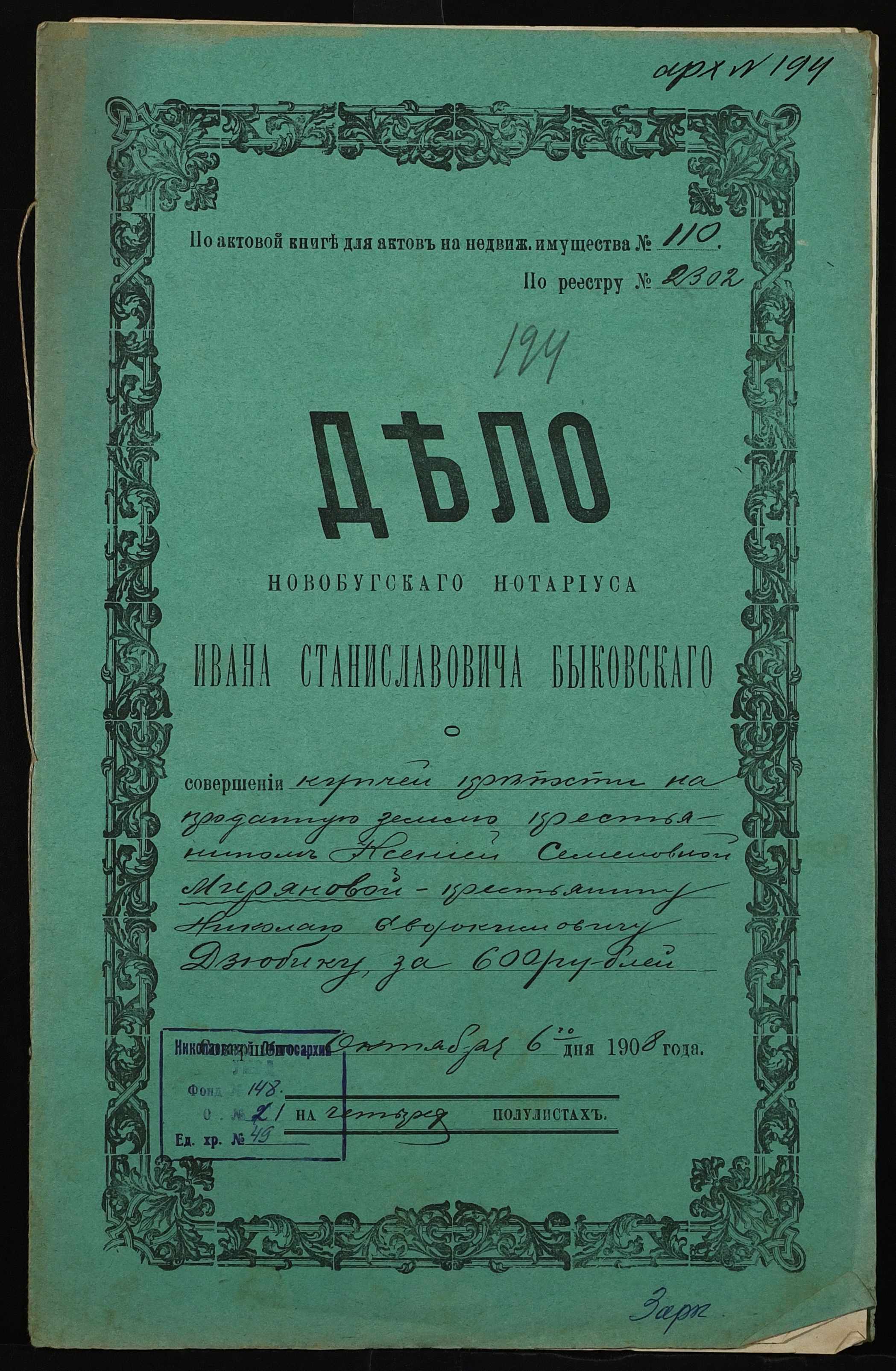 ◦ ◦ Фонд № 148 “Контора новобузького нотаріуса Биковського Івана Станіславовича”