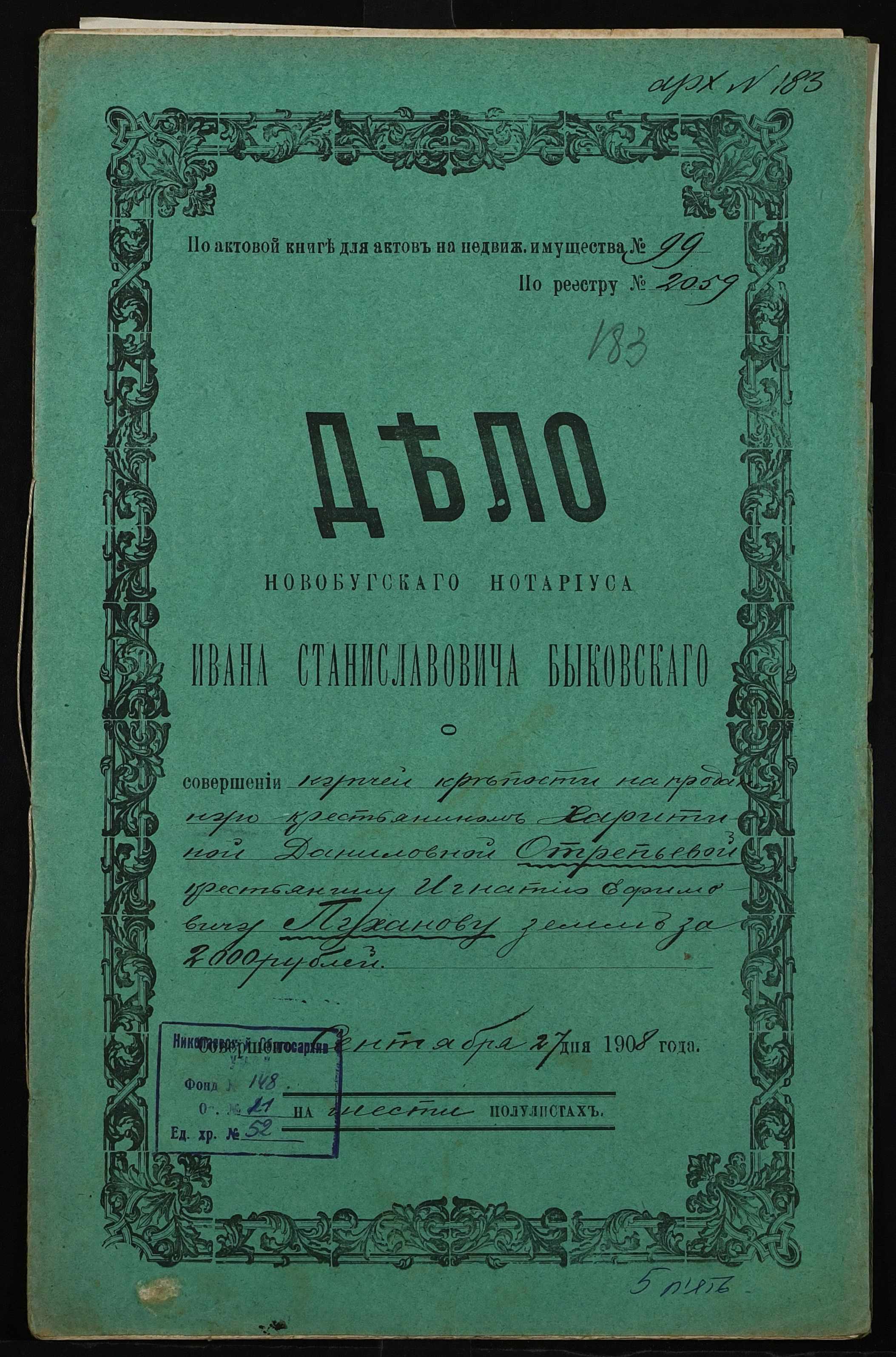 ◦ ◦ Фонд № 148 “Контора новобузького нотаріуса Биковського Івана Станіславовича”