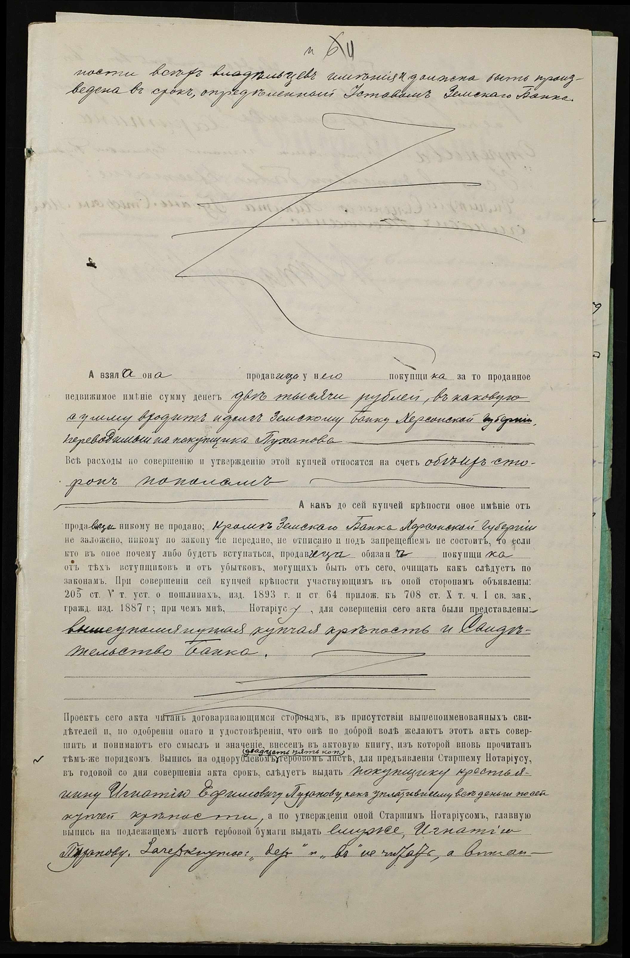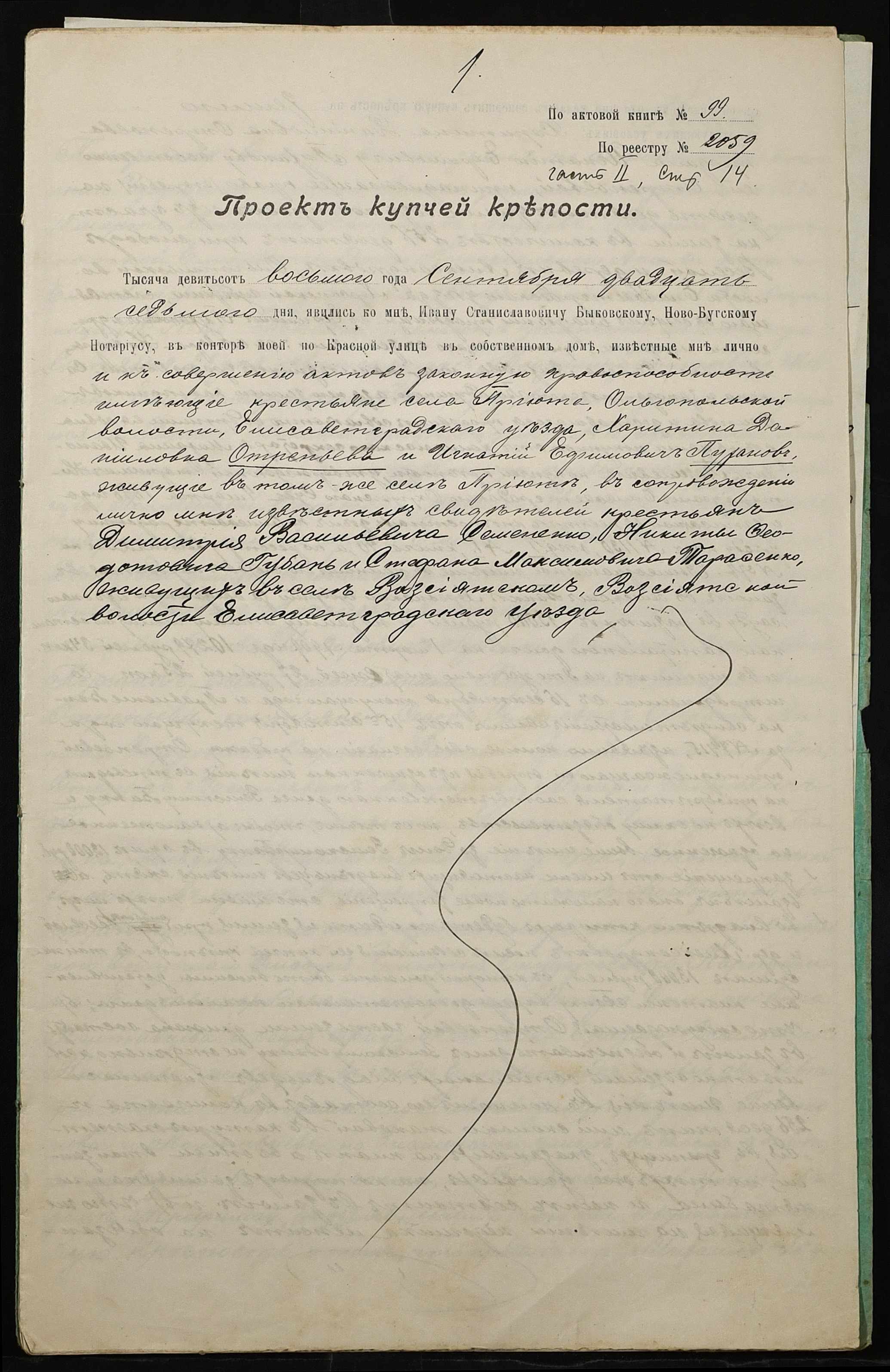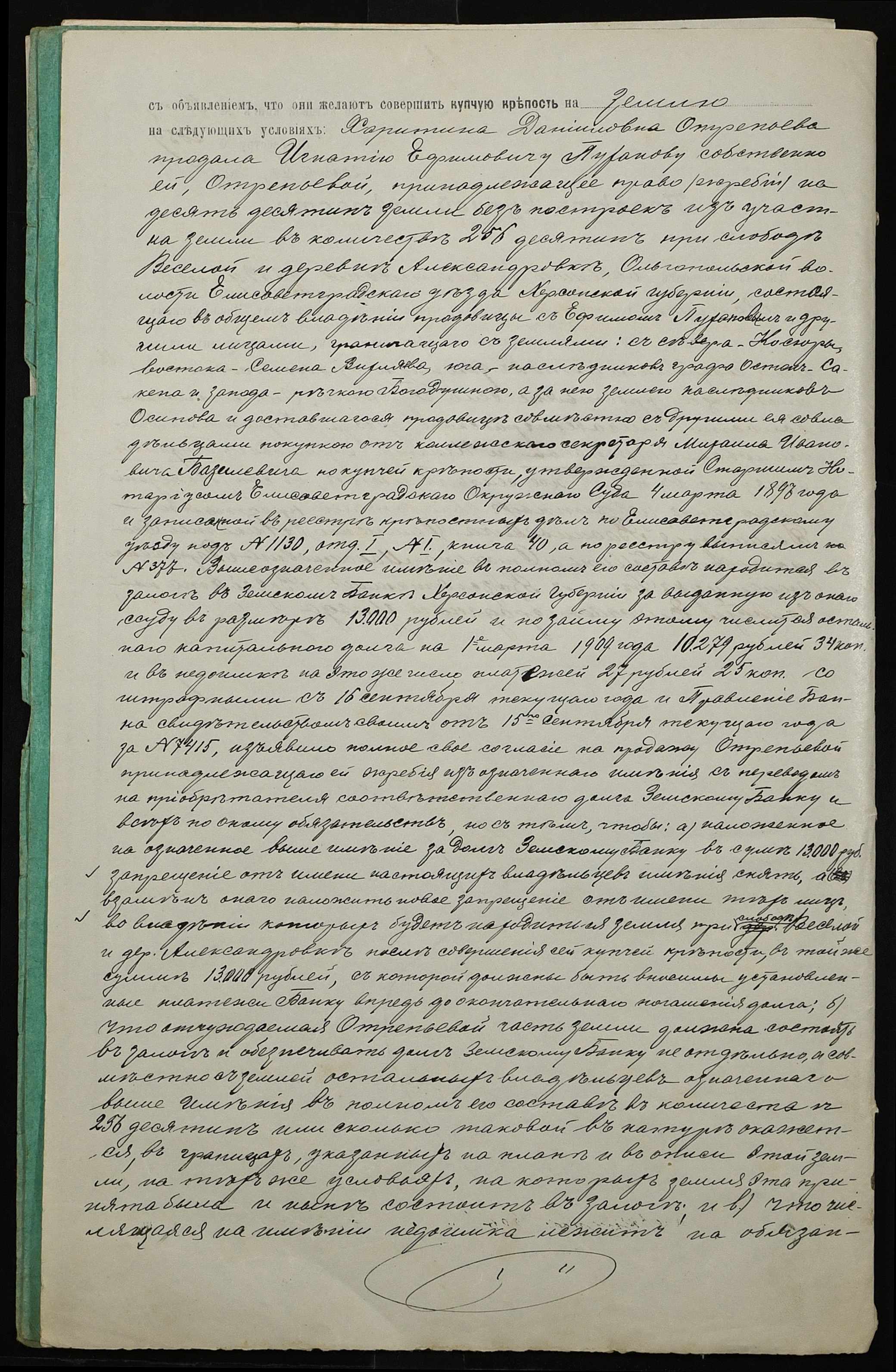 • • • • Справа № 52 “Справа про вчинення купчої про продаж землі селянкою Отреп’євою Харитиною Данилівною (Отрепьевой Харитиной Даниловной) на користь селянина Пуханова Гната Юхимовича (Игната Ефимовича)”