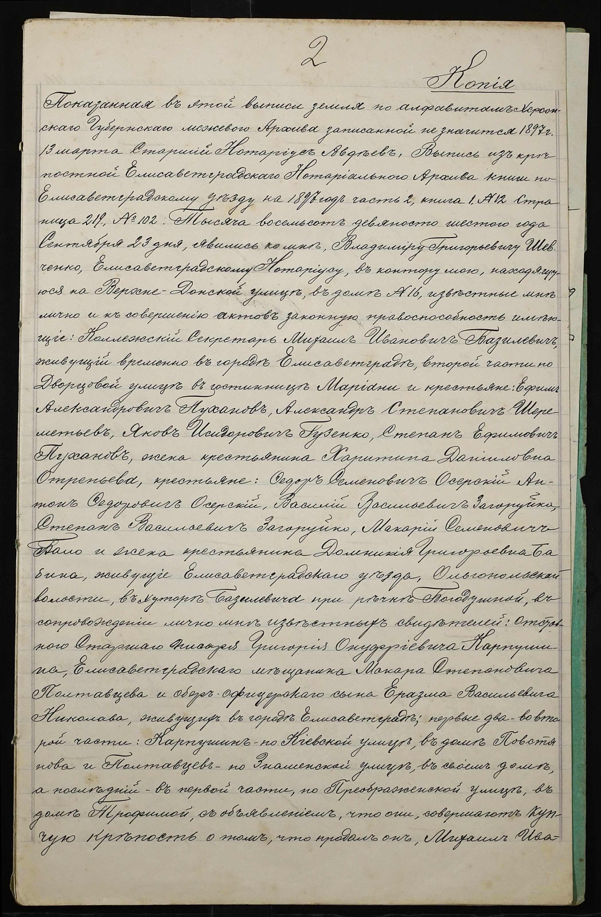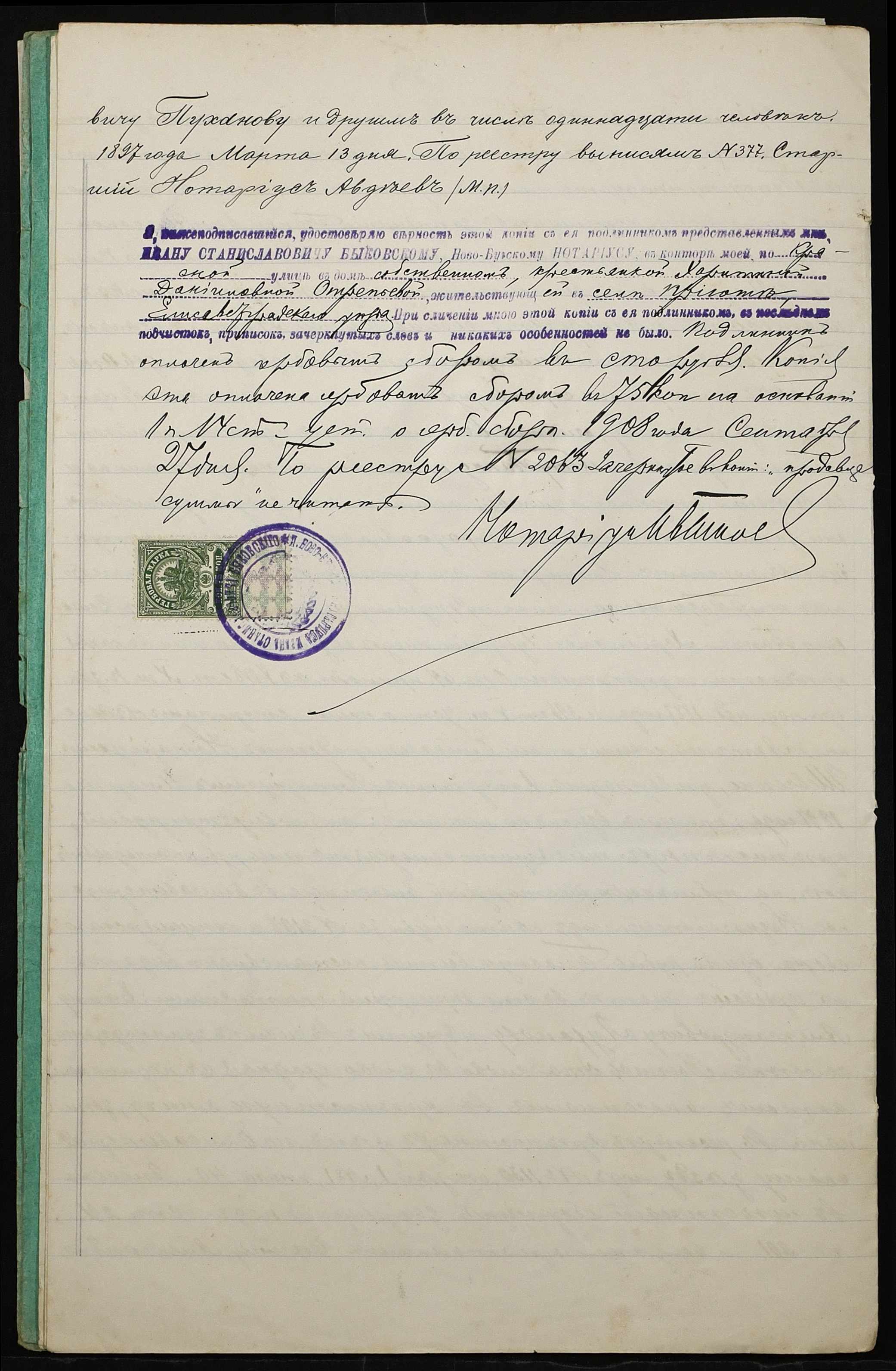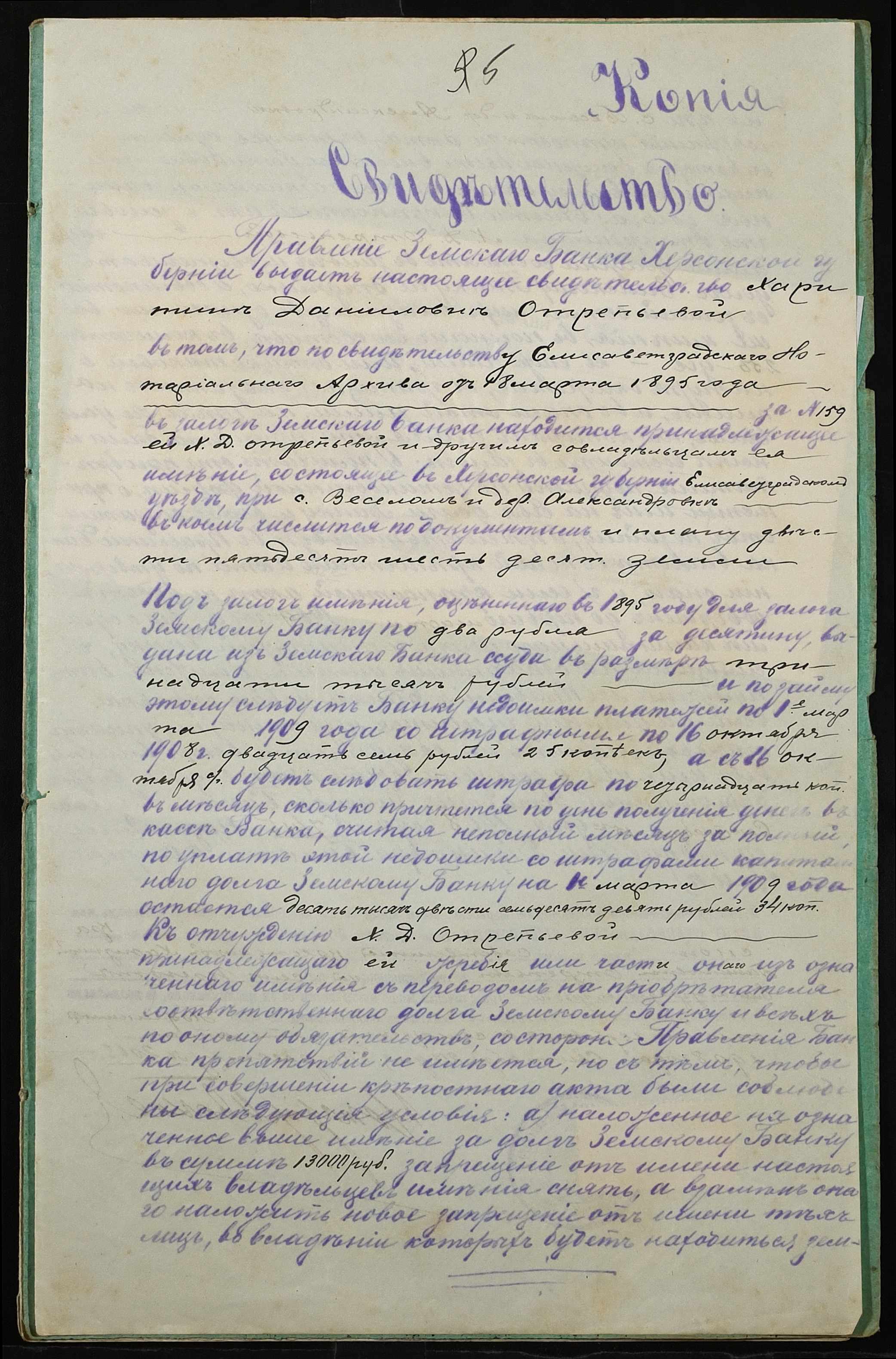 • • • • Справа № 52 “Справа про вчинення купчої про продаж землі селянкою Отреп’євою Харитиною Данилівною (Отрепьевой Харитиной Даниловной) на користь селянина Пуханова Гната Юхимовича (Игната Ефимовича)”