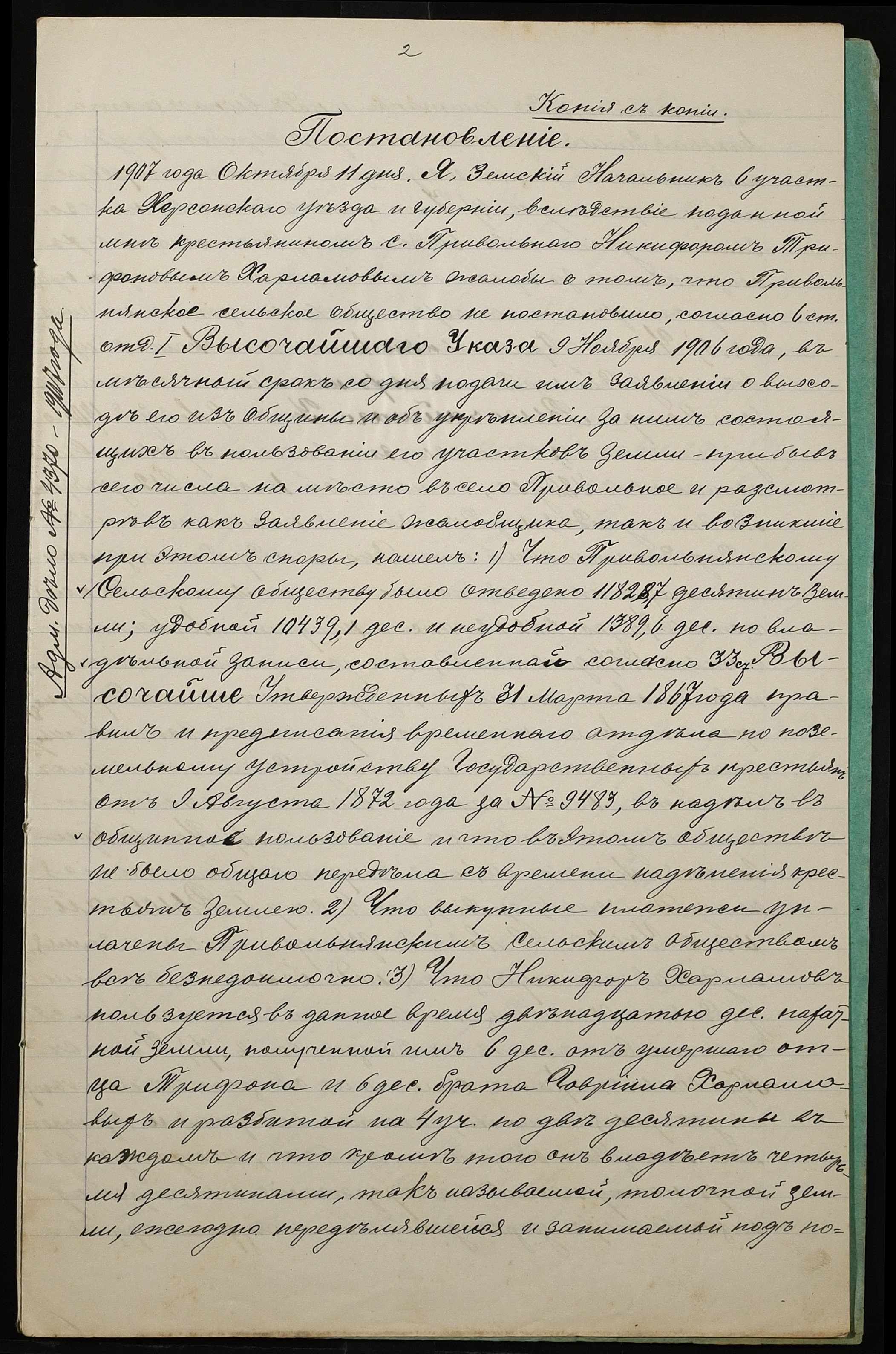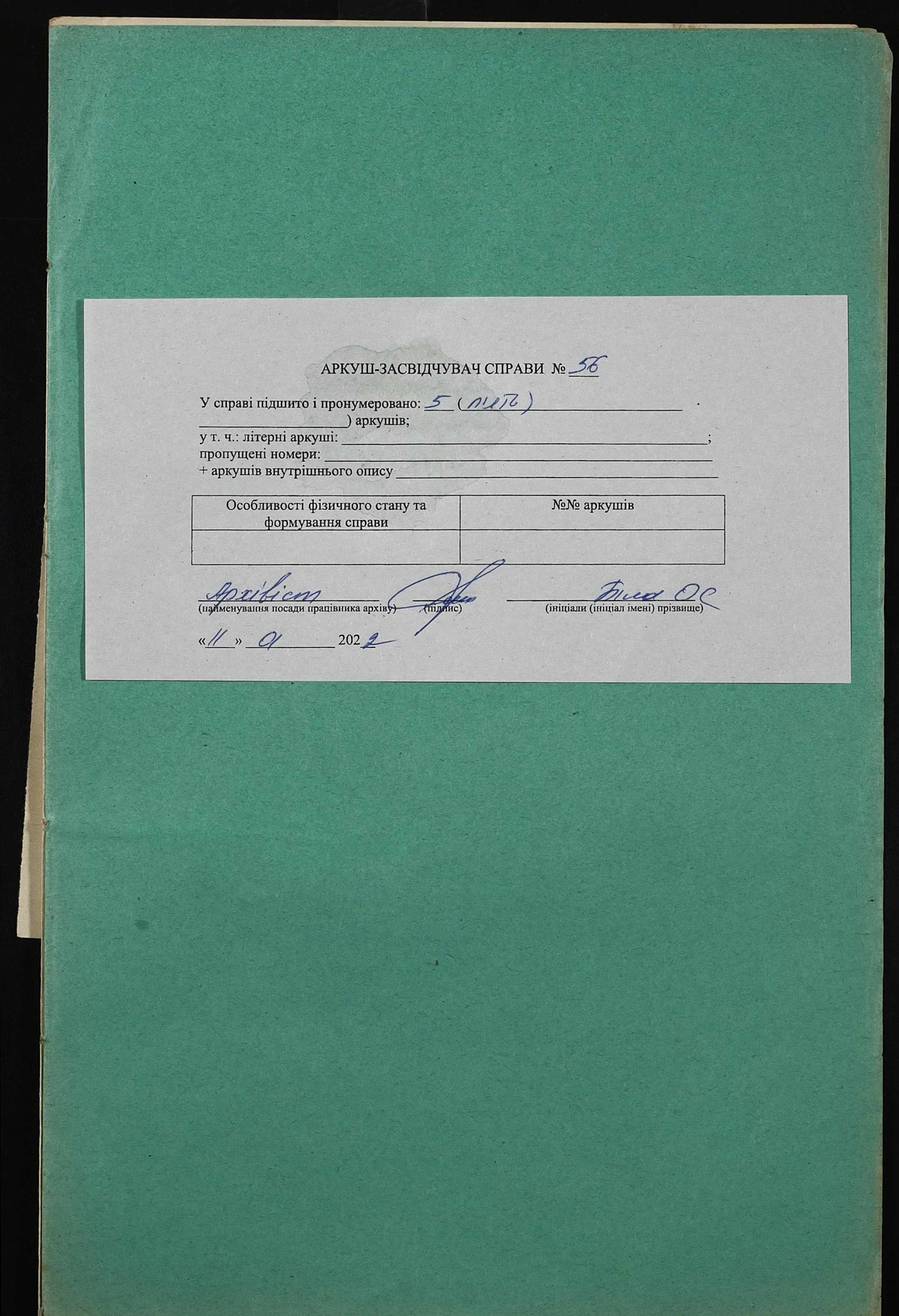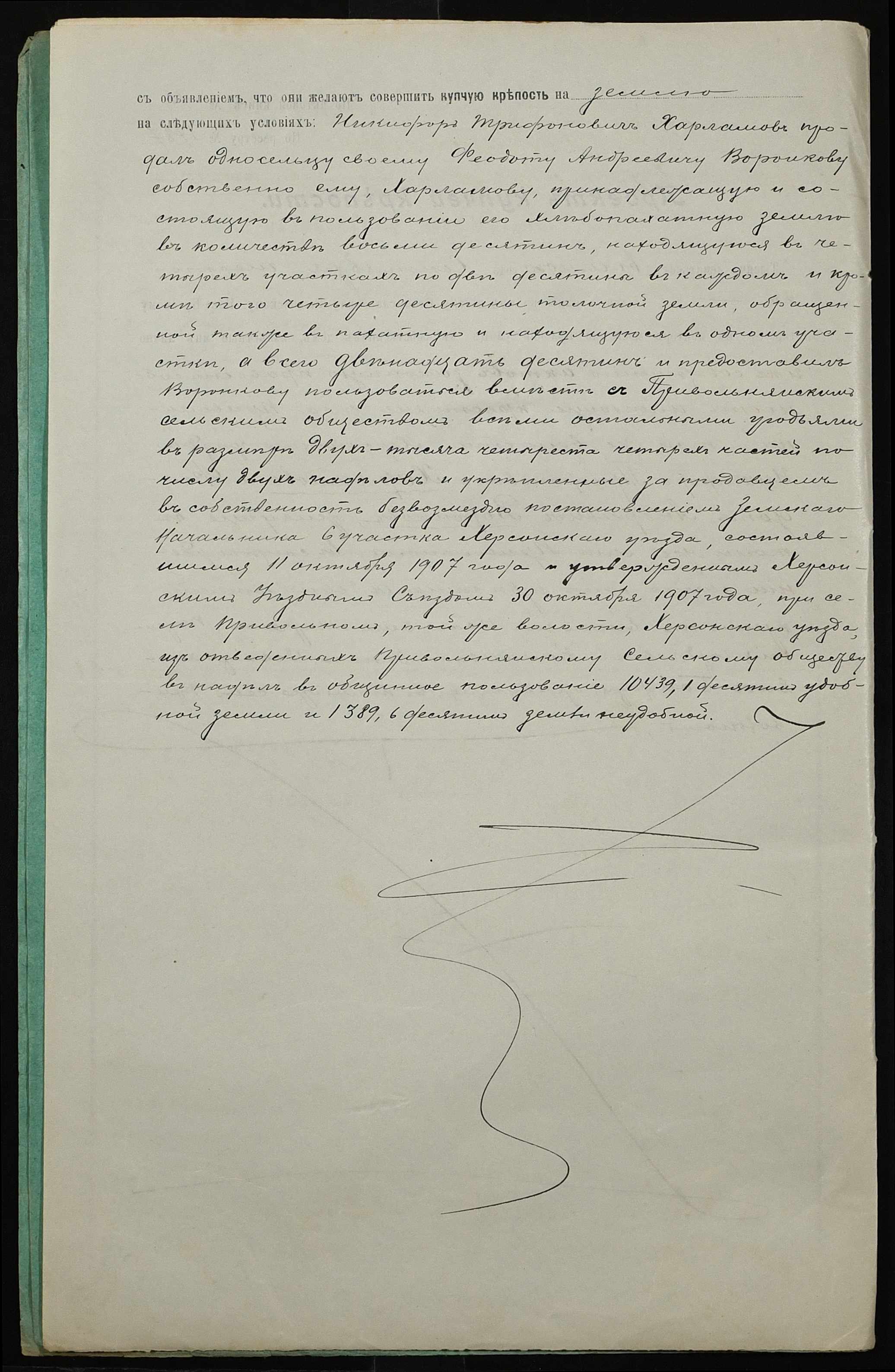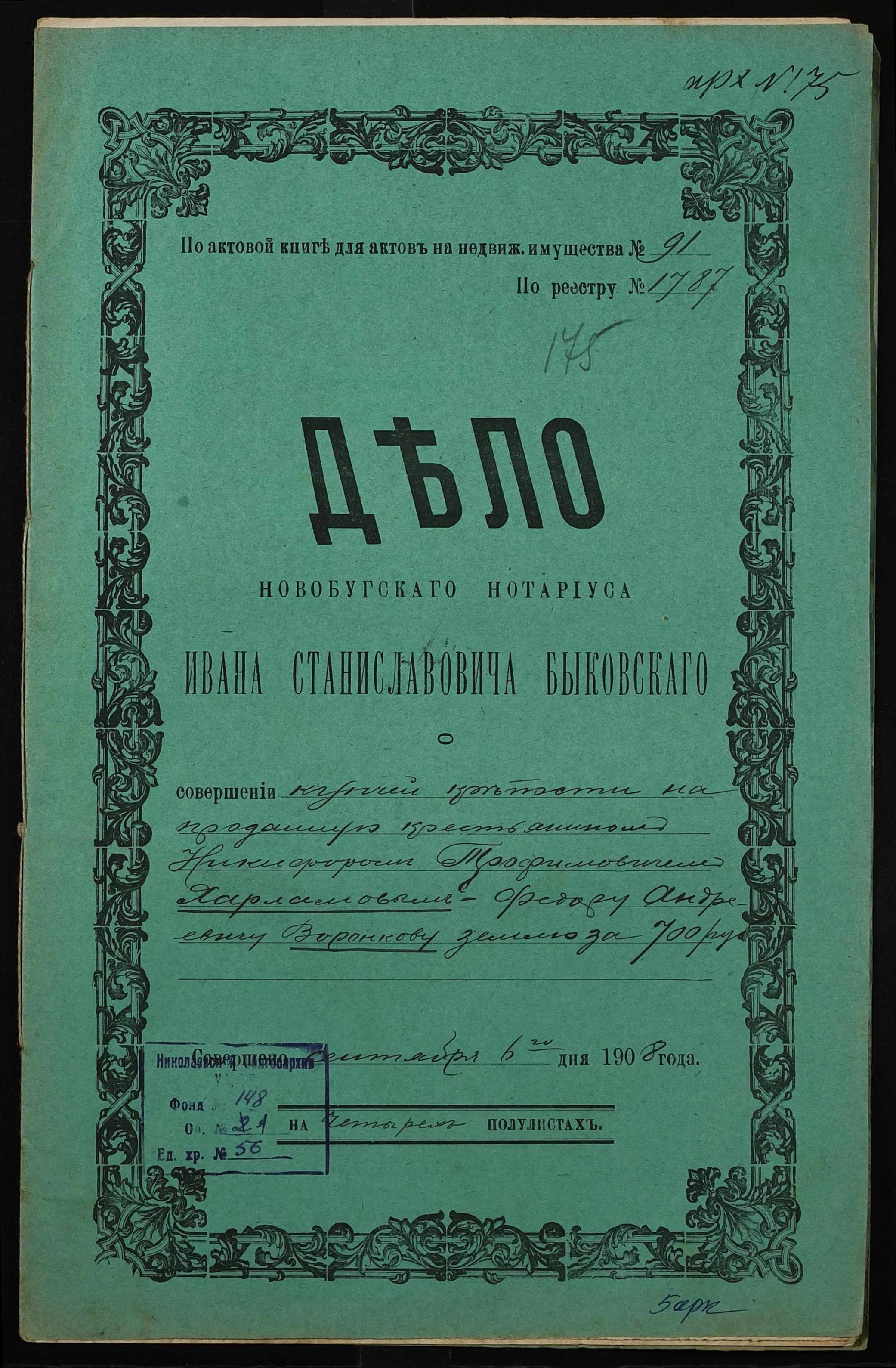 • • • • Справа № 56 “Справа про вчинення купчої про продаж землі селянином Харламовим Никифором Трохимовичем (Трофимовичем) на користь селянина Воронкова Федора Андрійовича (Андреевичем)”