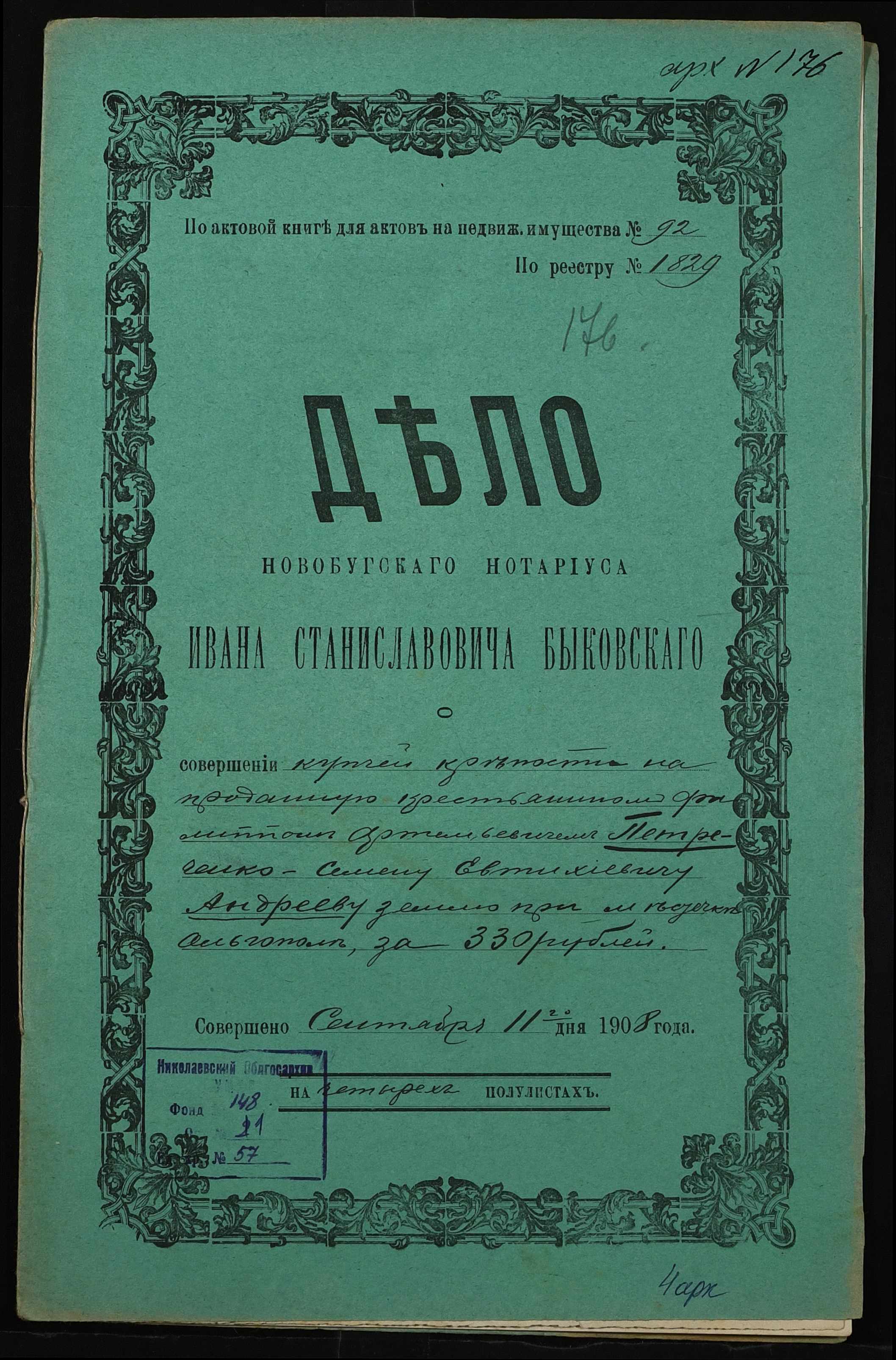 ◦ ◦ Фонд № 148 “Контора новобузького нотаріуса Биковського Івана Станіславовича”