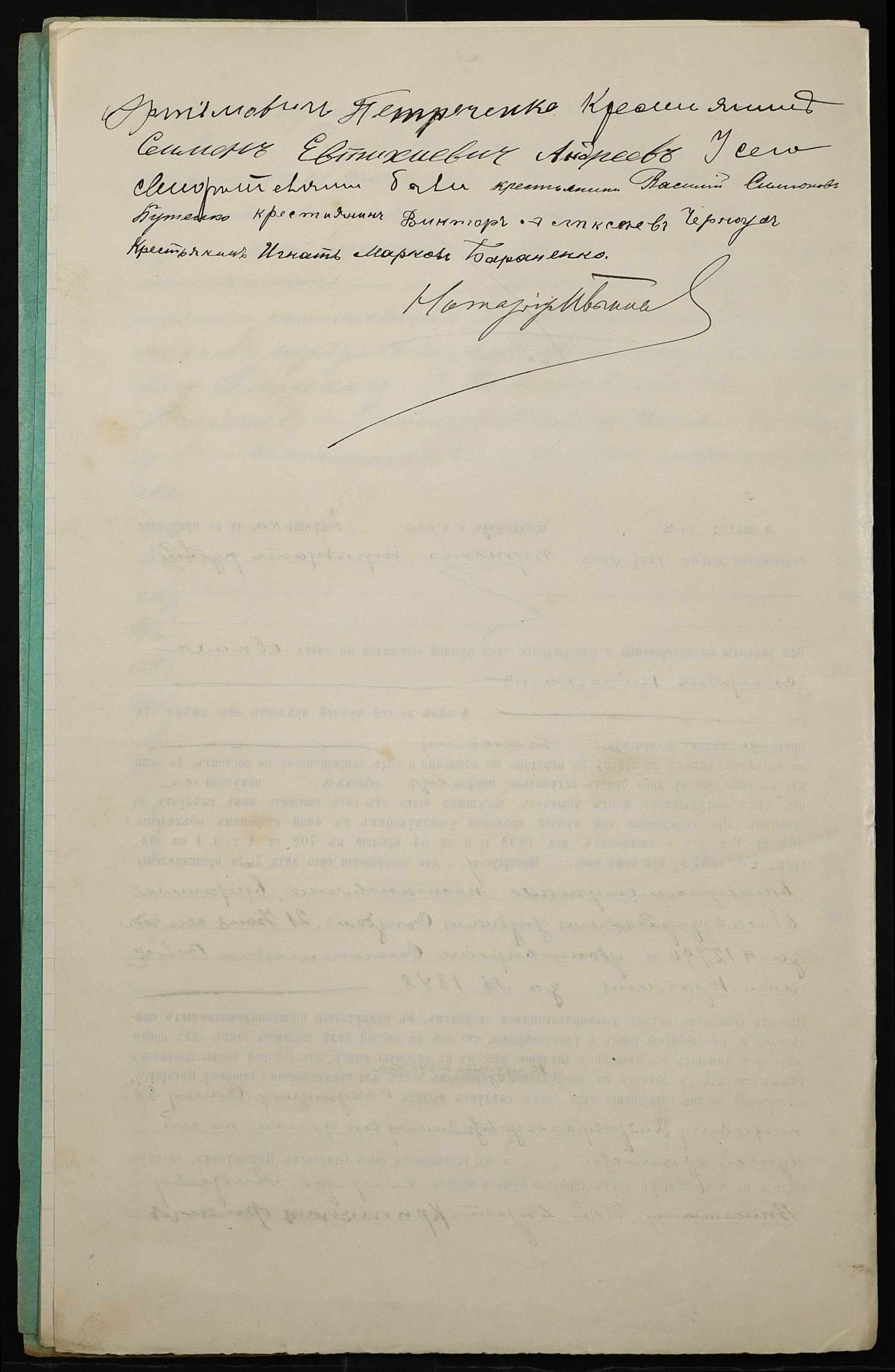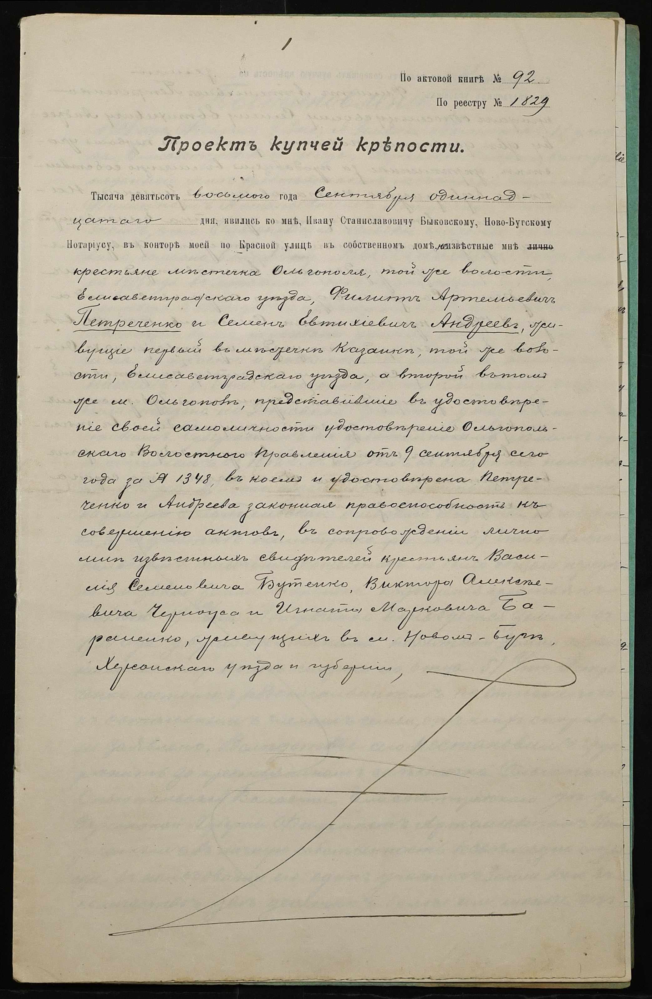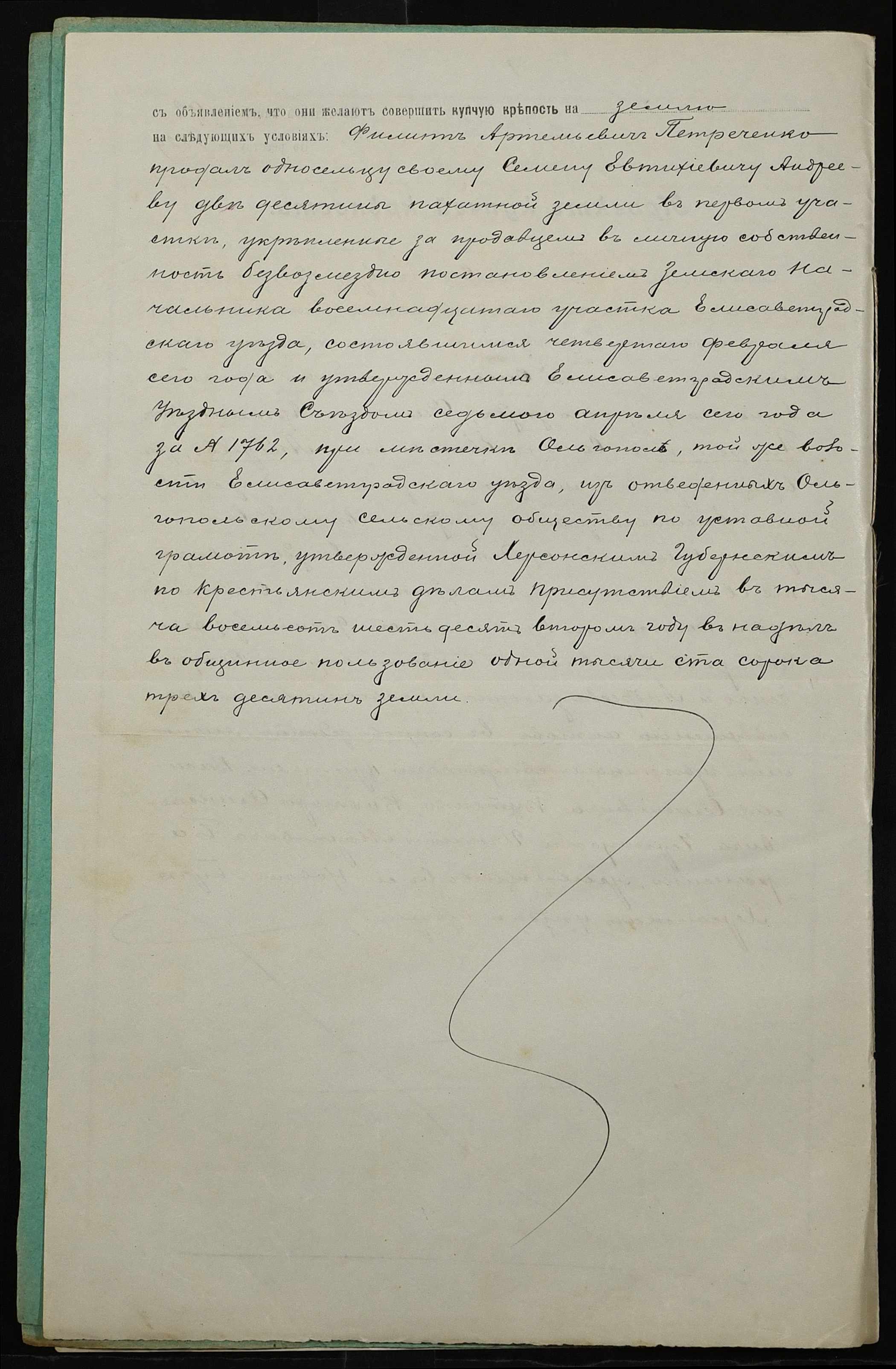 • • • • Справа № 57 “Справа про вчинення купчої про продаж землі селянином Петреченком Пилипом Артемійовичем (Петреченко Филиппом Артемьевичем) на користь селянина Андреєва (Андреева) Семена Євтихійовича (Евтихиевича)”