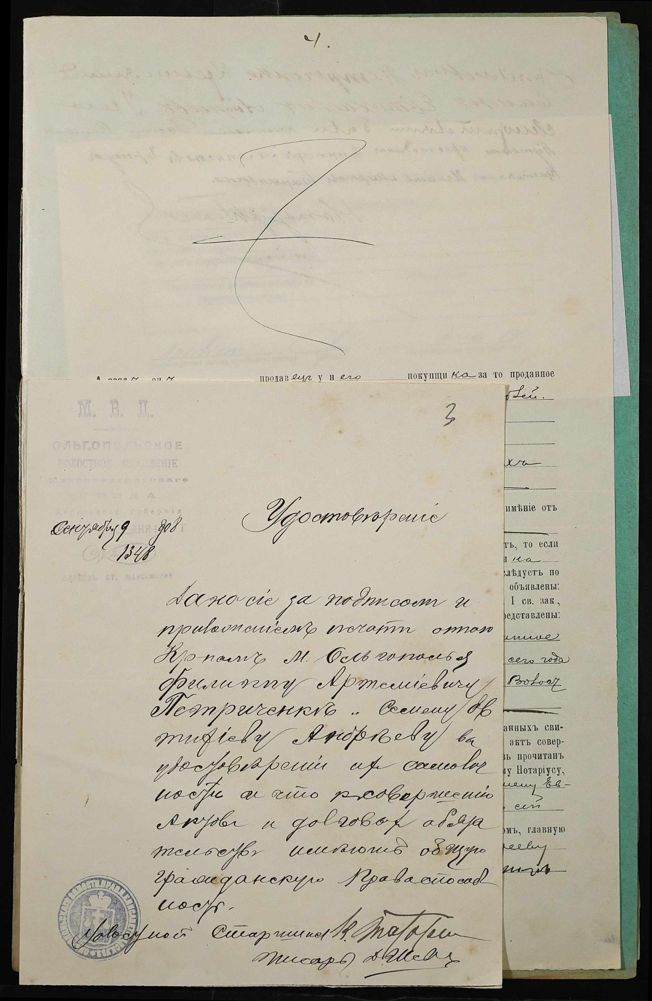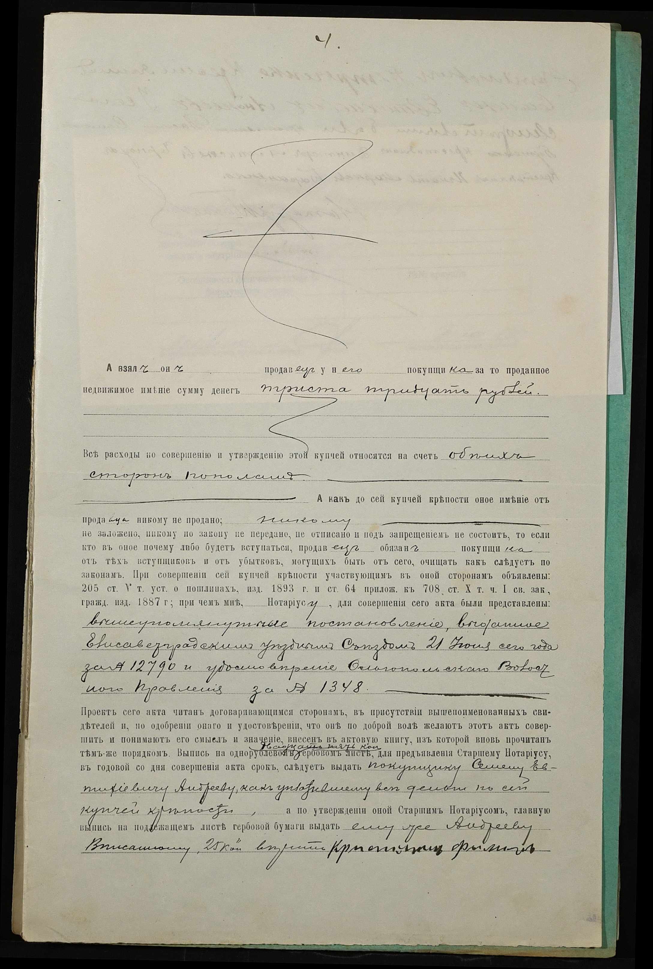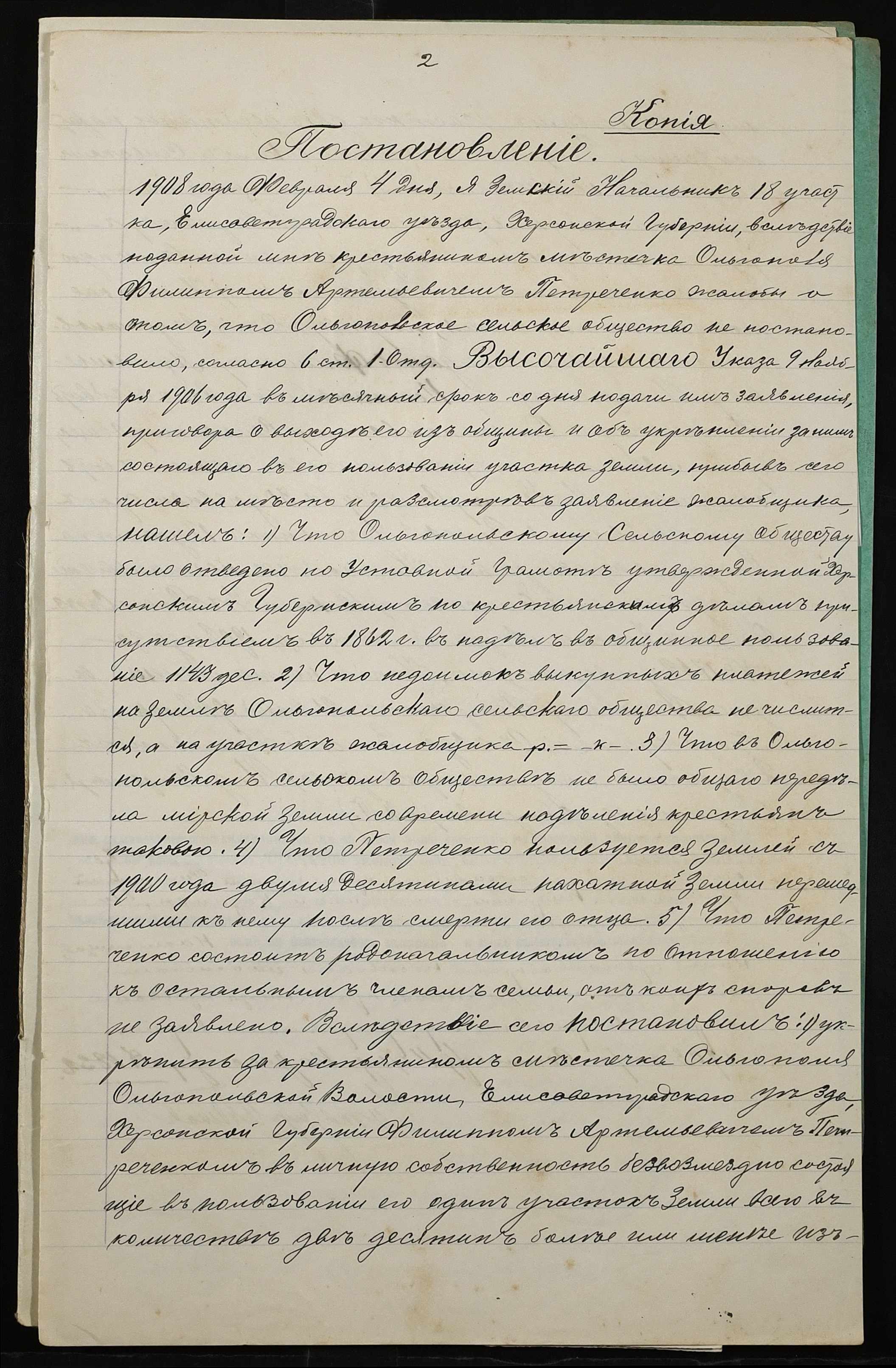 • • • • Справа № 57 “Справа про вчинення купчої про продаж землі селянином Петреченком Пилипом Артемійовичем (Петреченко Филиппом Артемьевичем) на користь селянина Андреєва (Андреева) Семена Євтихійовича (Евтихиевича)”