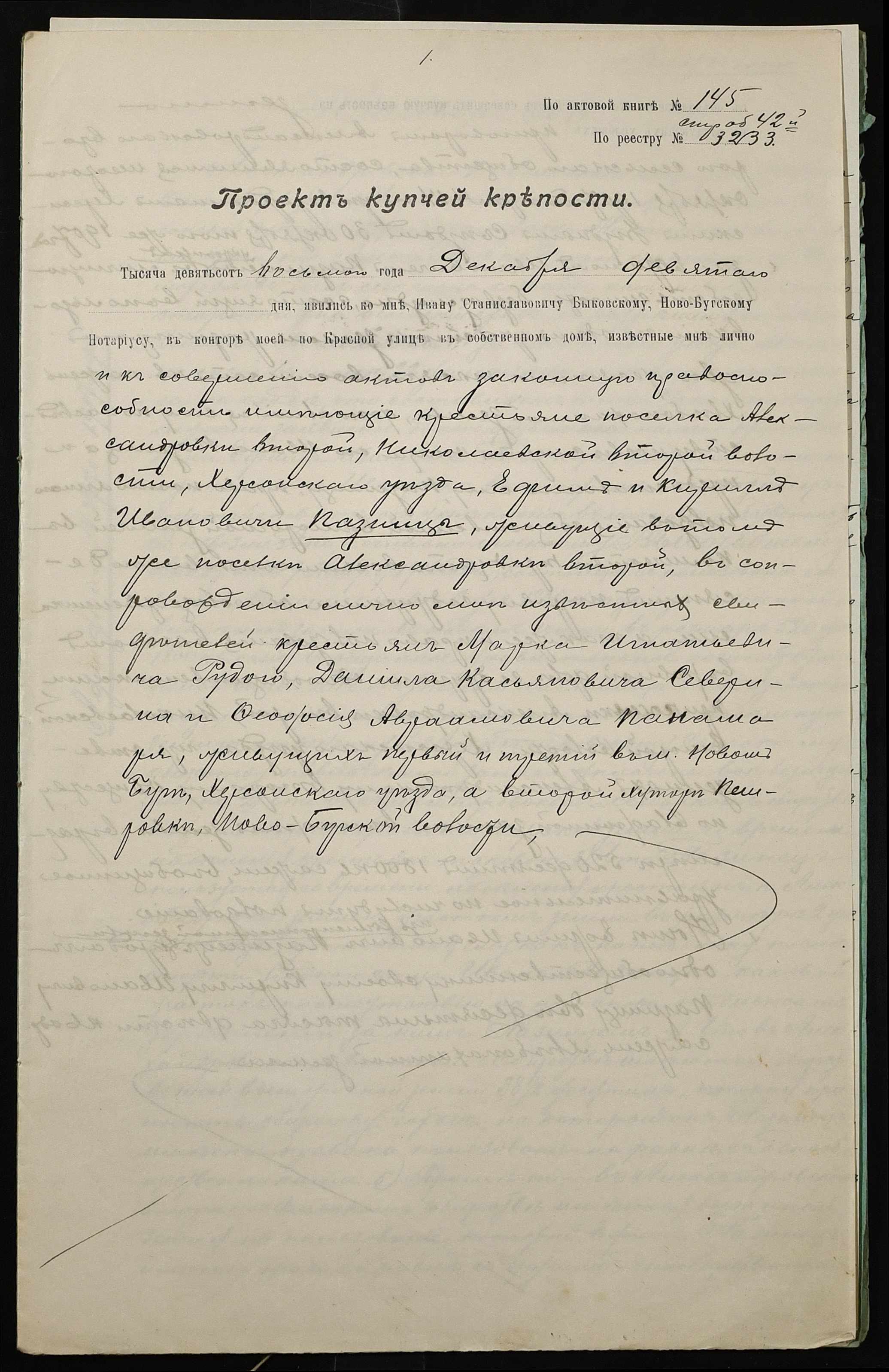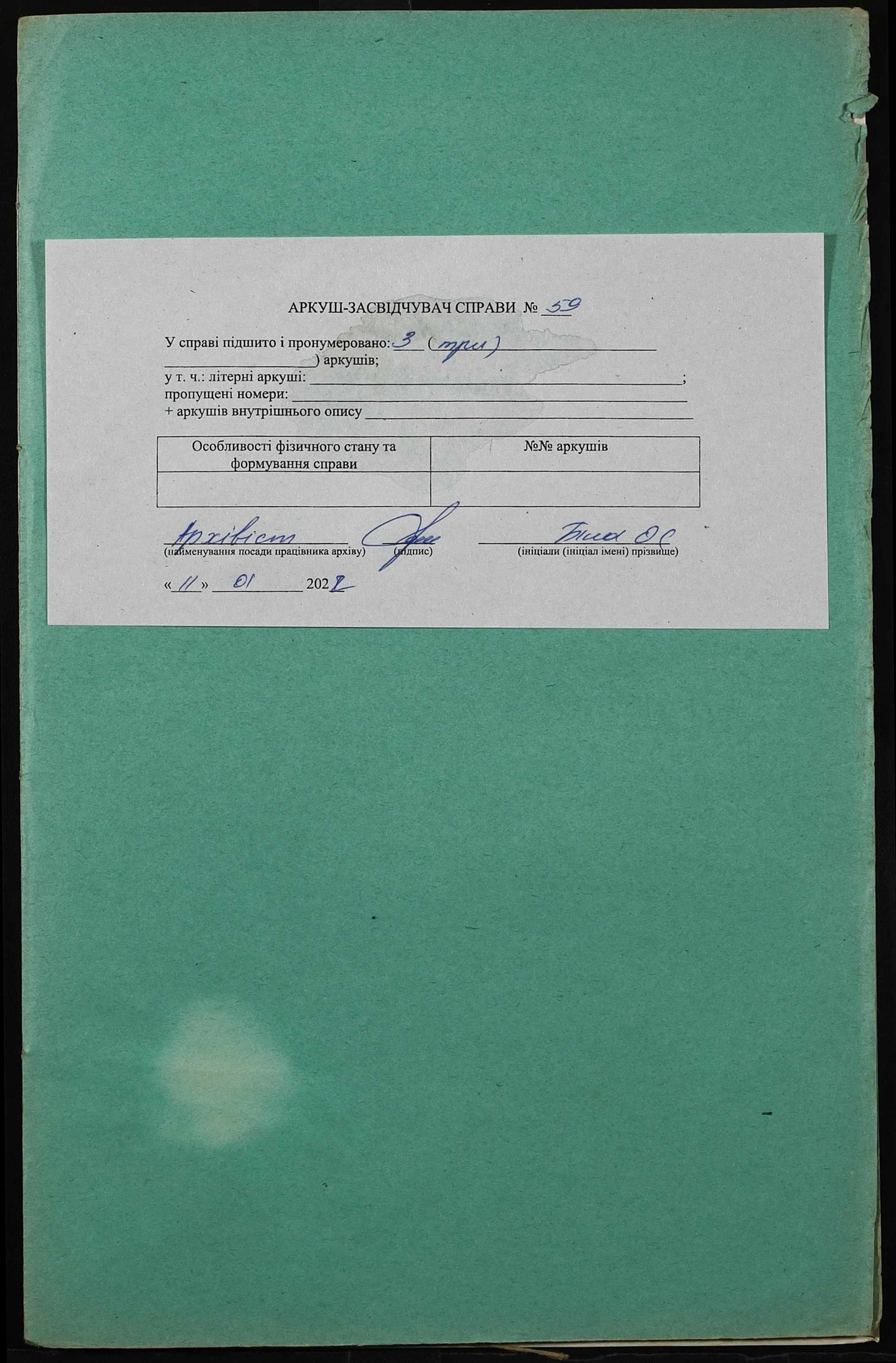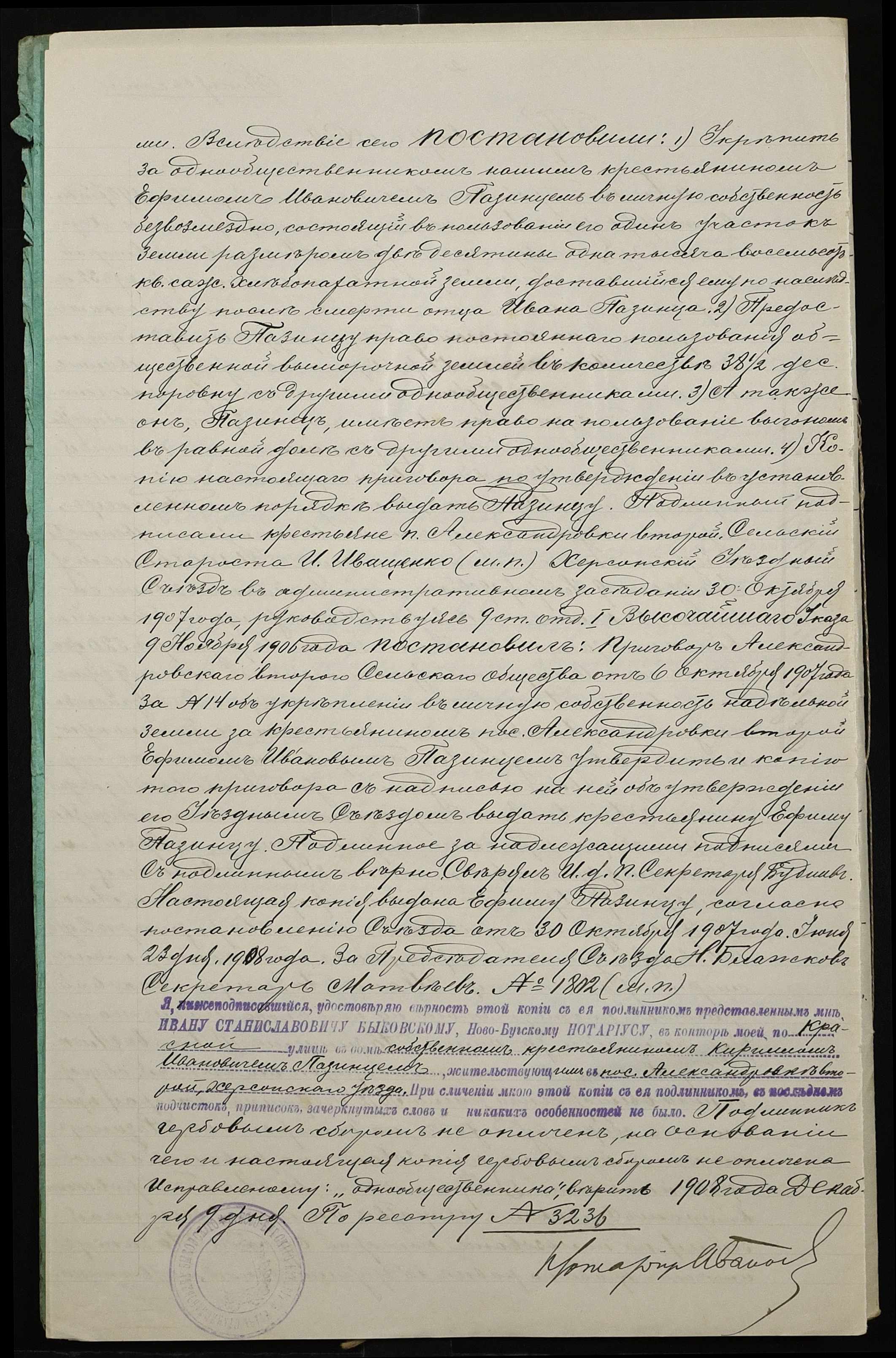 • • • • Справа № 59 “Справа про вчинення купчої про продаж землі селянином Пазинцем Юхимом Івановичем (Пазинцом Ефимом Ивановичем) на користь селянина Пазинця Кирила Івановича (Пазинца Кирилла Ивановича)”