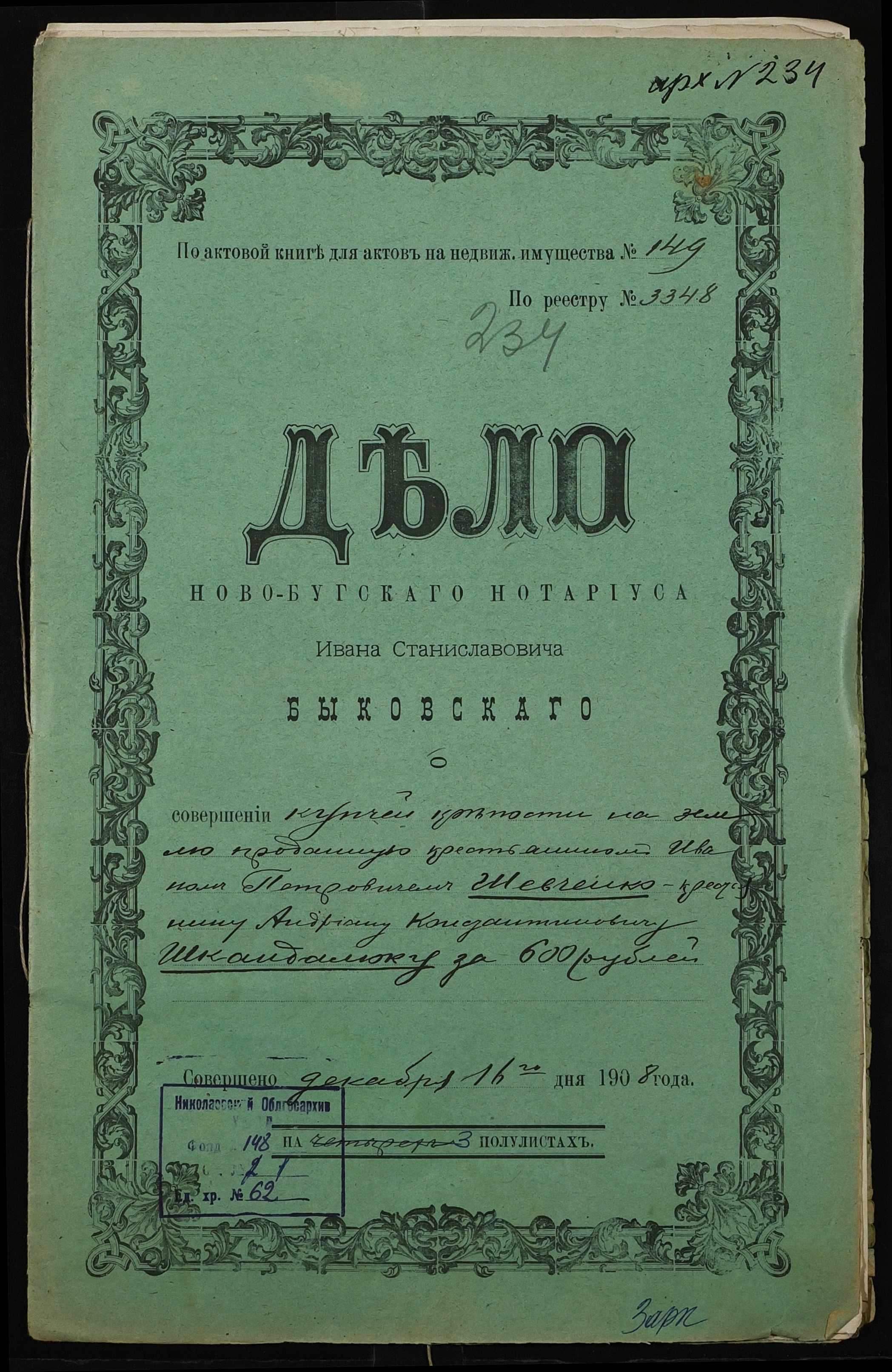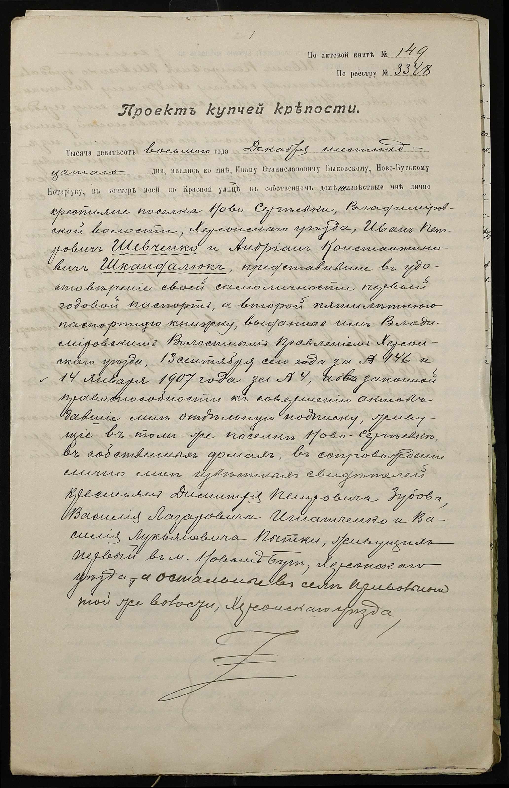 ◦ ◦ Фонд № 148 “Контора новобузького нотаріуса Биковського Івана Станіславовича”