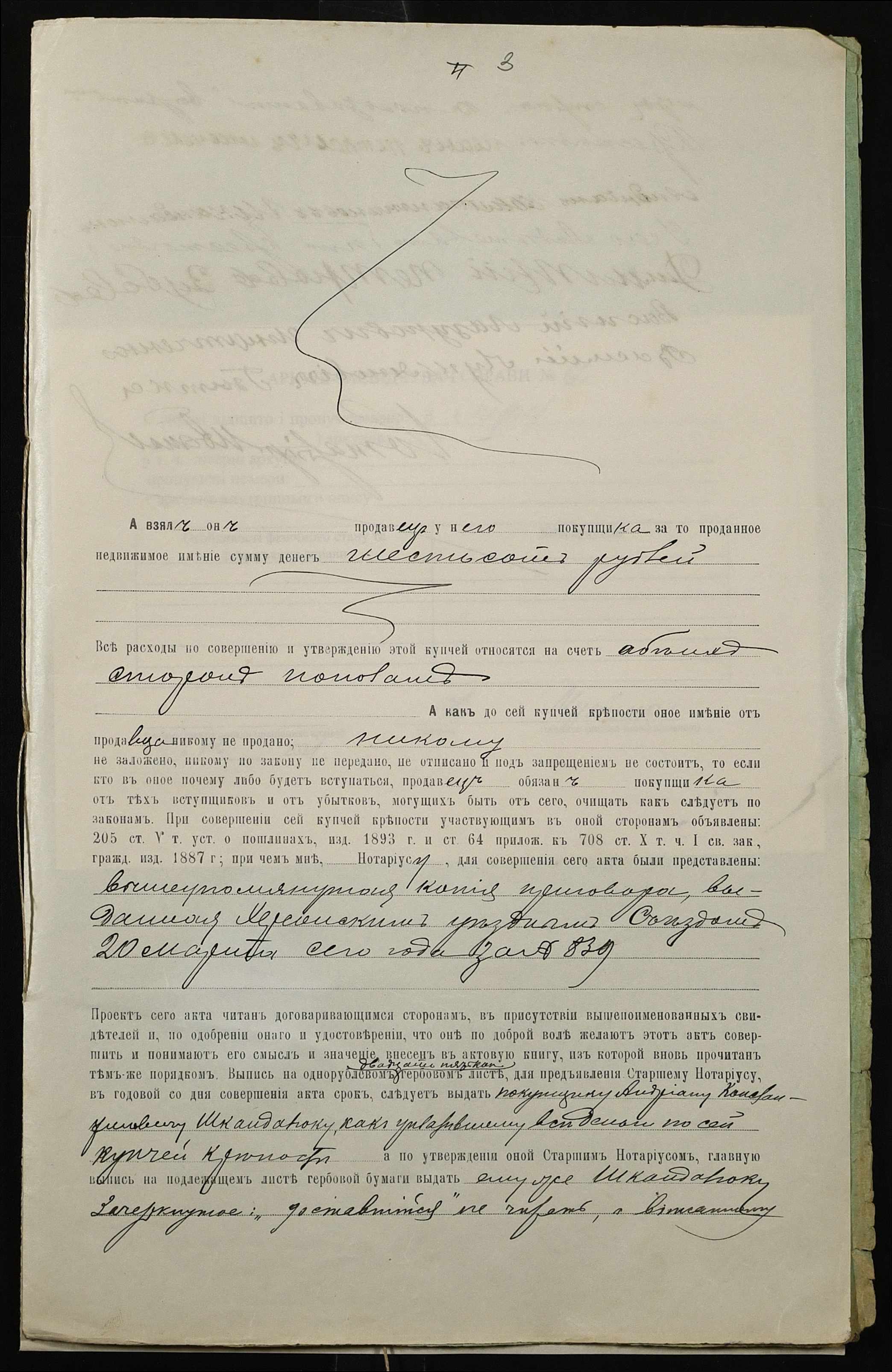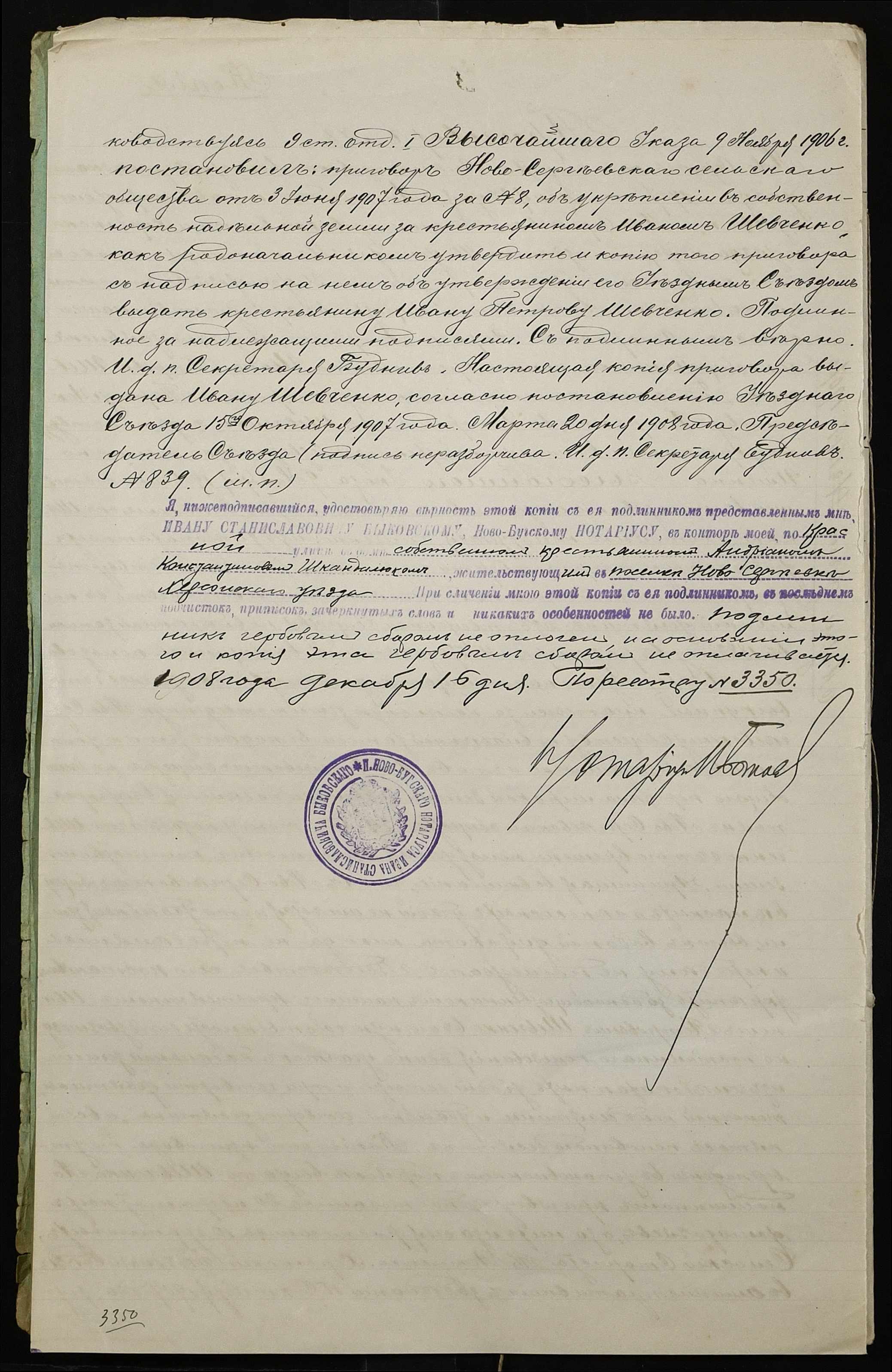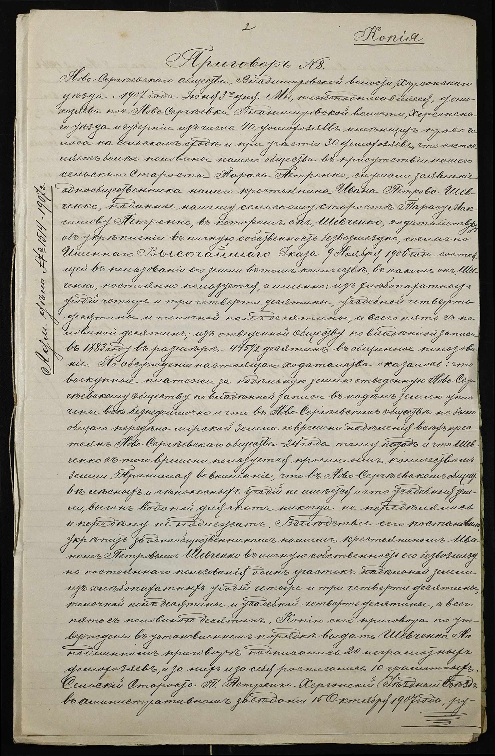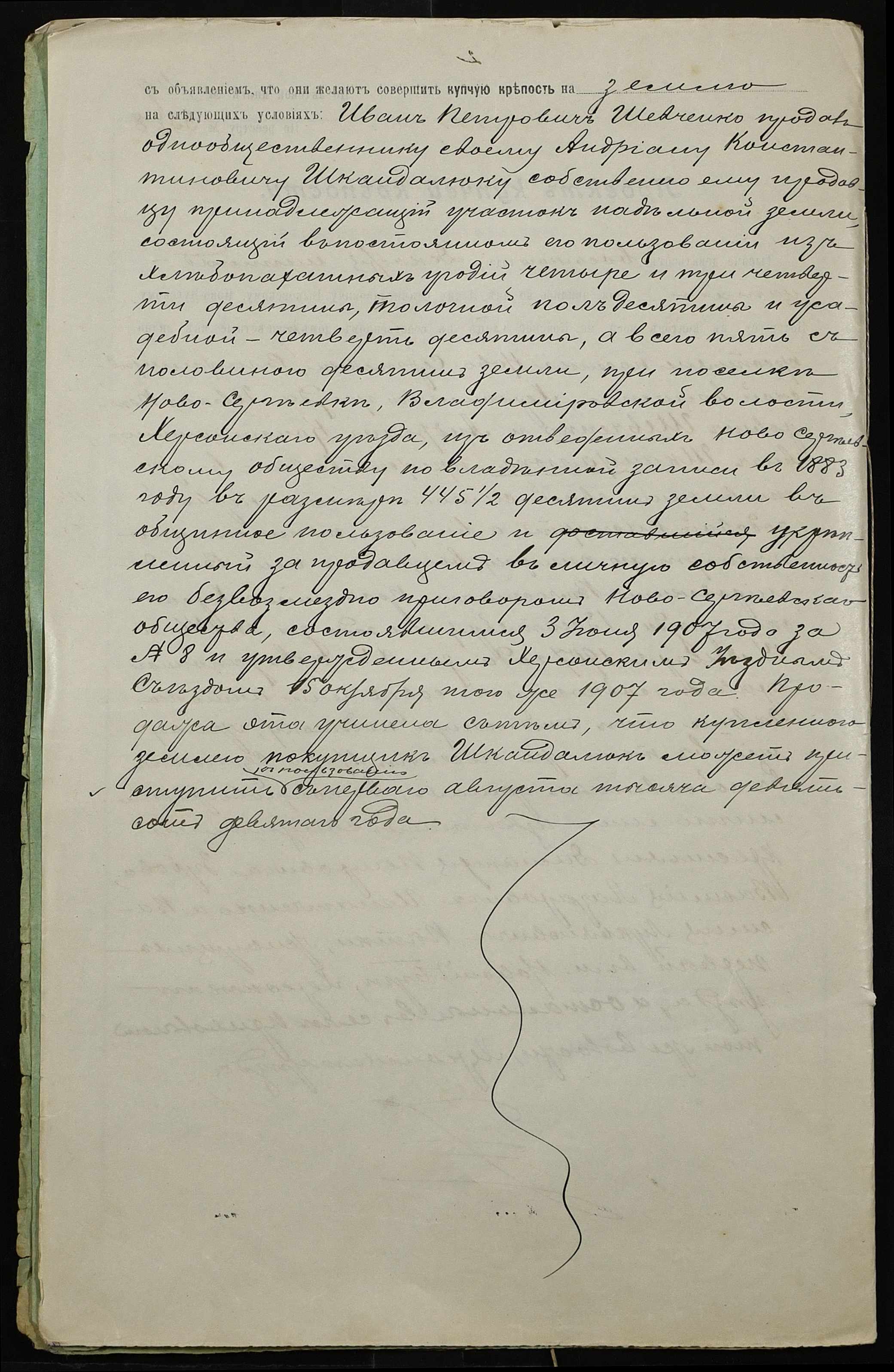 • • • • Справа № 62 “Справа про вчинення купчої про продаж землі селянином Шевченком Іваном (Шевченко Иваном) Петровичем на користь селянина Шкандалюка Андріяна Костянтиновича (Андриана Констаниновича)”