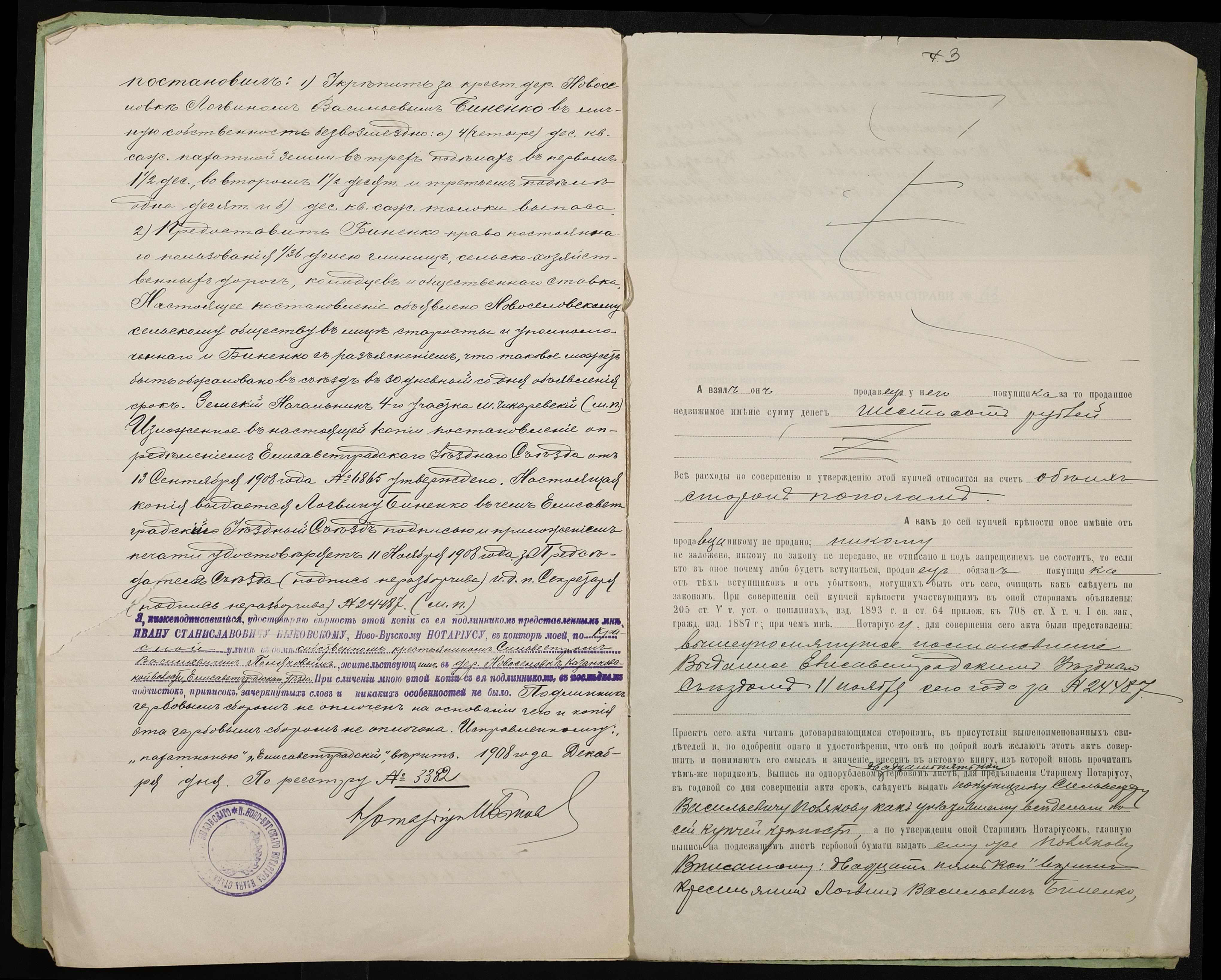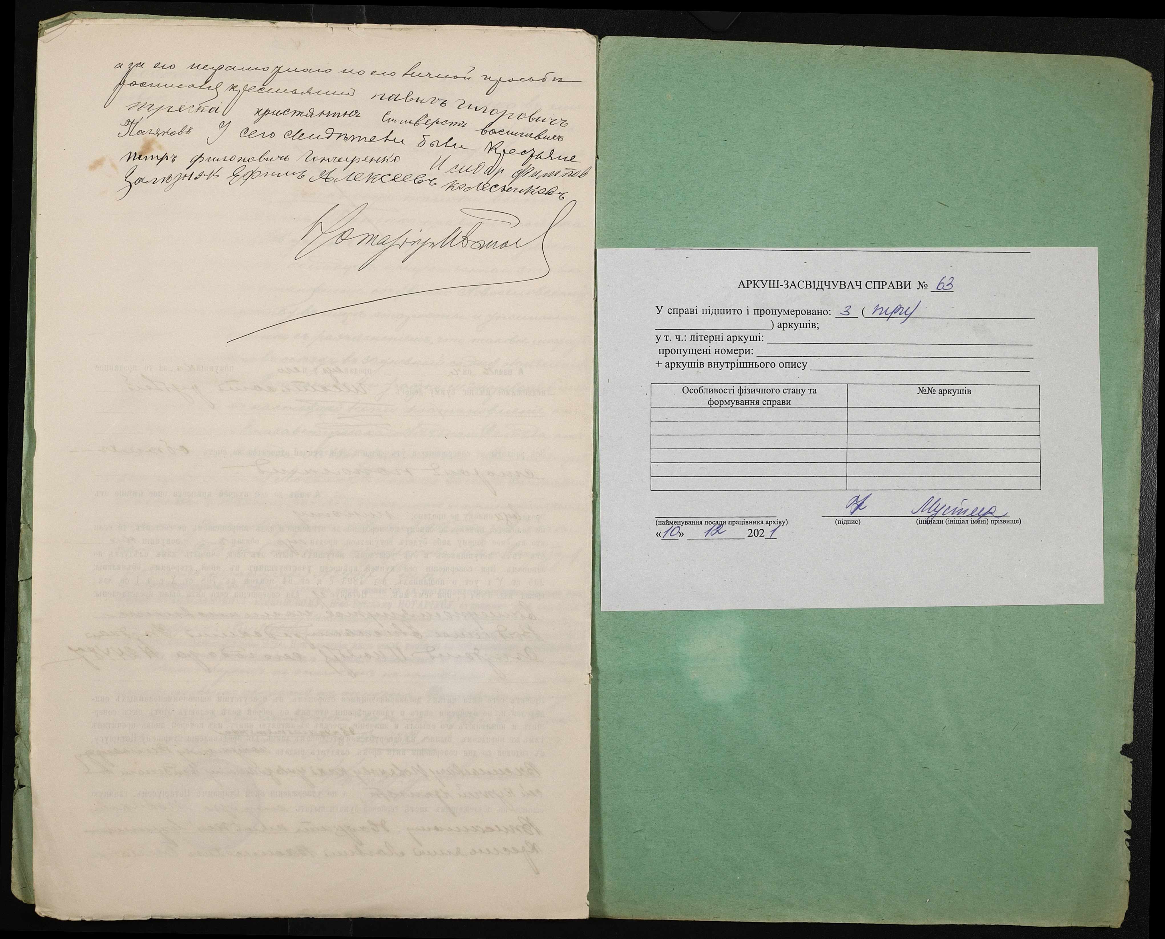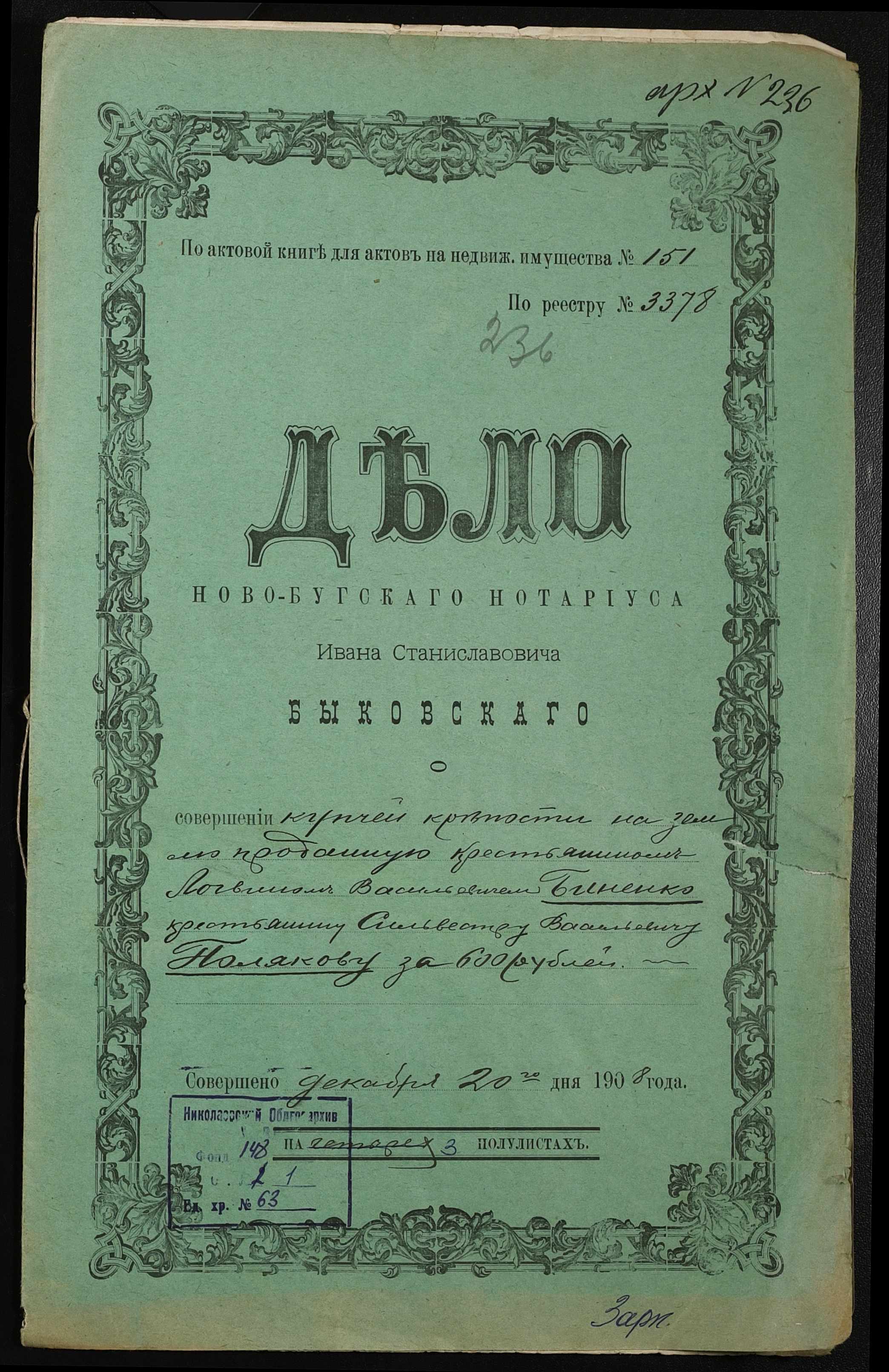 • • • • Справа № 63 “Справа про вчинення купчої про продаж землі селянином Біненком (Биненко) Логвином Васильовичем (Васильевичем) на користь селянина Полякова Сильвестра Васильовича (Васильевича)”