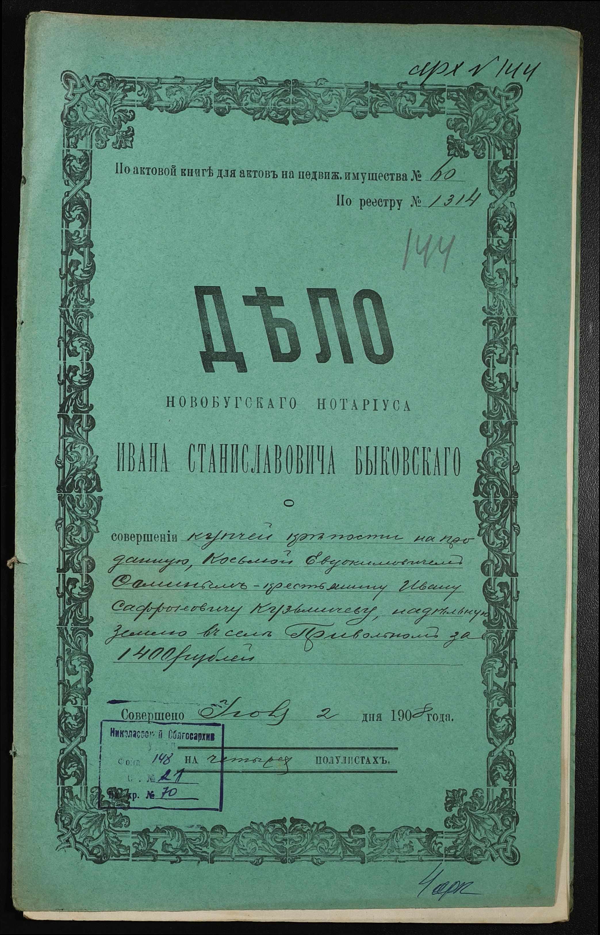 ◦ ◦ Фонд № 148 “Контора новобузького нотаріуса Биковського Івана Станіславовича”
