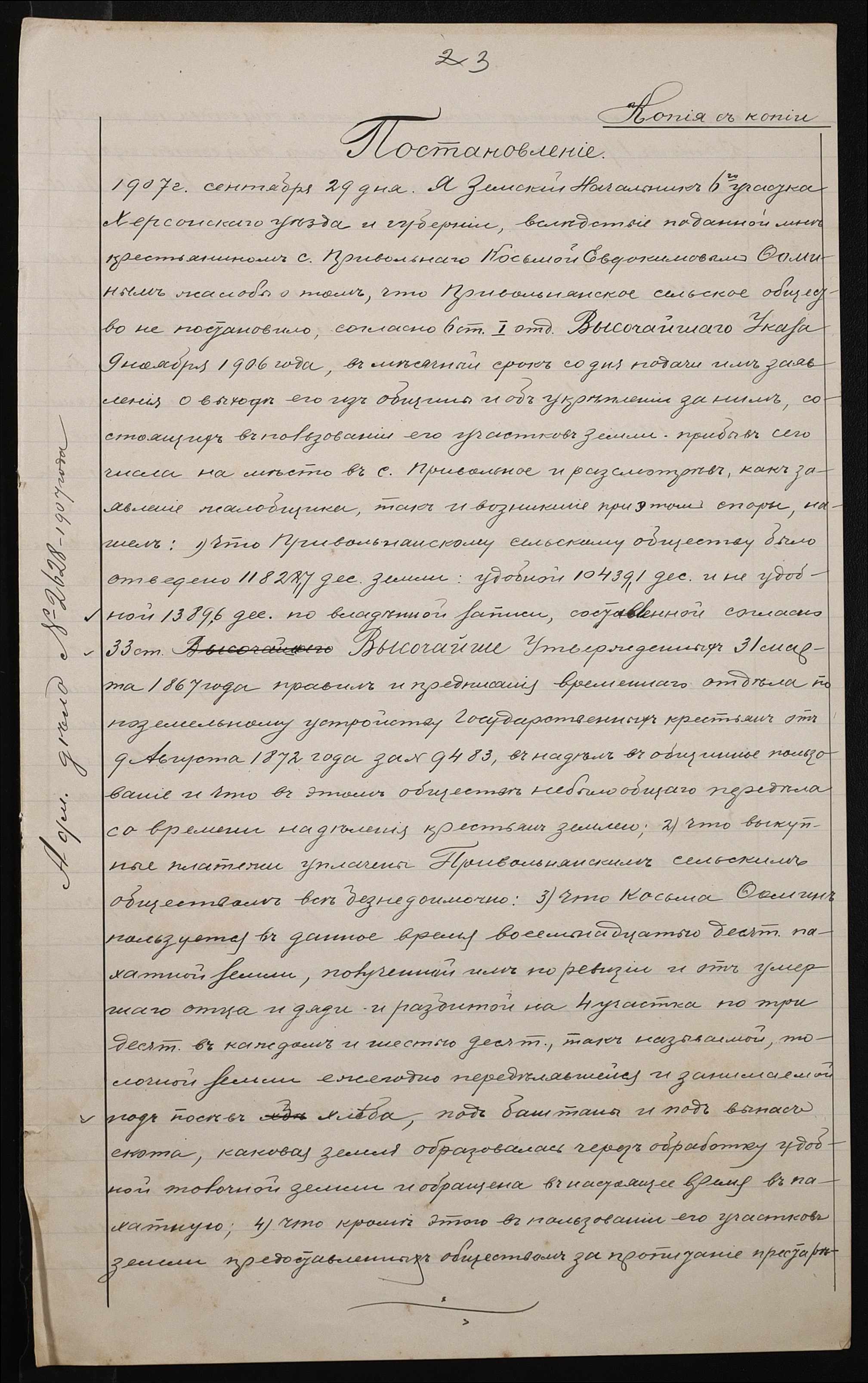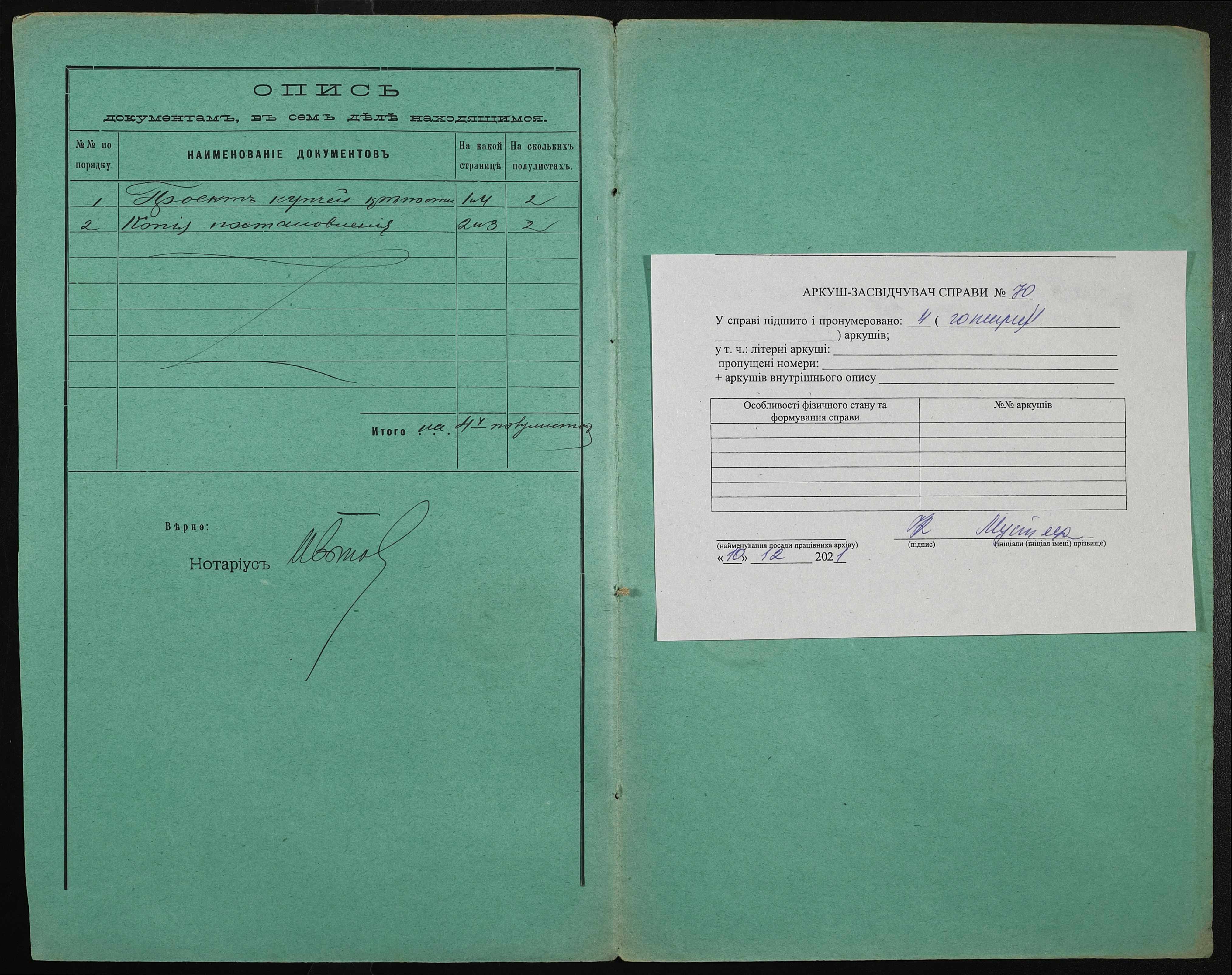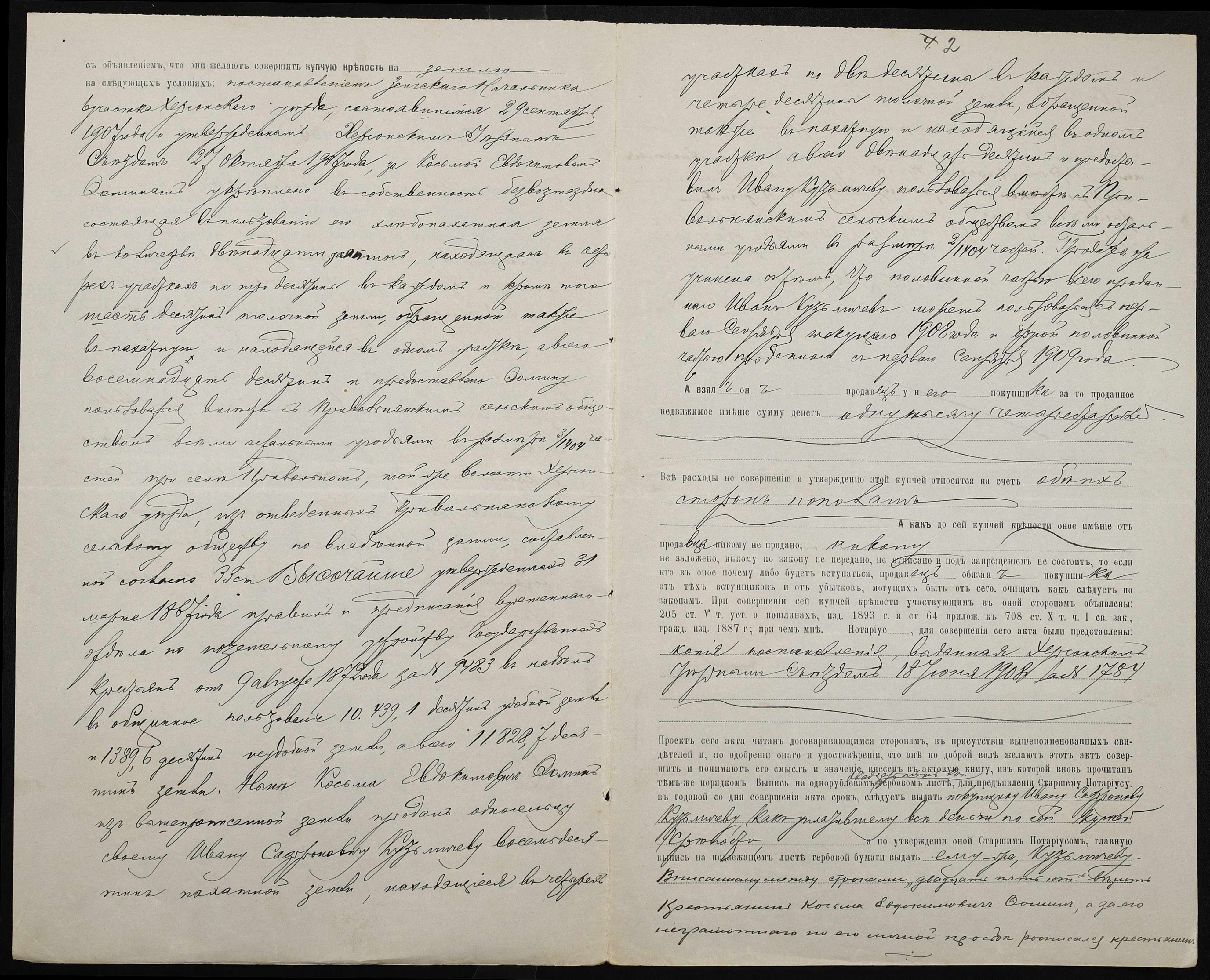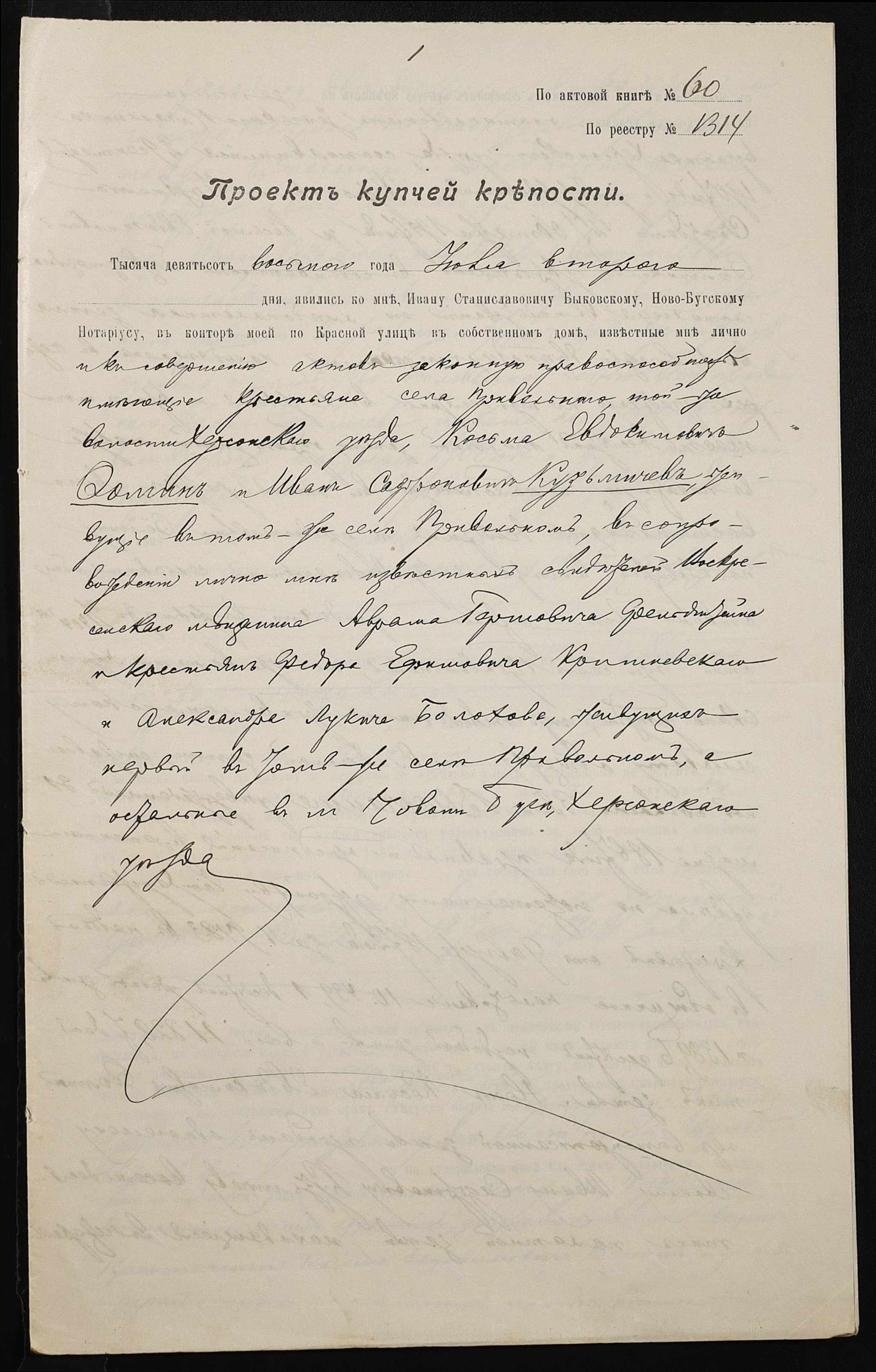 • • • • Справа № 70 “Справа про вчинення купчої про продаж землі селянином Фоміним (Фоминым) Кузьмою Євдокимовичем (Евдокимовичем) на користь селянина Кузьмічова Івана (Кузьмичева Ивана) Сафроновича”