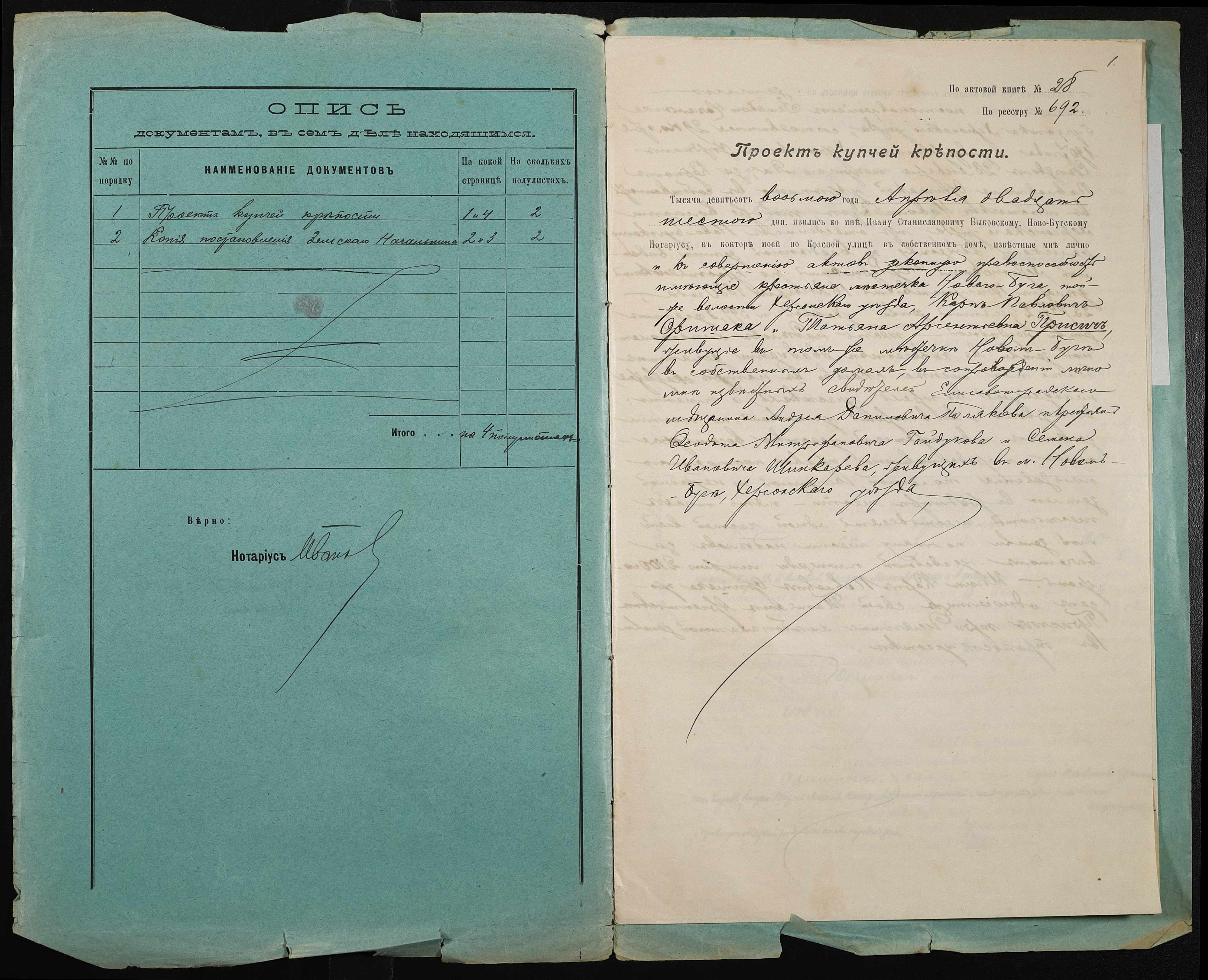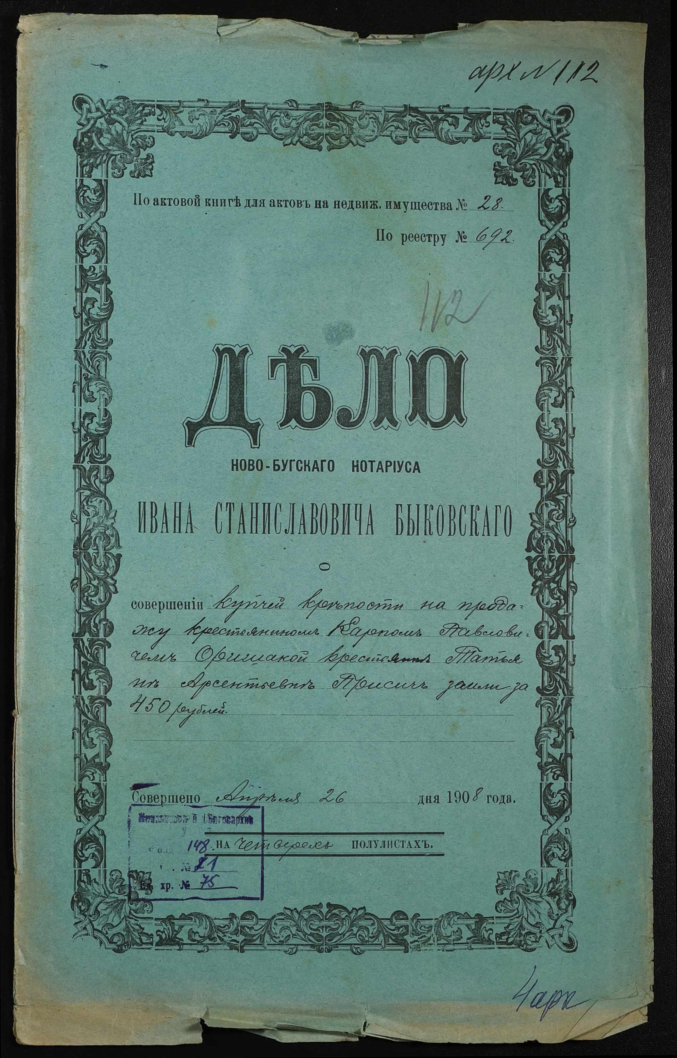 ◦ ◦ Фонд № 148 “Контора новобузького нотаріуса Биковського Івана Станіславовича”