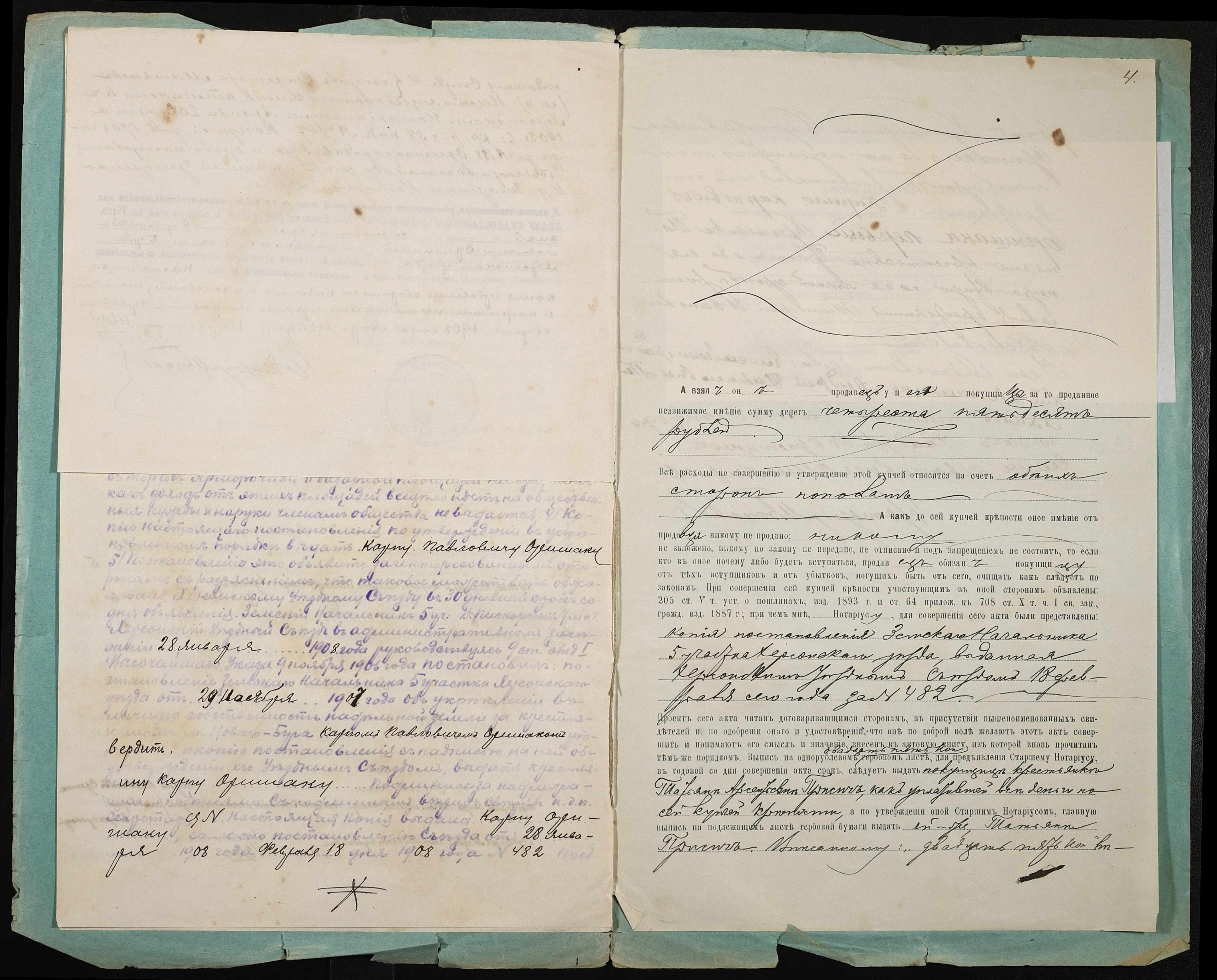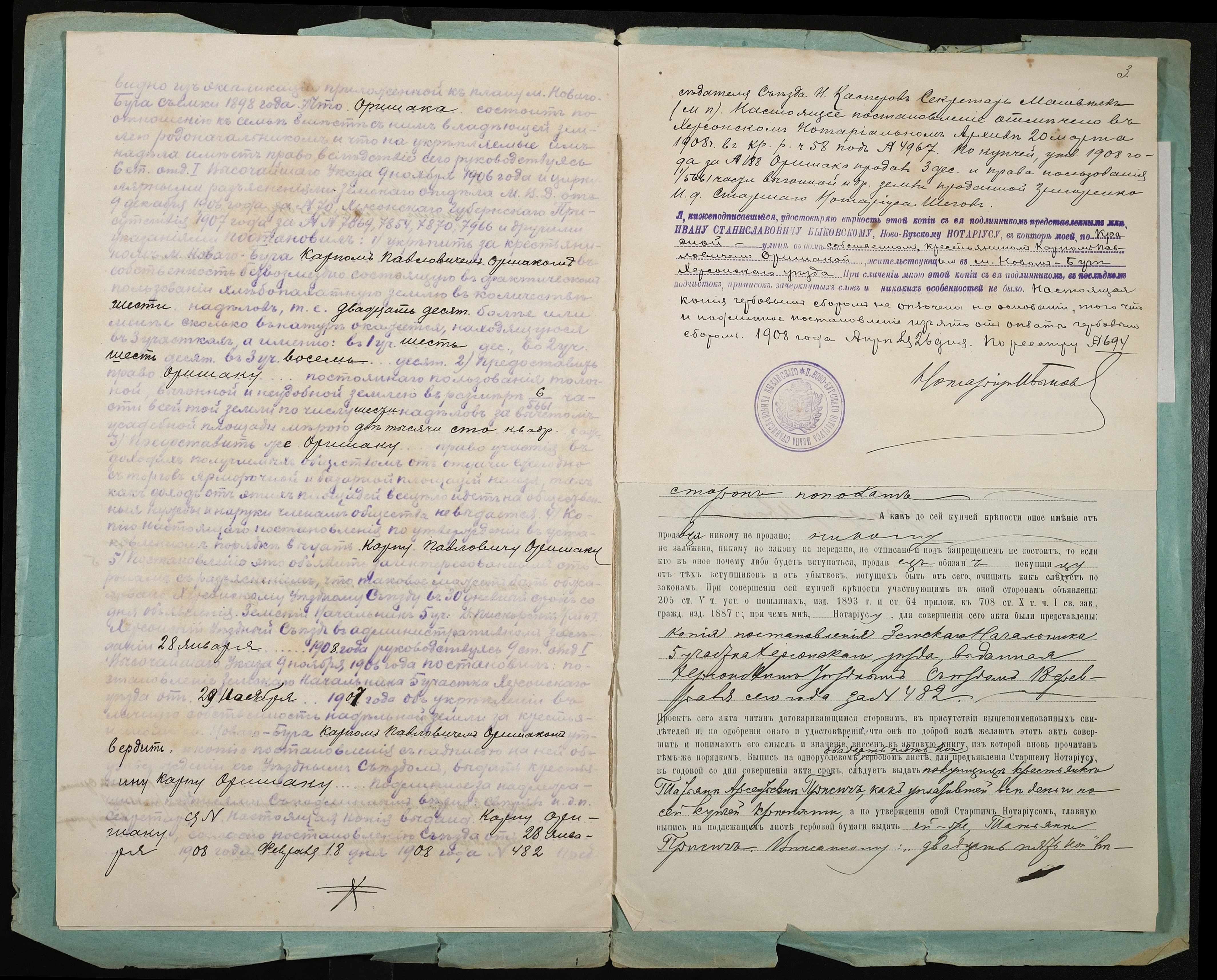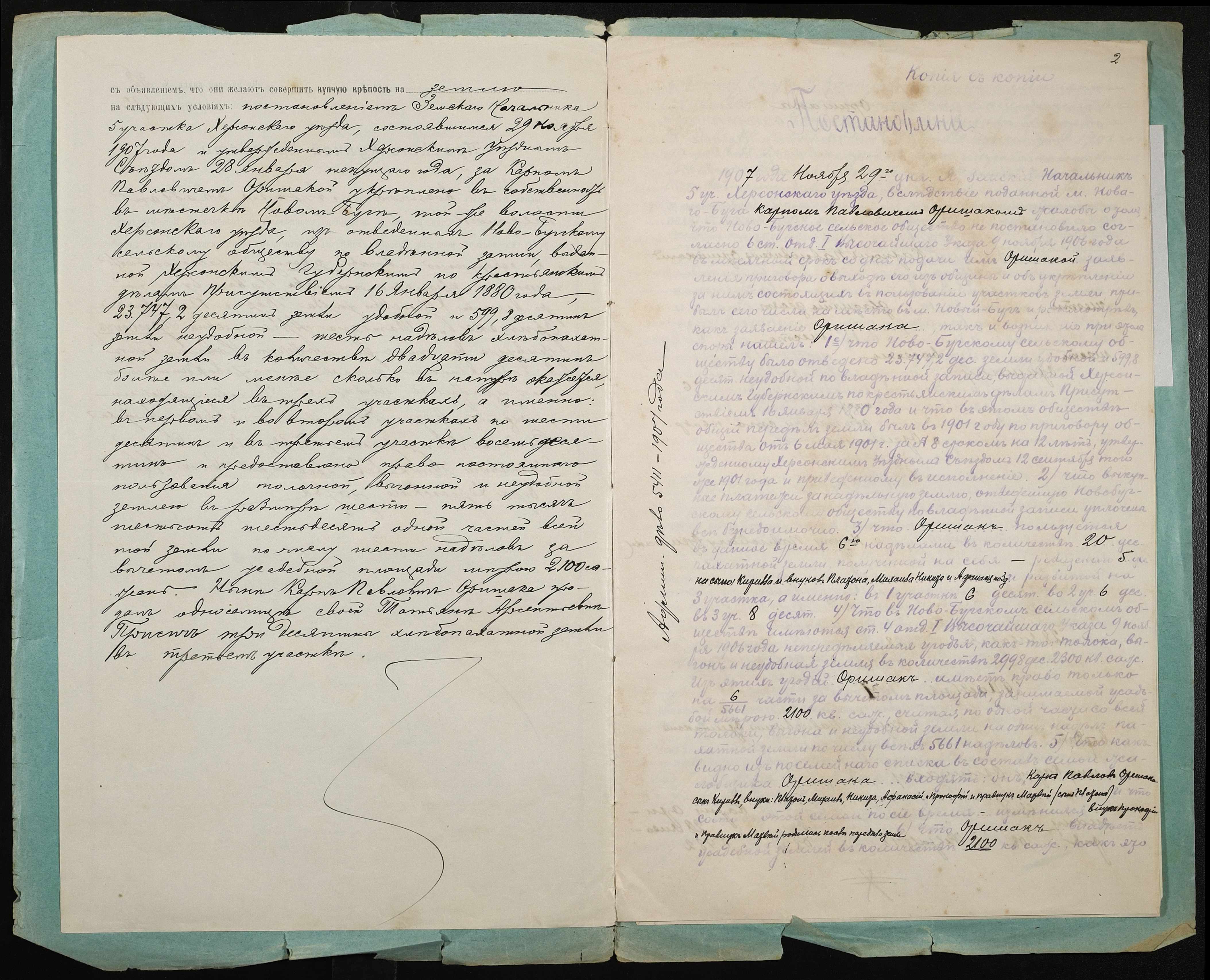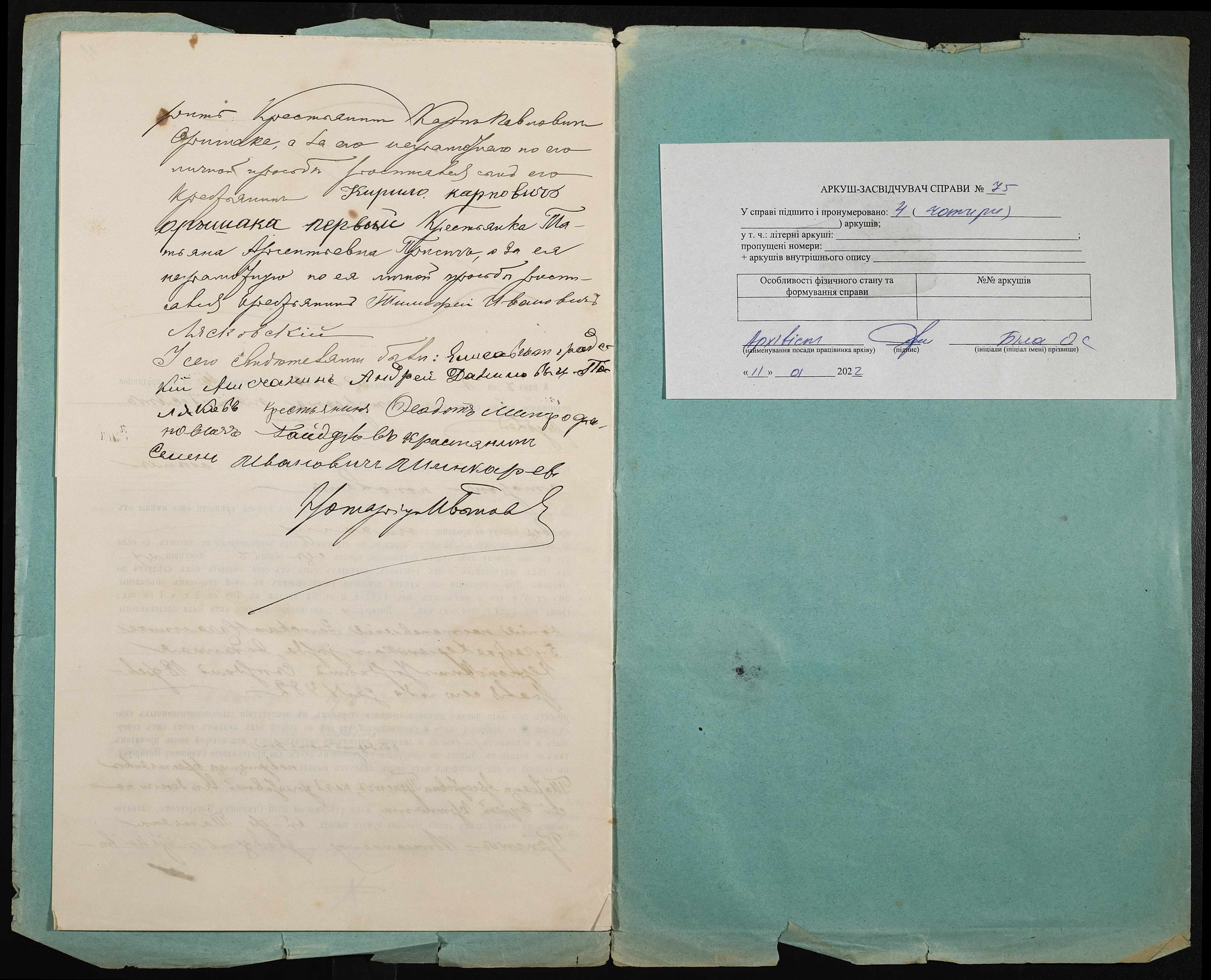 • • • • Справа № 75 “Справа про вчинення купчої про продаж землі селянином Оришакою Карпом Павловичем на користь селянки Присіч Тетяни Арсентіївни (Присич Татьяны Арсентиевны)”