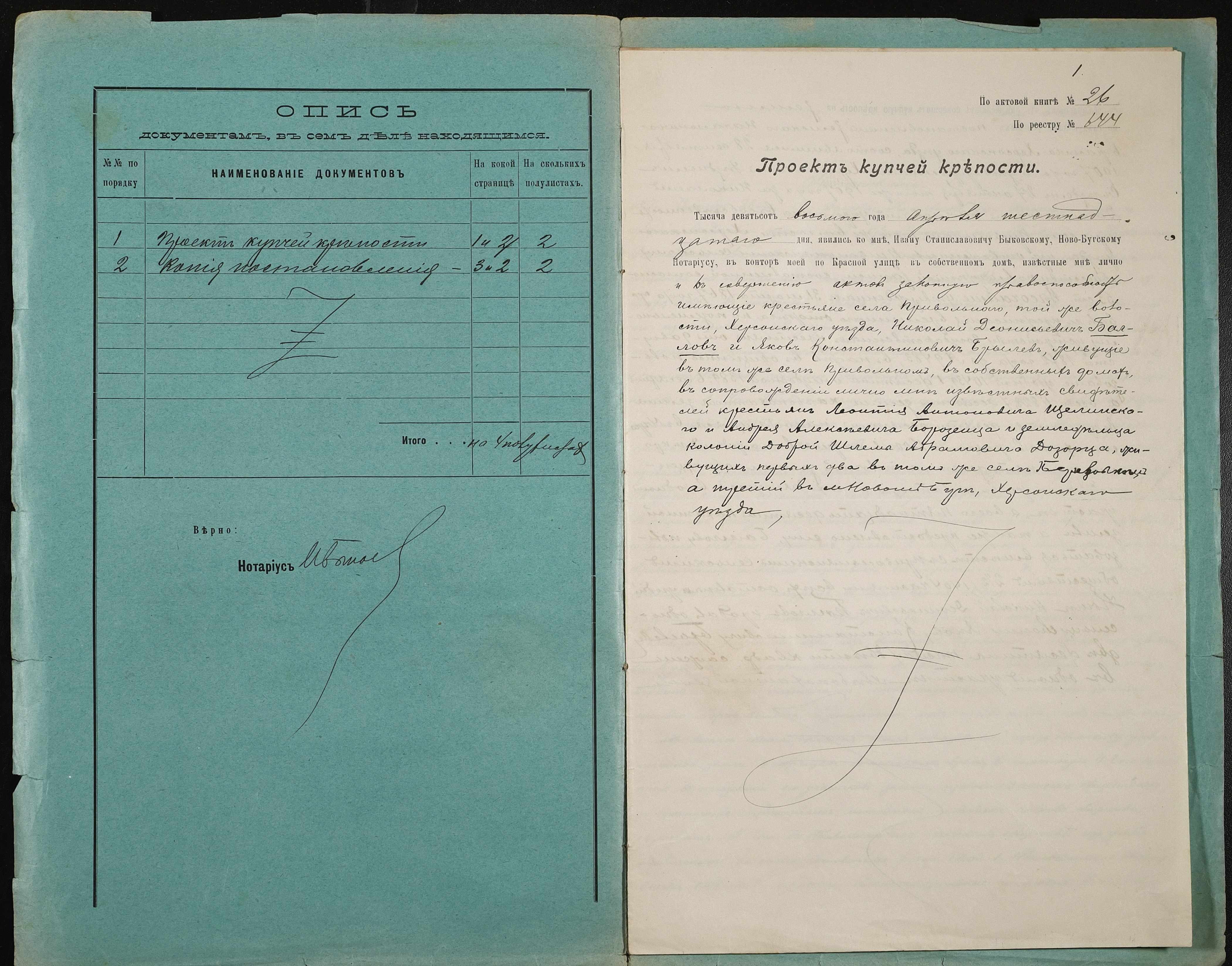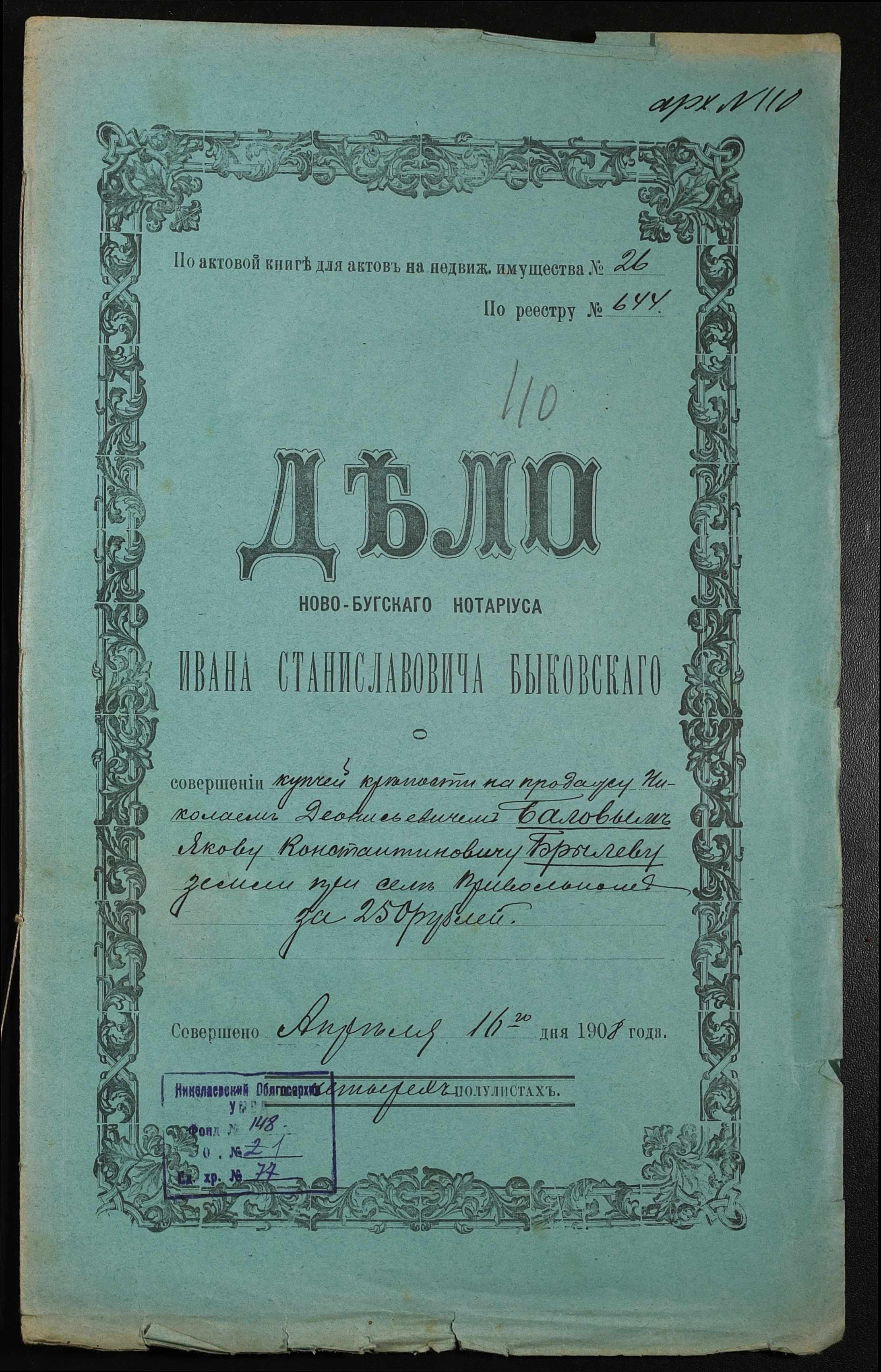 ◦ ◦ Фонд № 148 “Контора новобузького нотаріуса Биковського Івана Станіславовича”