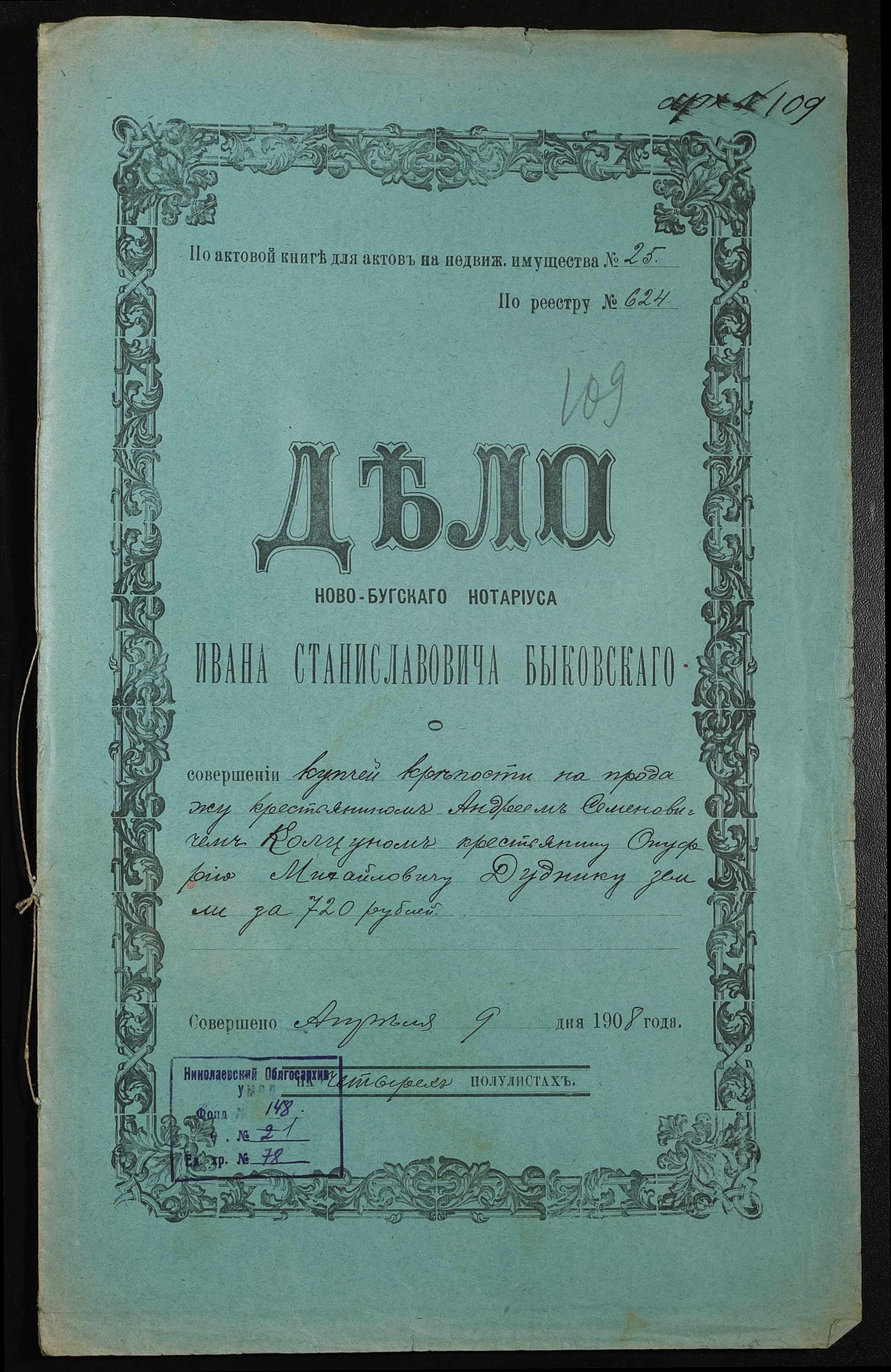 ◦ ◦ Фонд № 148 “Контора новобузького нотаріуса Биковського Івана Станіславовича”