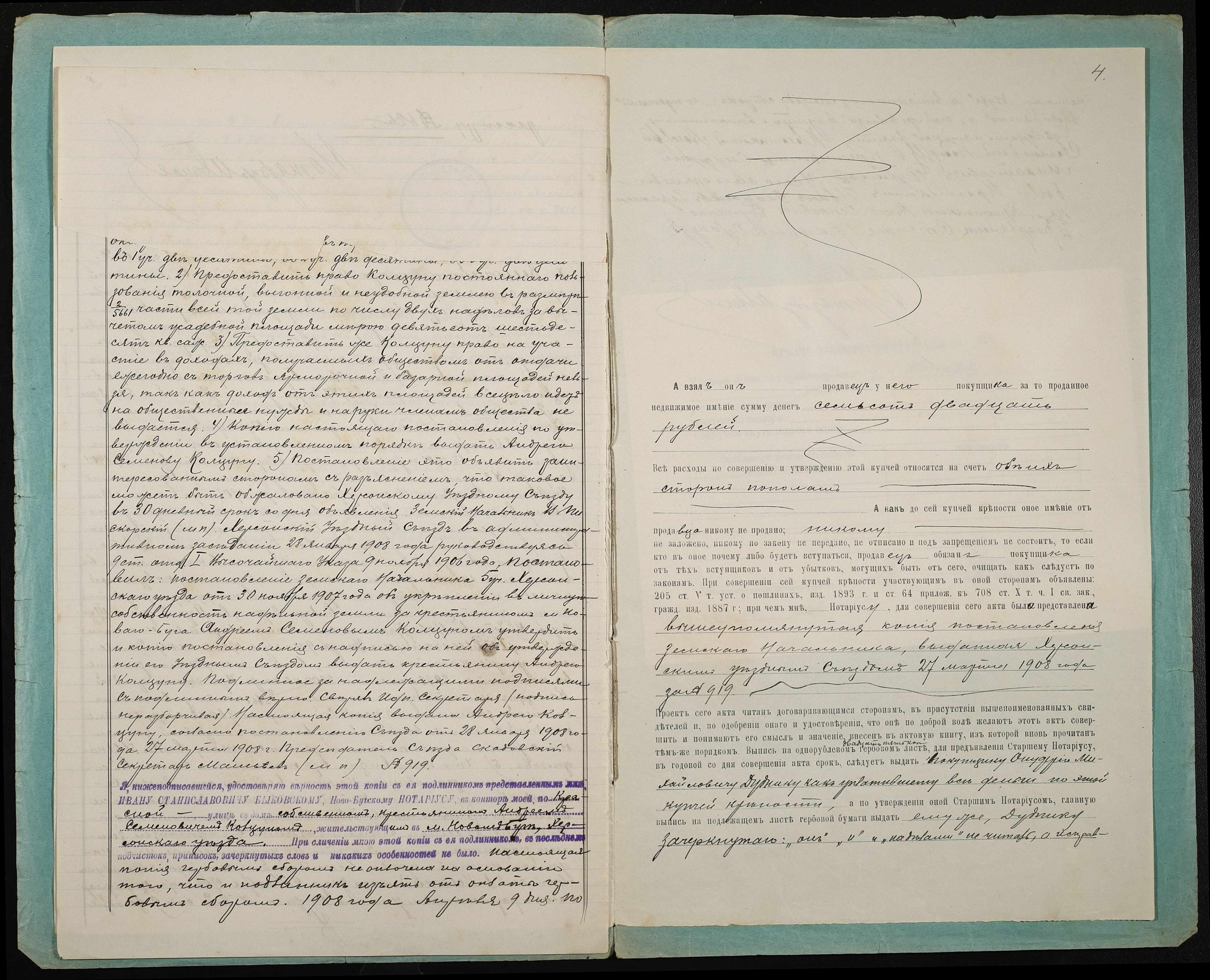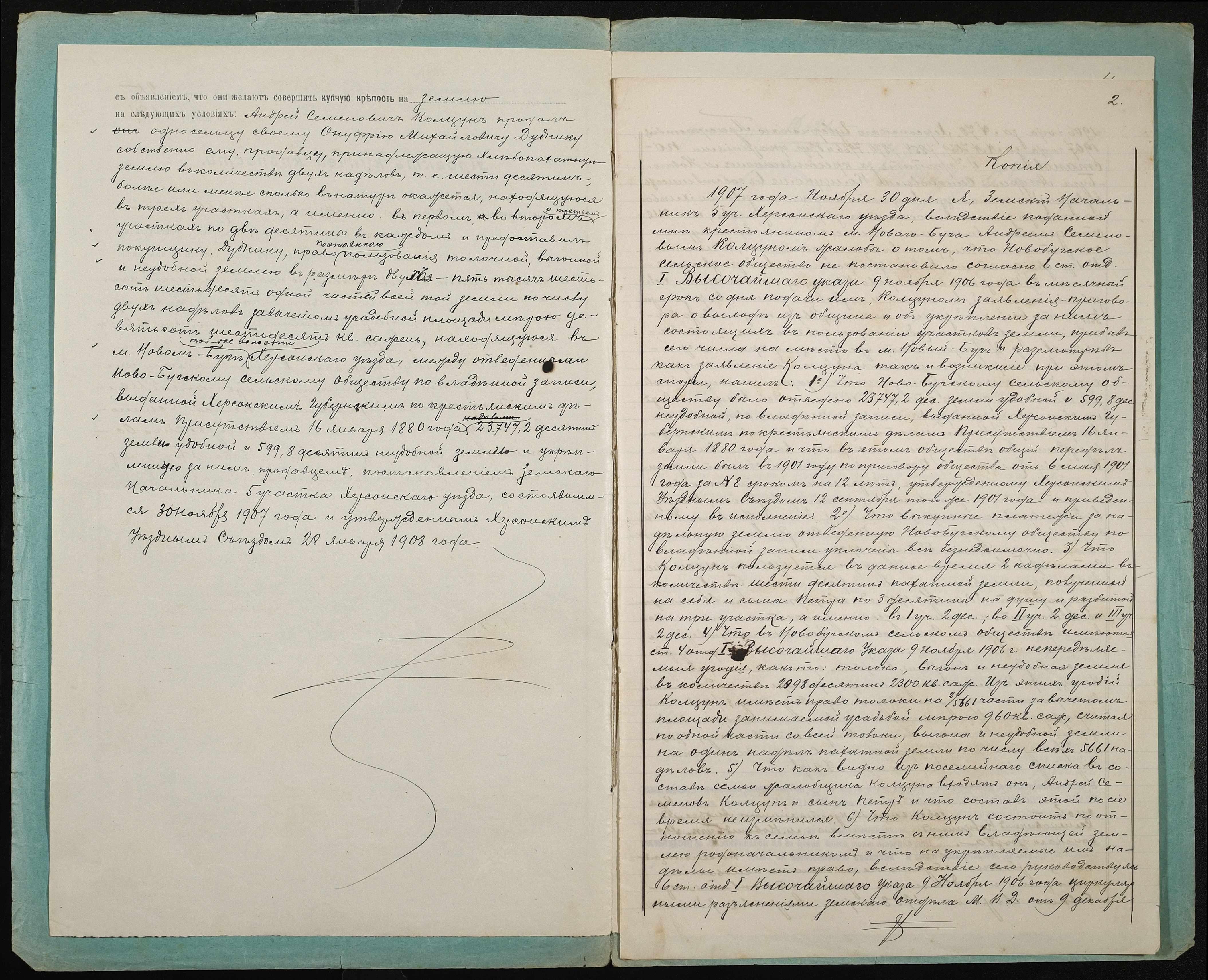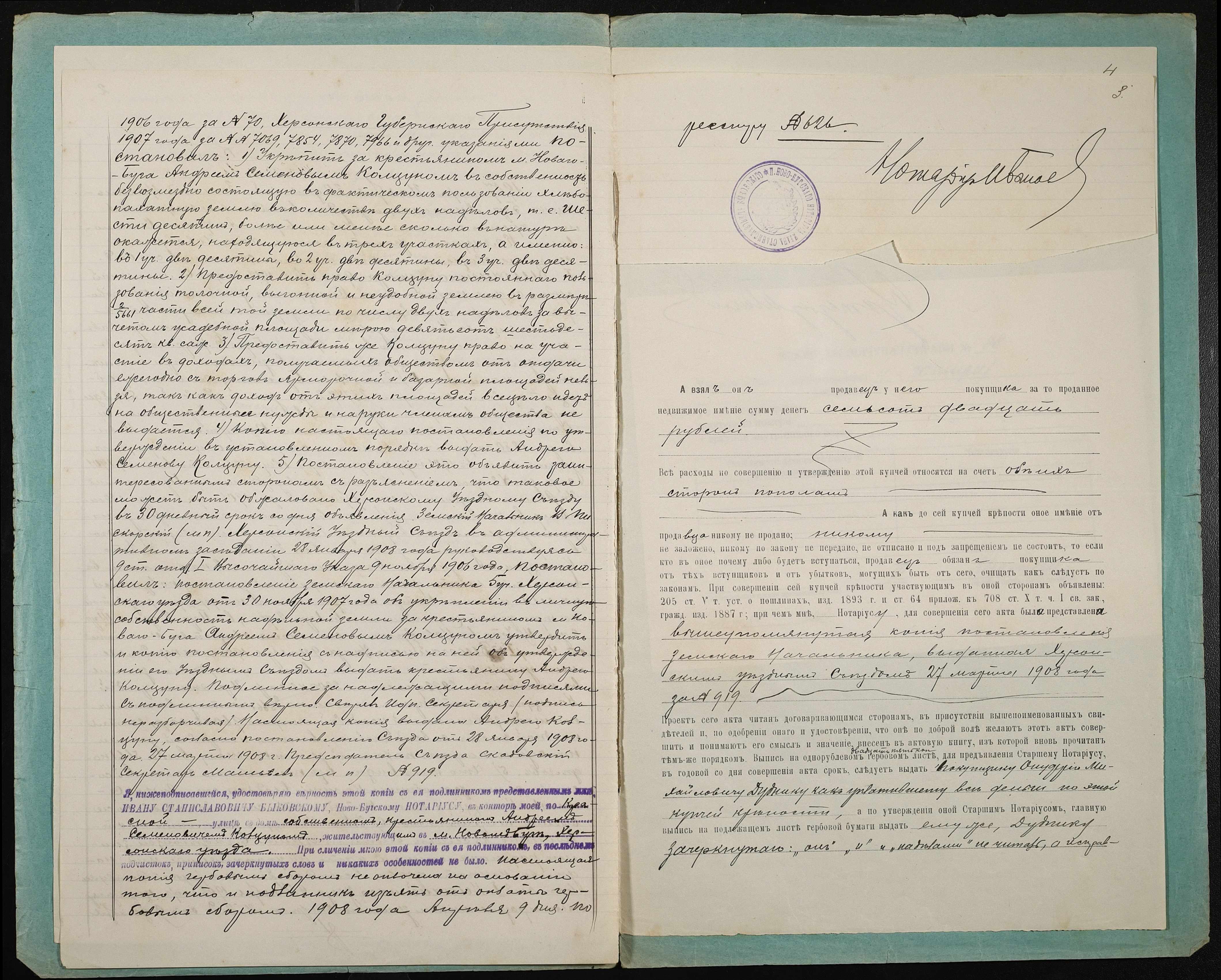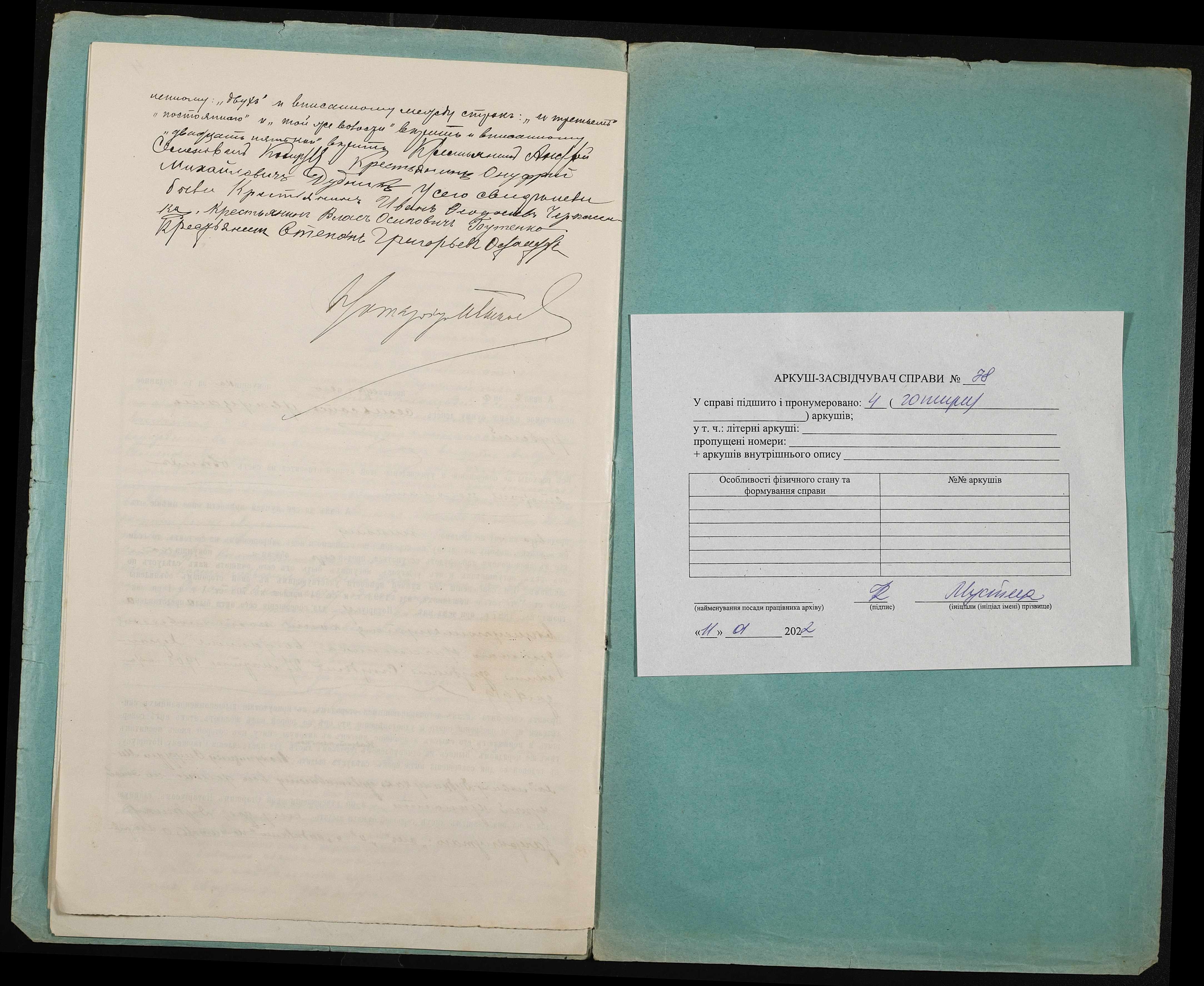 • • • • Справа № 78 “Справа про вчинення купчої про продаж землі селянином Колцуном Андрієм (Андреем) Семеновичем на користь селянина Дудника Онуфрія (Онуфрия) Михайловича”