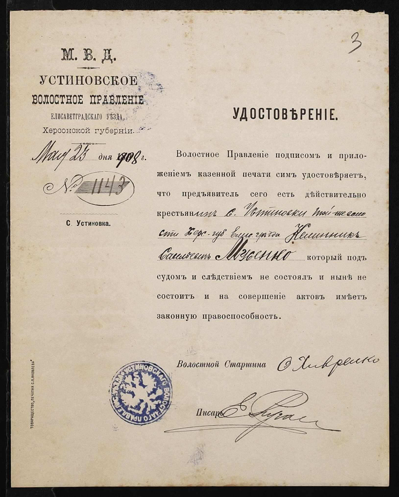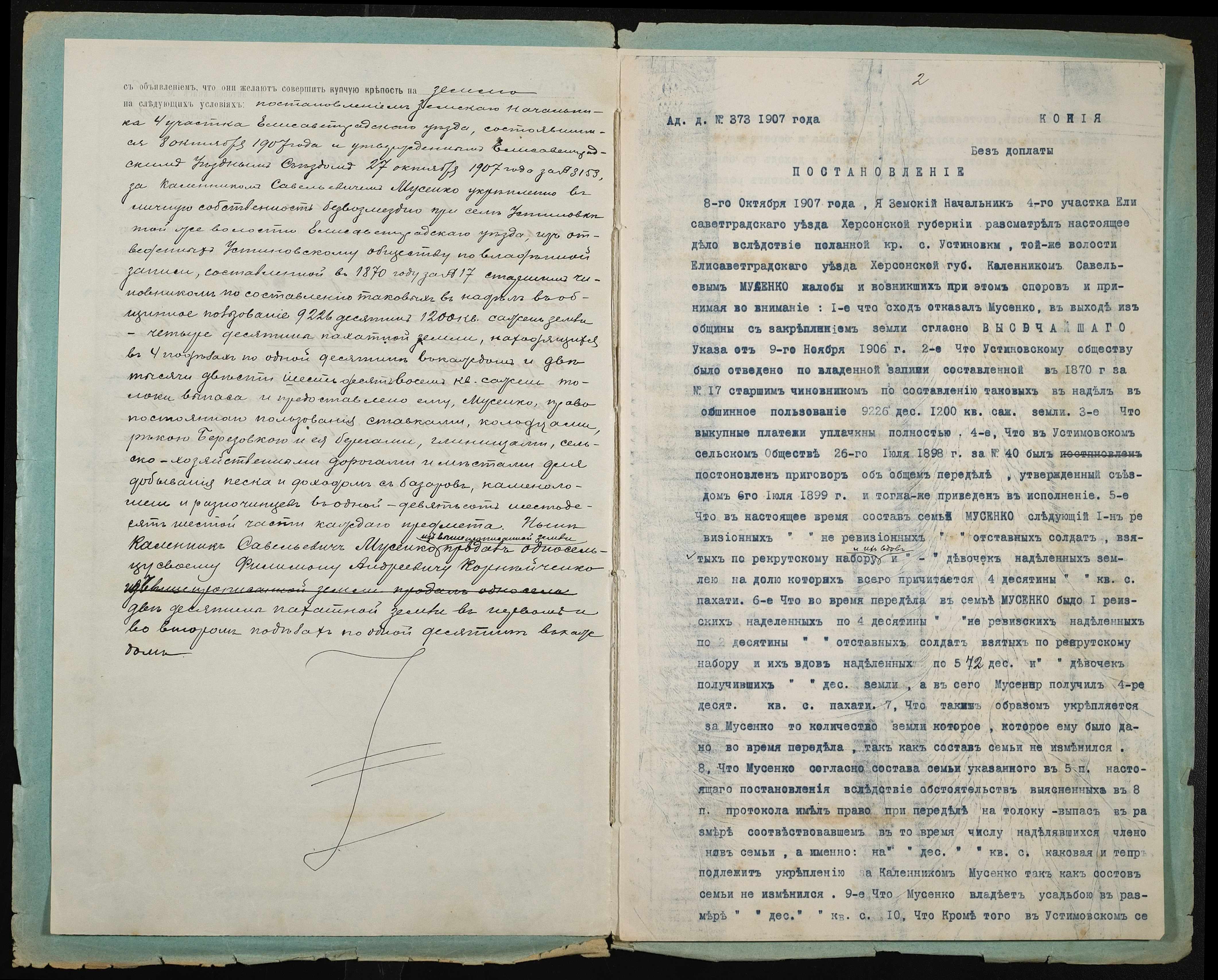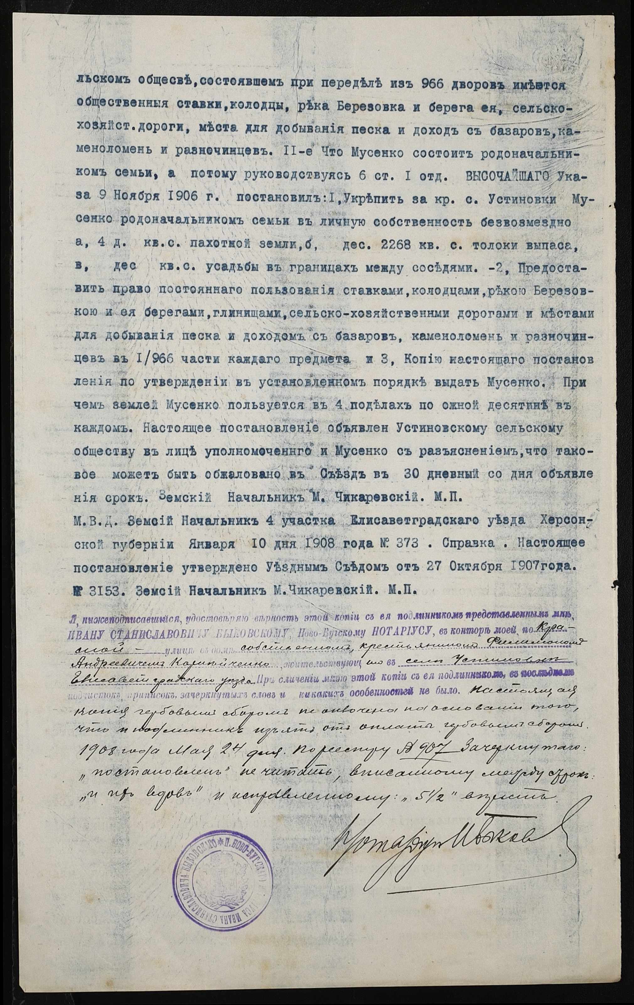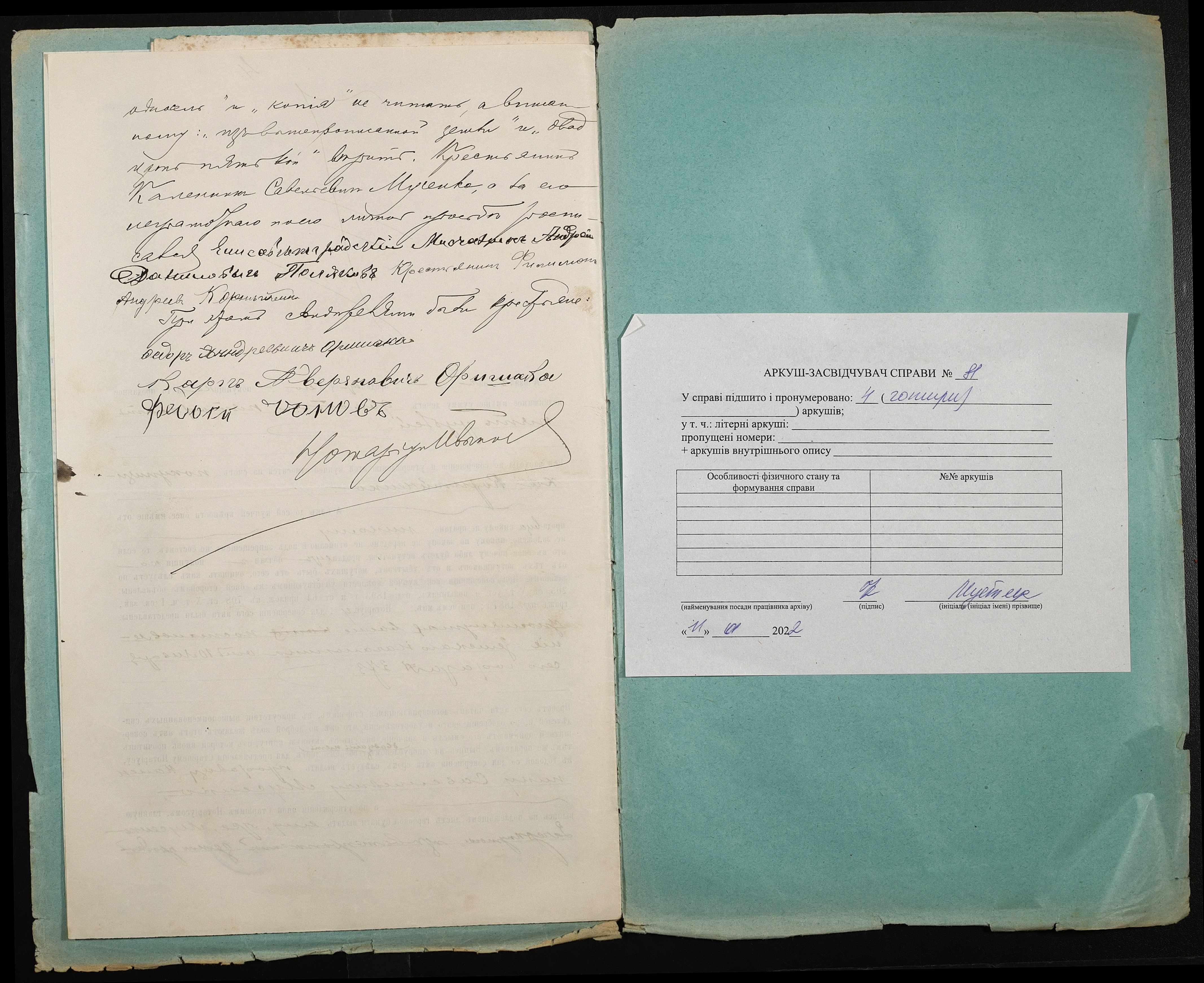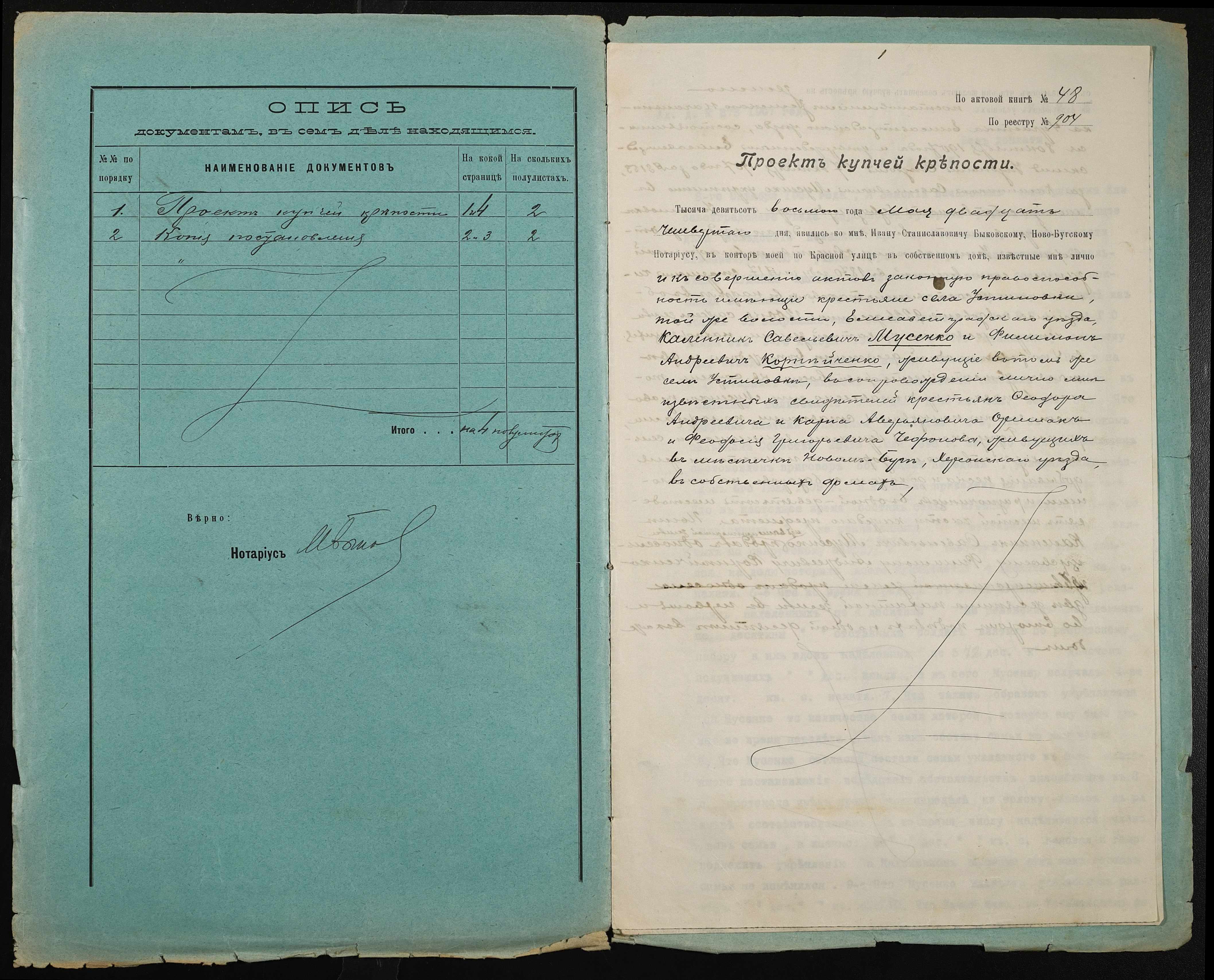 • • • • Справа № 81 “Справа про вчинення купчої про продаж землі селянином Мусенком (Мусенко) Калеником Савелійовичем (Савельевичем) на користь селянина Корнейченка Пилипа Андрійовича (Корнейченко Филиппа Андреевича)”