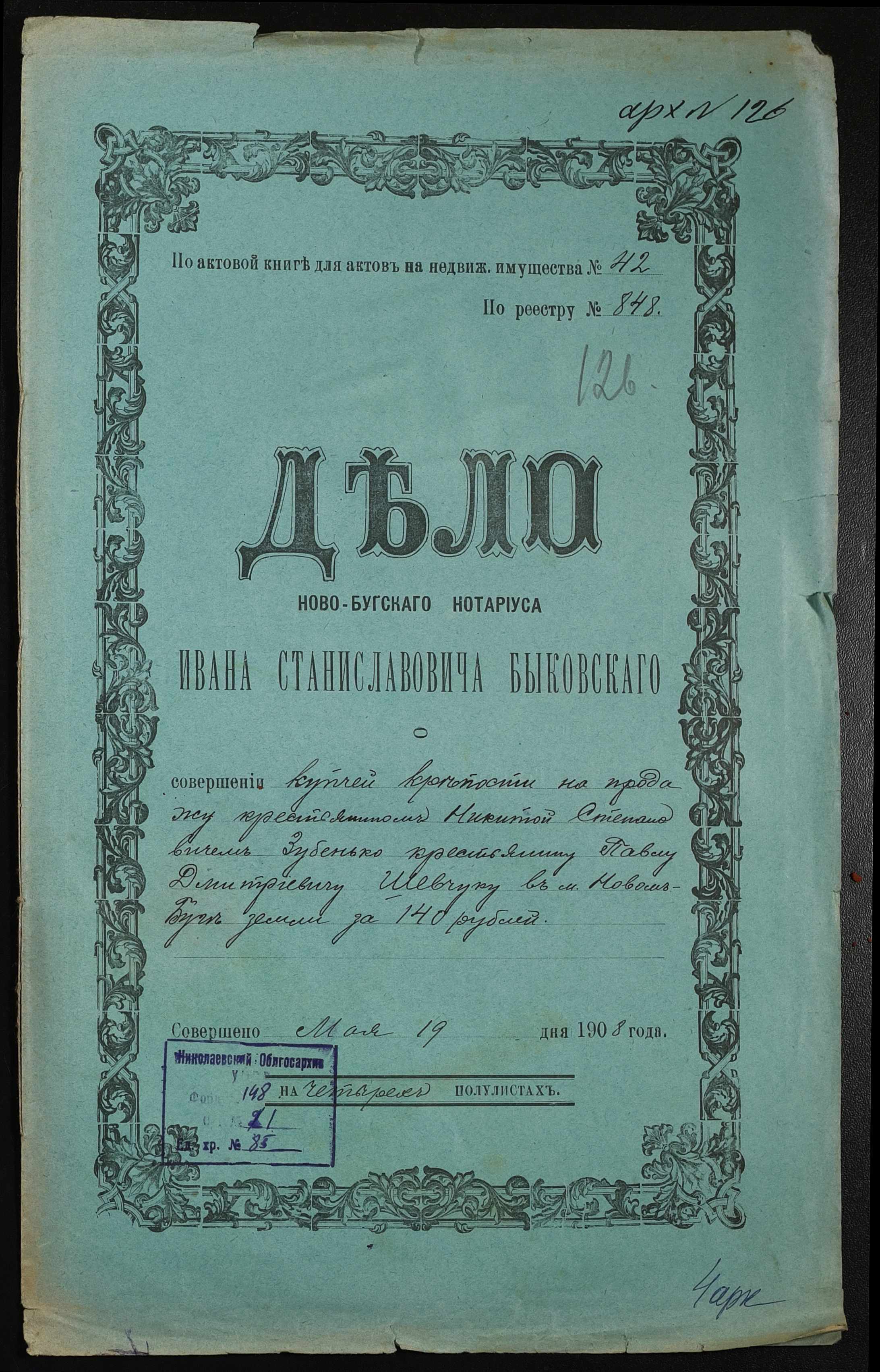 ◦ ◦ Фонд № 148 “Контора новобузького нотаріуса Биковського Івана Станіславовича”