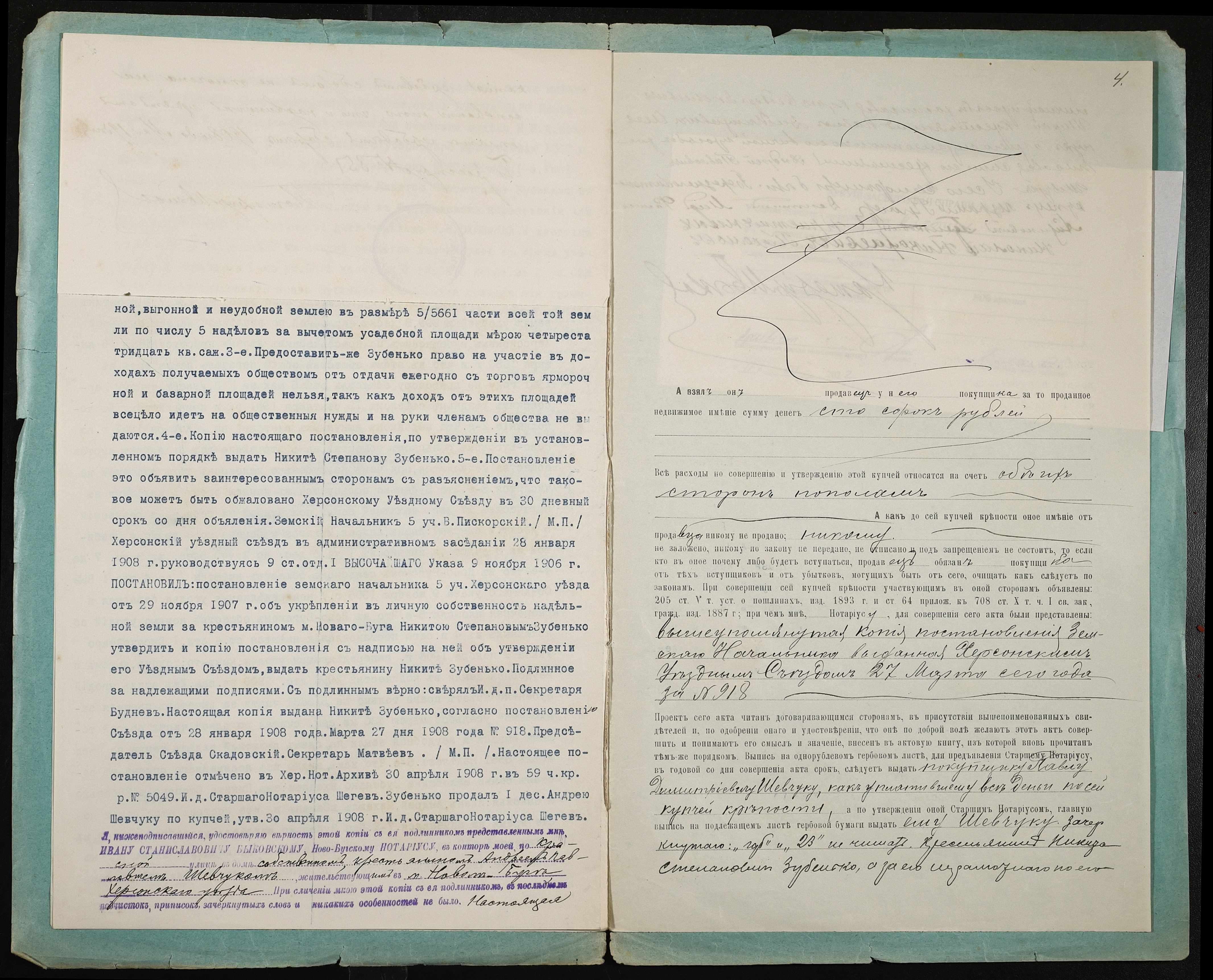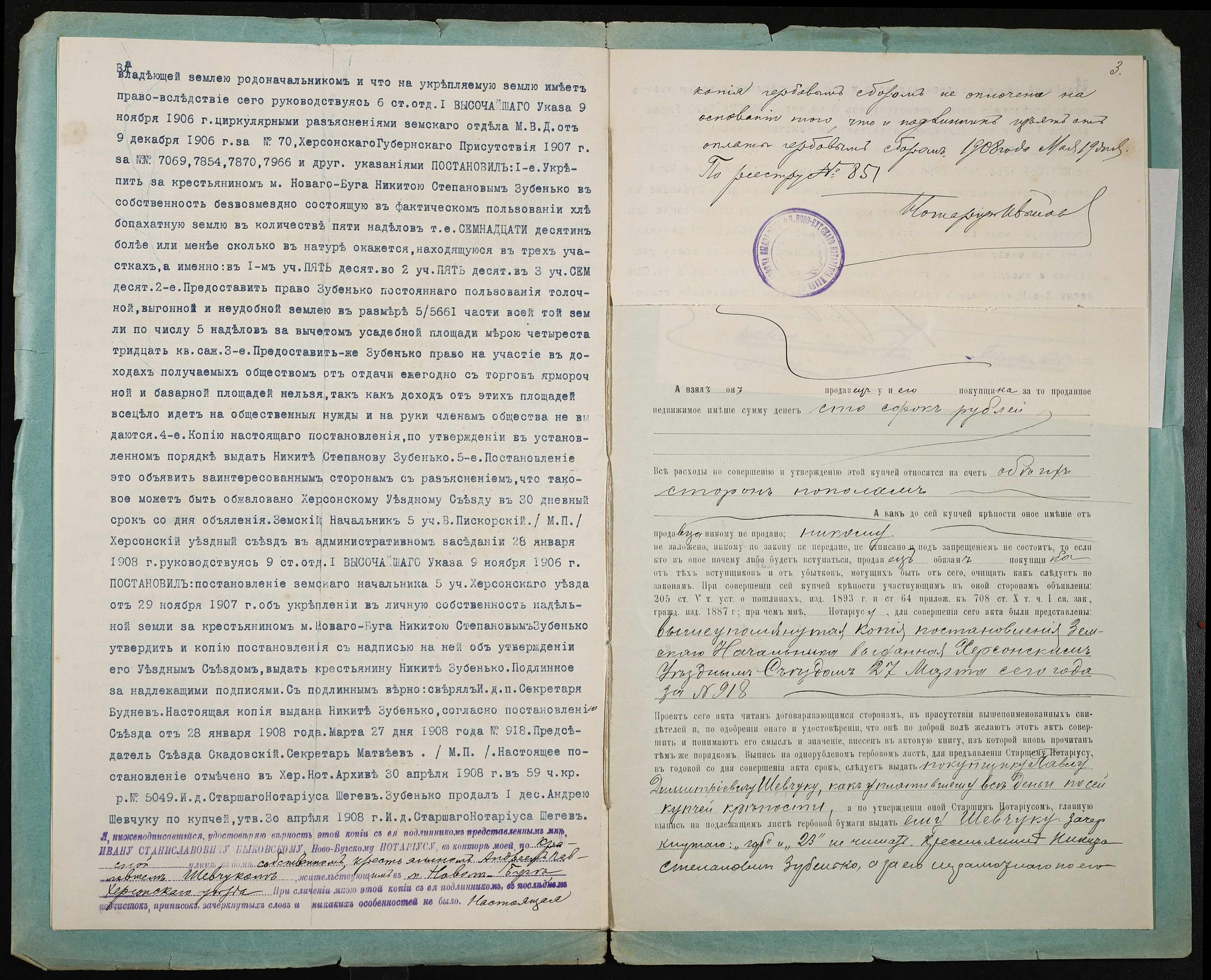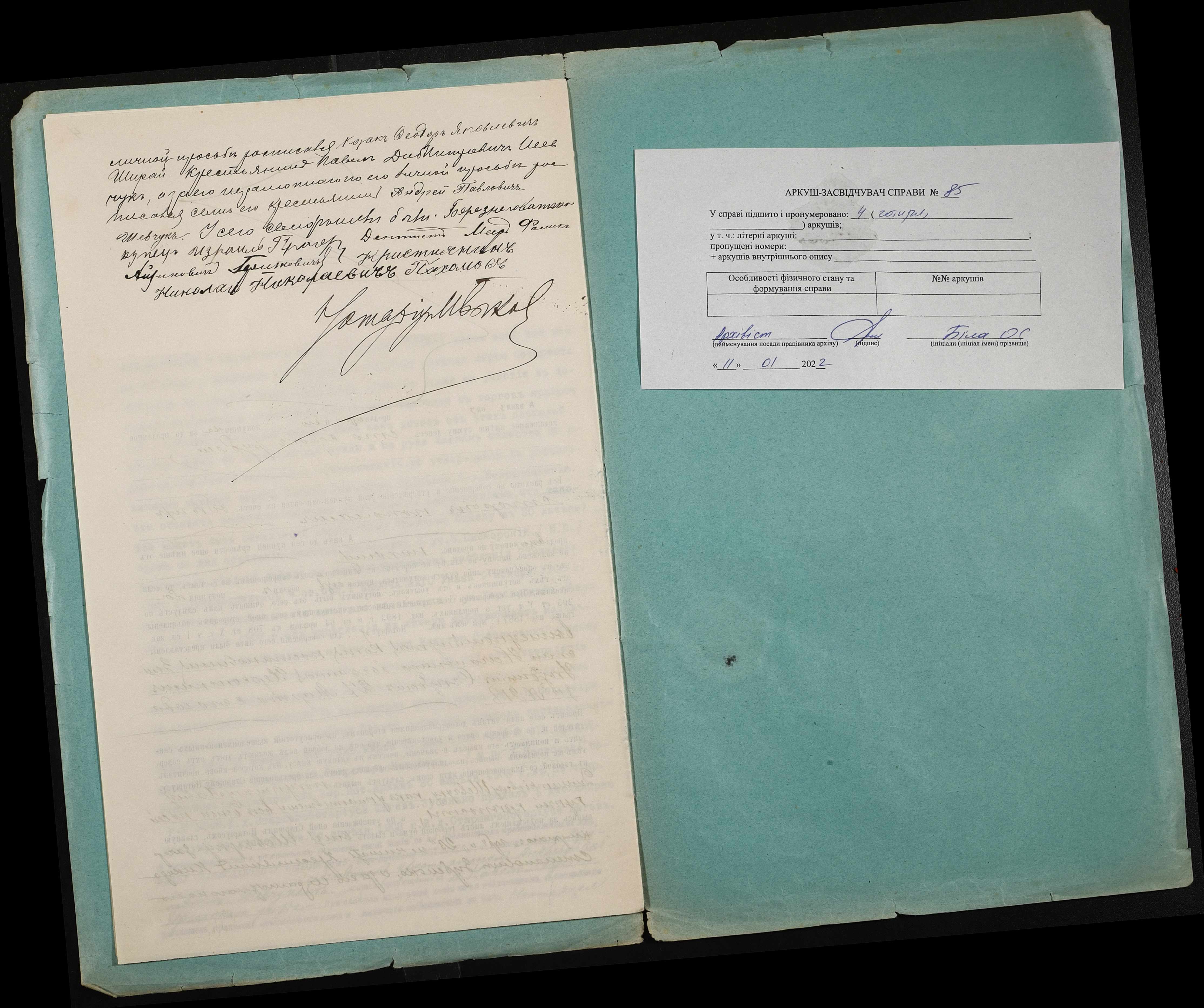 • • • • Справа № 85 “Справа про вчинення купчої про продаж землі селянином Зубеньком Микитою (Зубенько Никитой) Степановичем на користь селянина Шевчука Павла Дмитровича”