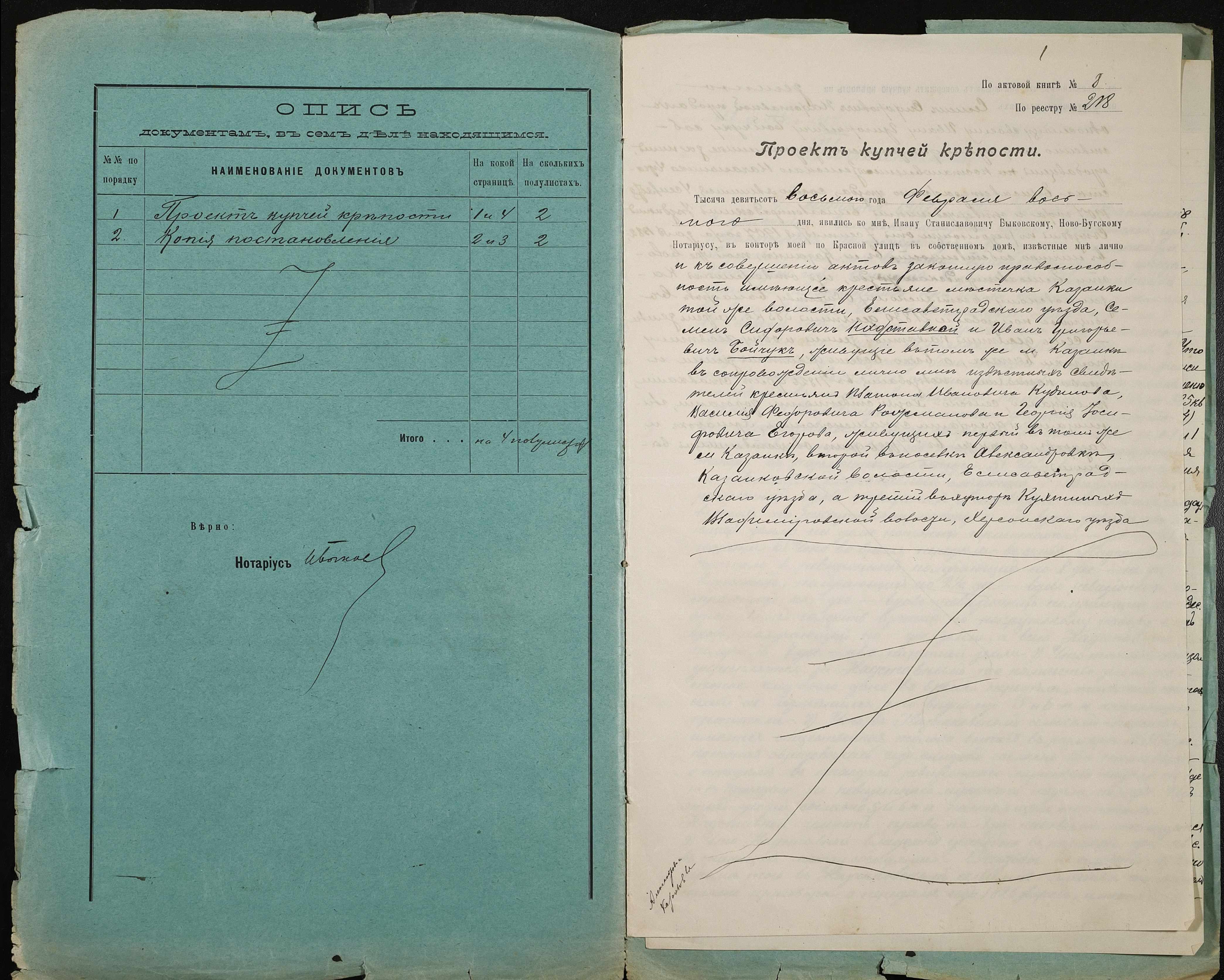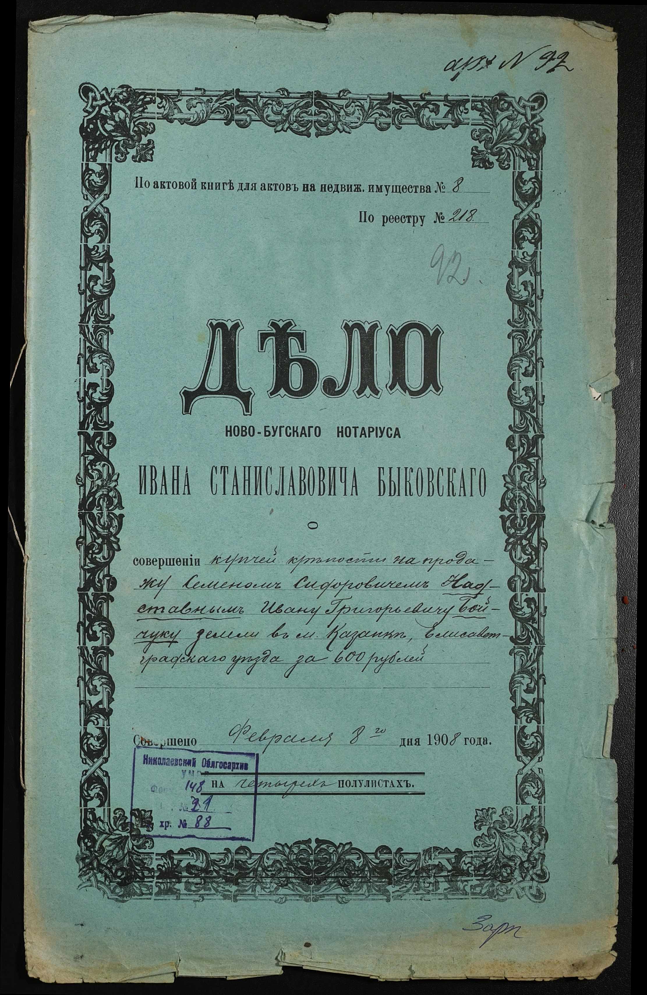 ◦ ◦ Фонд № 148 “Контора новобузького нотаріуса Биковського Івана Станіславовича”