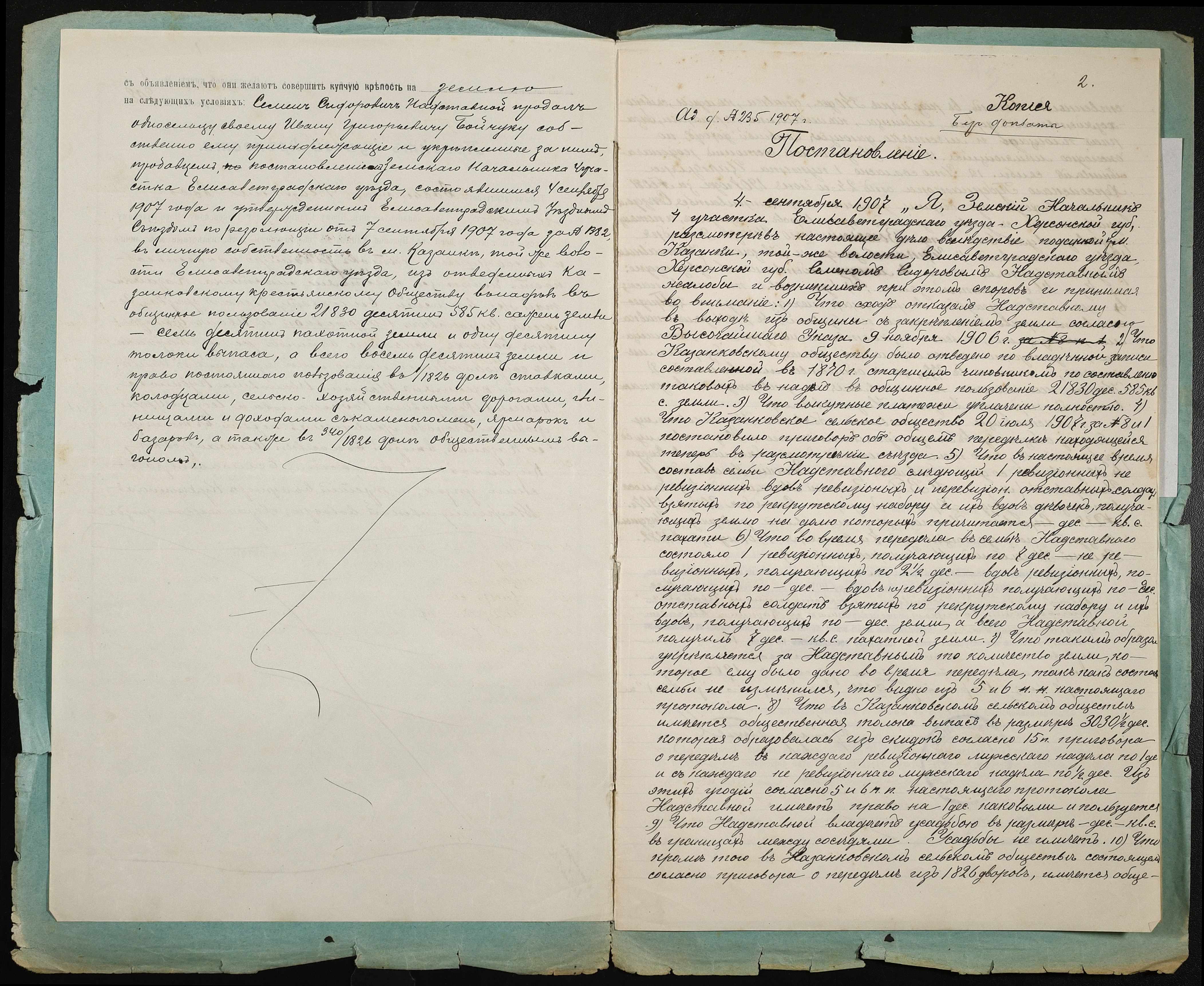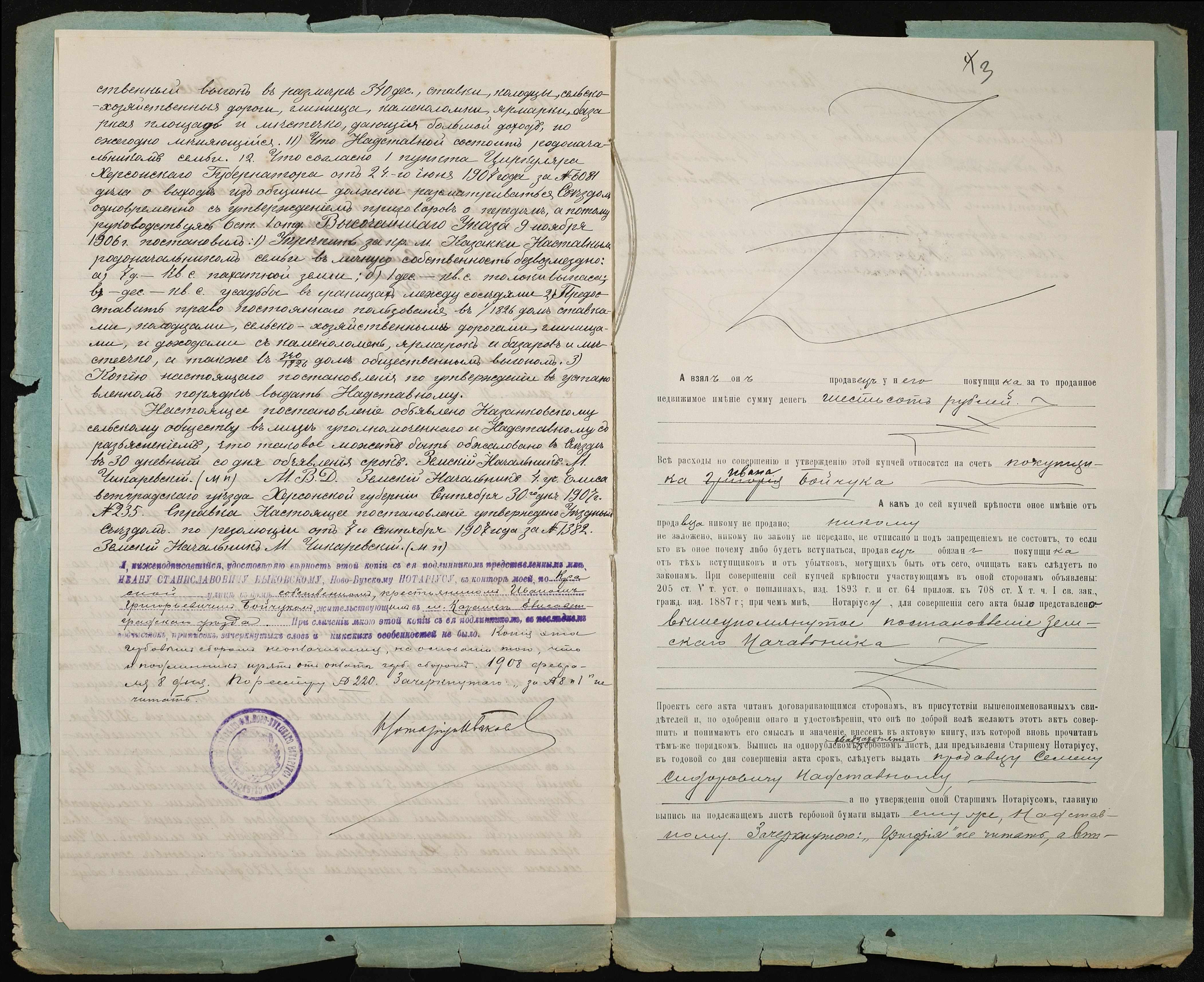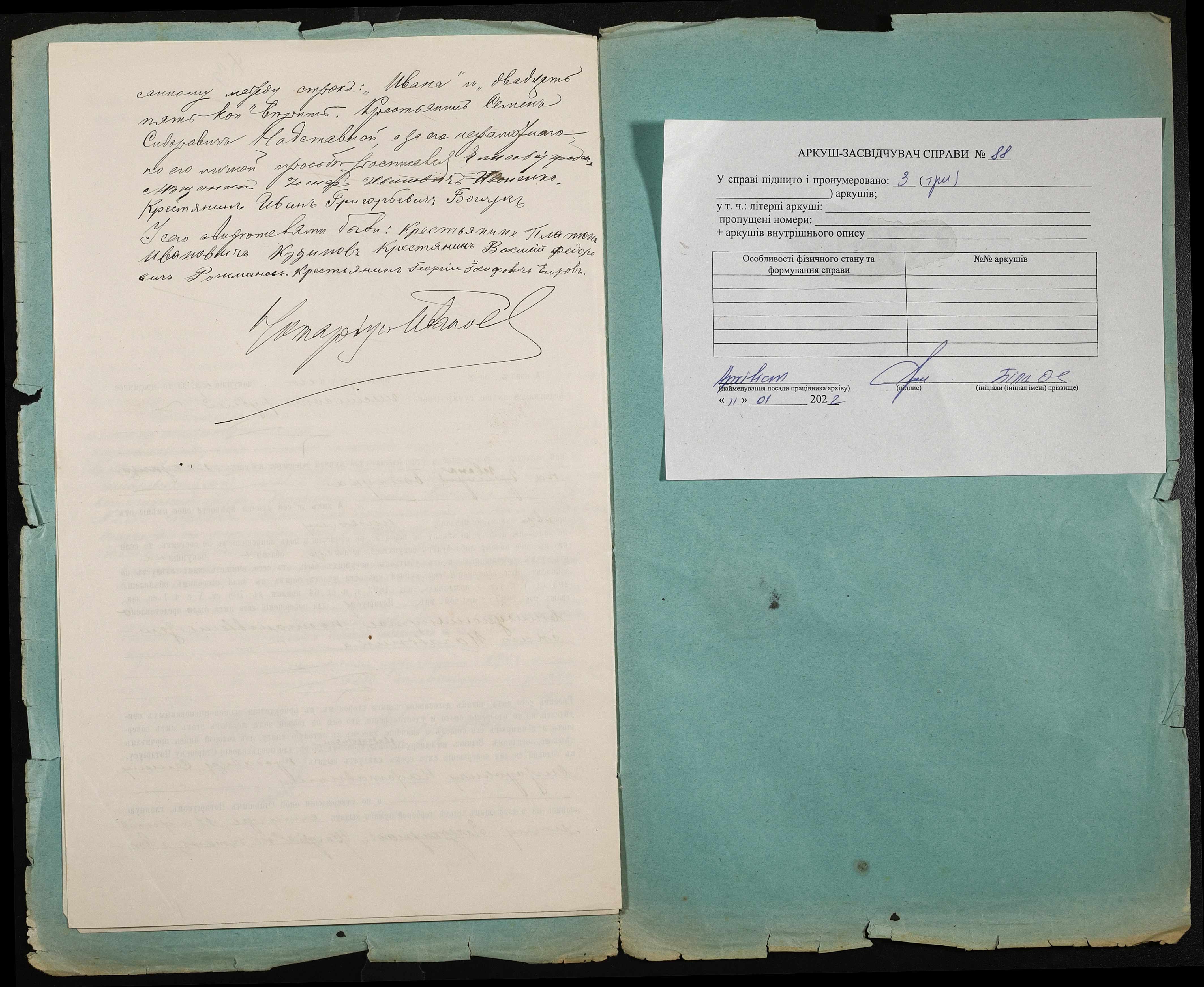 • • • • Справа № 88 “Справа про вчинення купчої про продаж землі селянином Надставним (Надставным) Семеном Сидоровичем на користь селянина Бойчука Івана Григоровича (Ивана Григорьевича)”