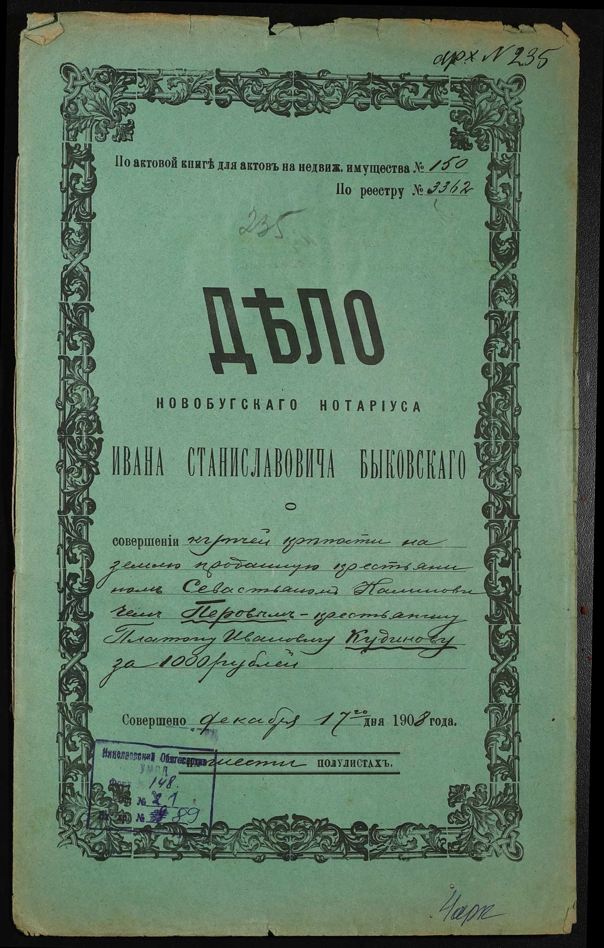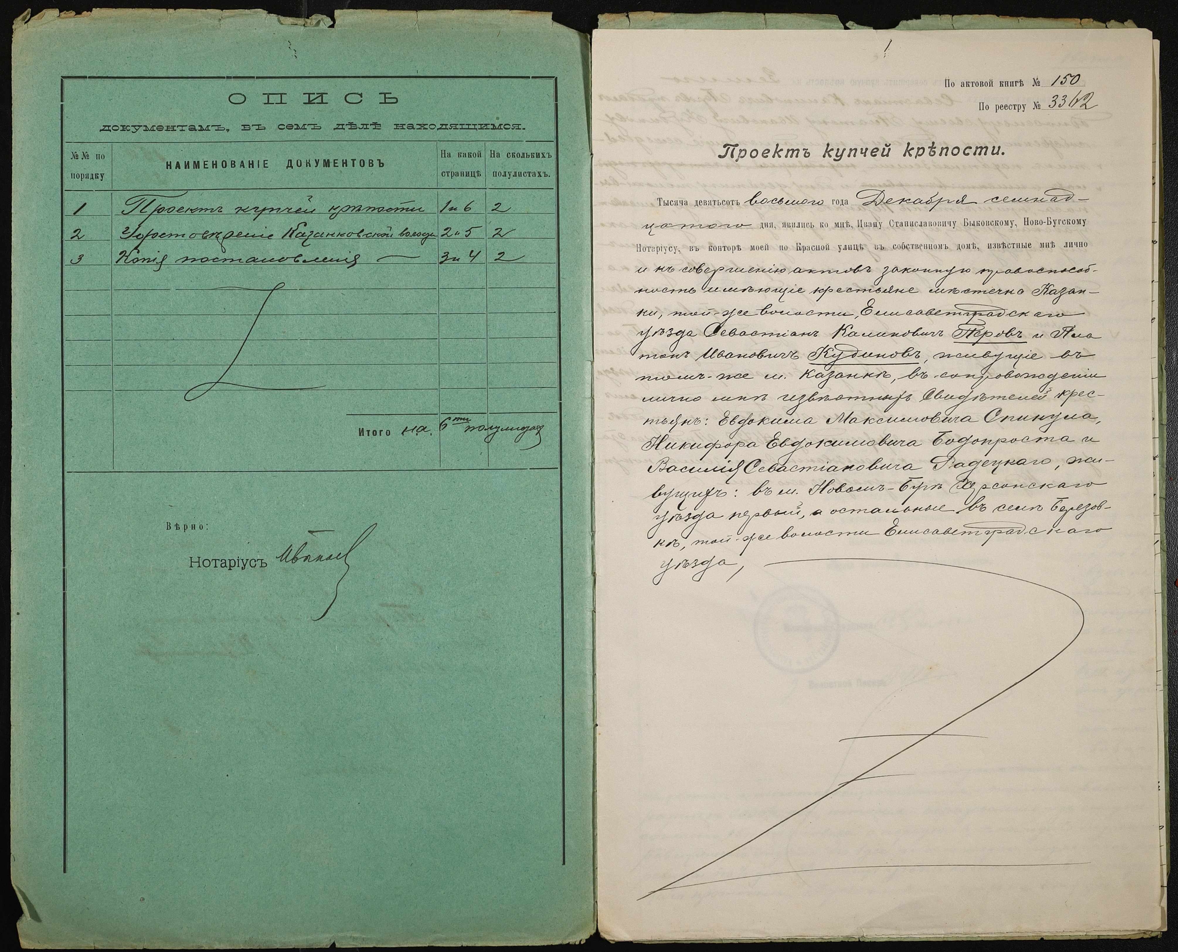 ◦ ◦ Фонд № 148 “Контора новобузького нотаріуса Биковського Івана Станіславовича”