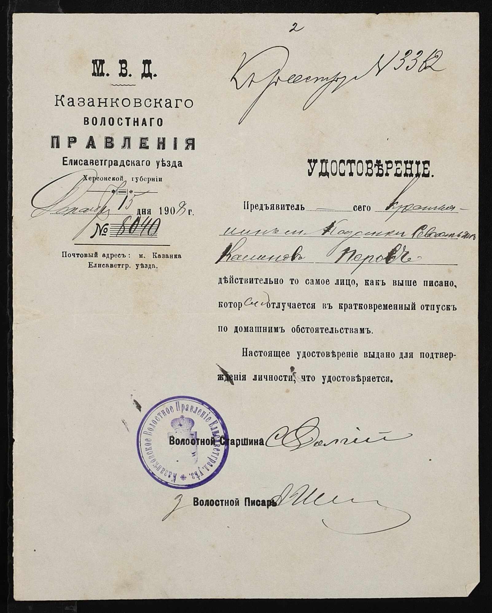 ◦ ◦ ◦ Опис № 1 справ постійного зберігання за 1907, 1908-1909, 1911, 1913-1914 роки