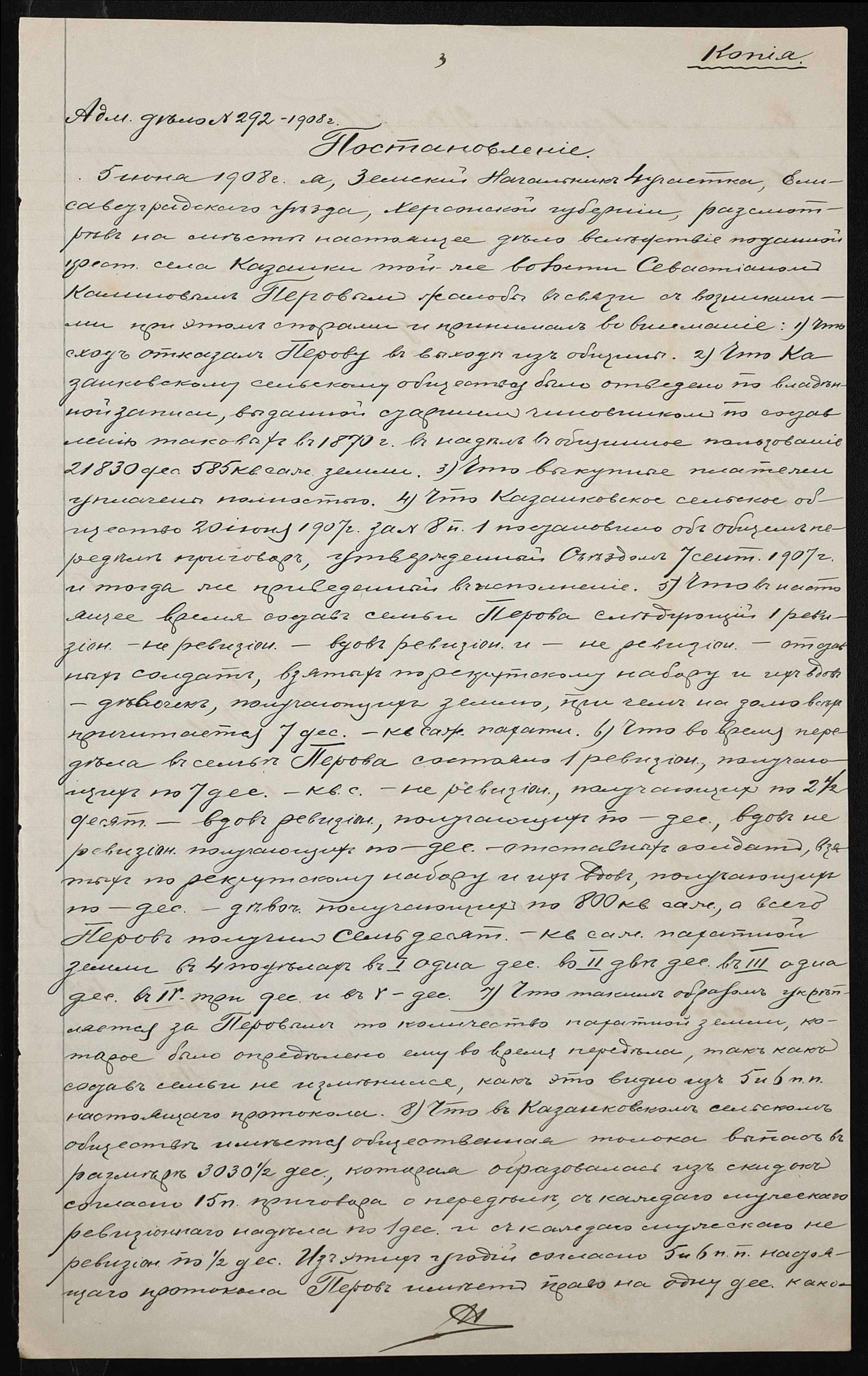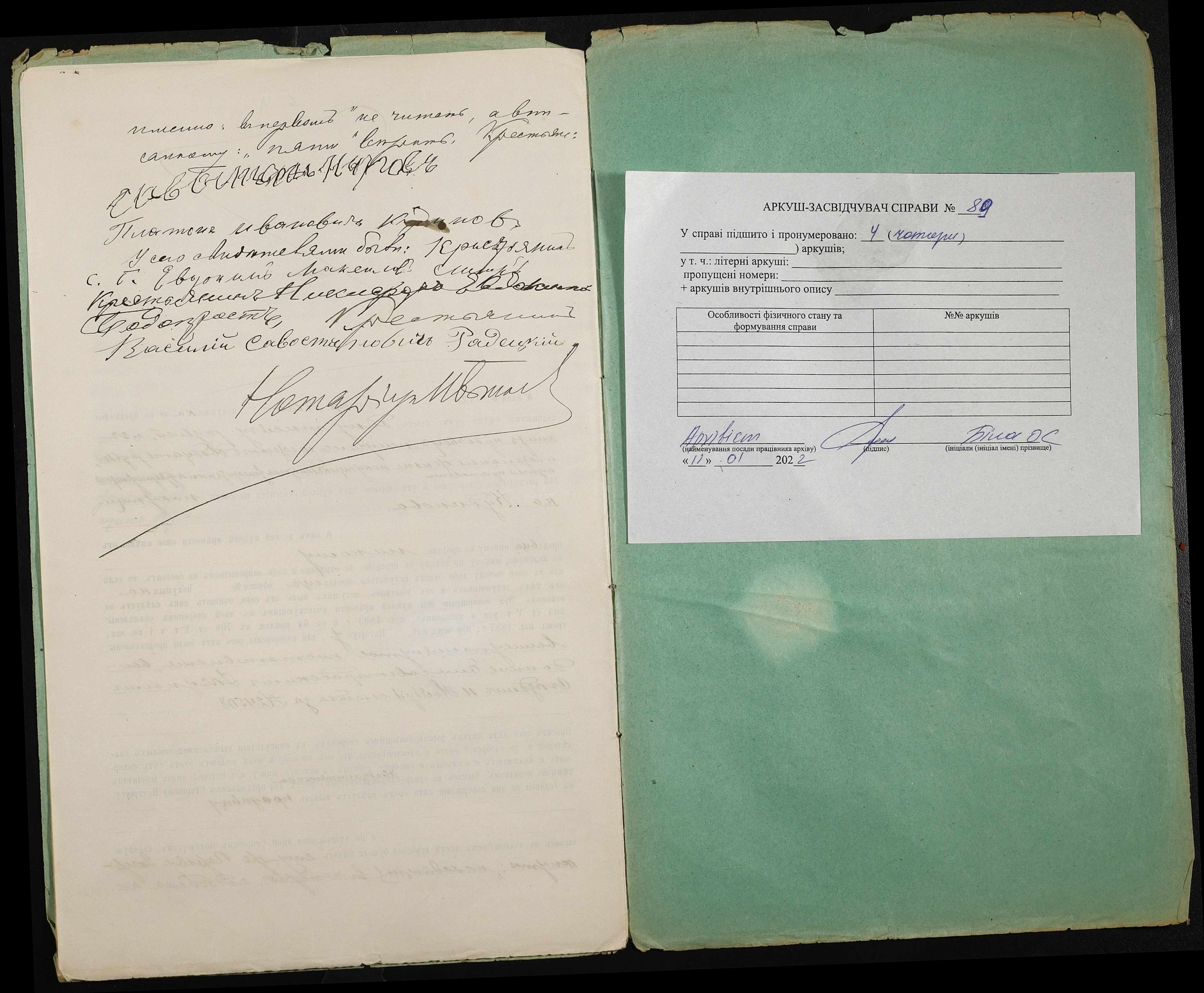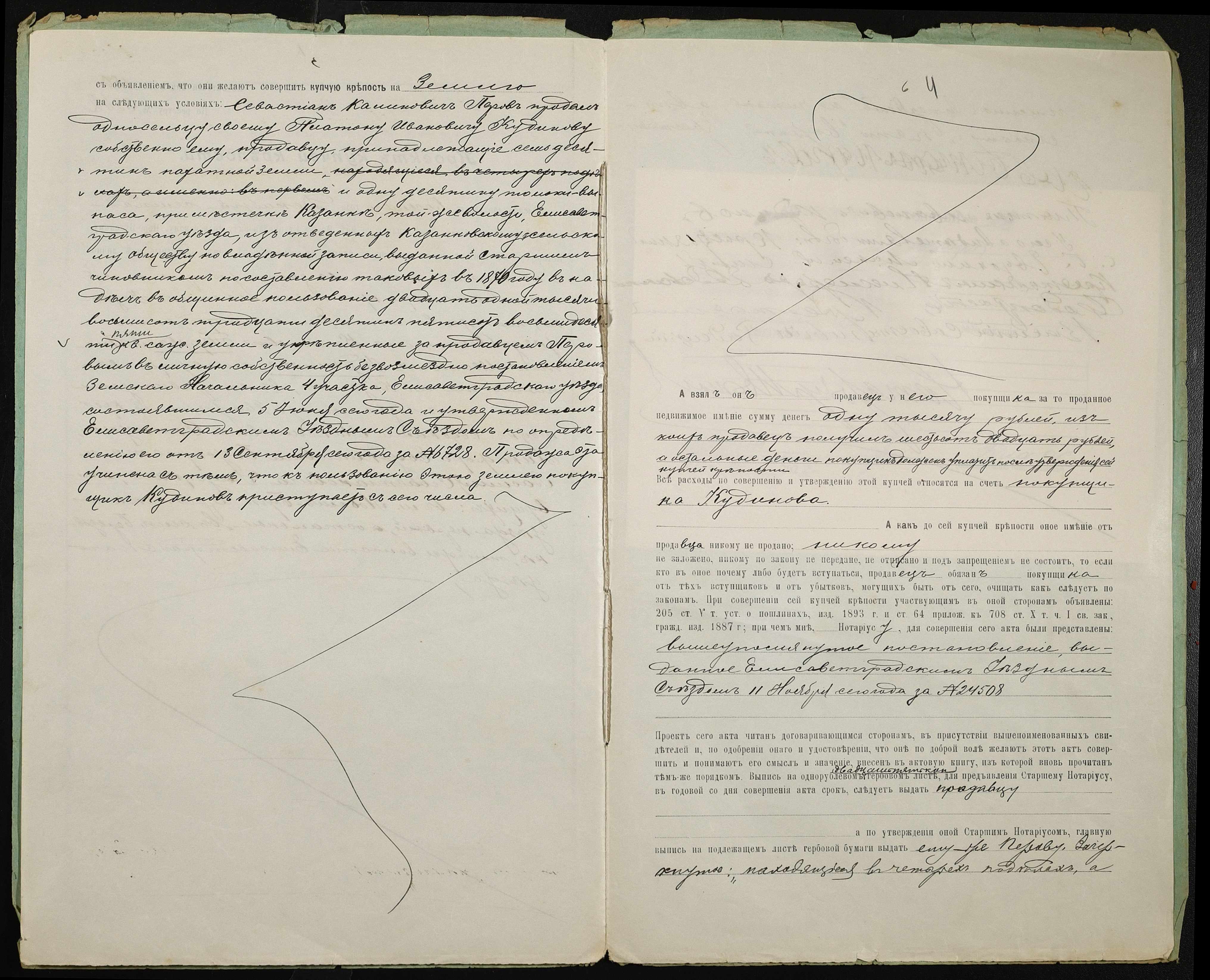 • • • • Справа № 89 “Справа про вчинення купчої про продаж землі селянином Перовим Севастяном (Перовым Севастьяном) Калиновичем на користь селянина Кудінова (Кудинова) Платона Івановича (Ивановича)”