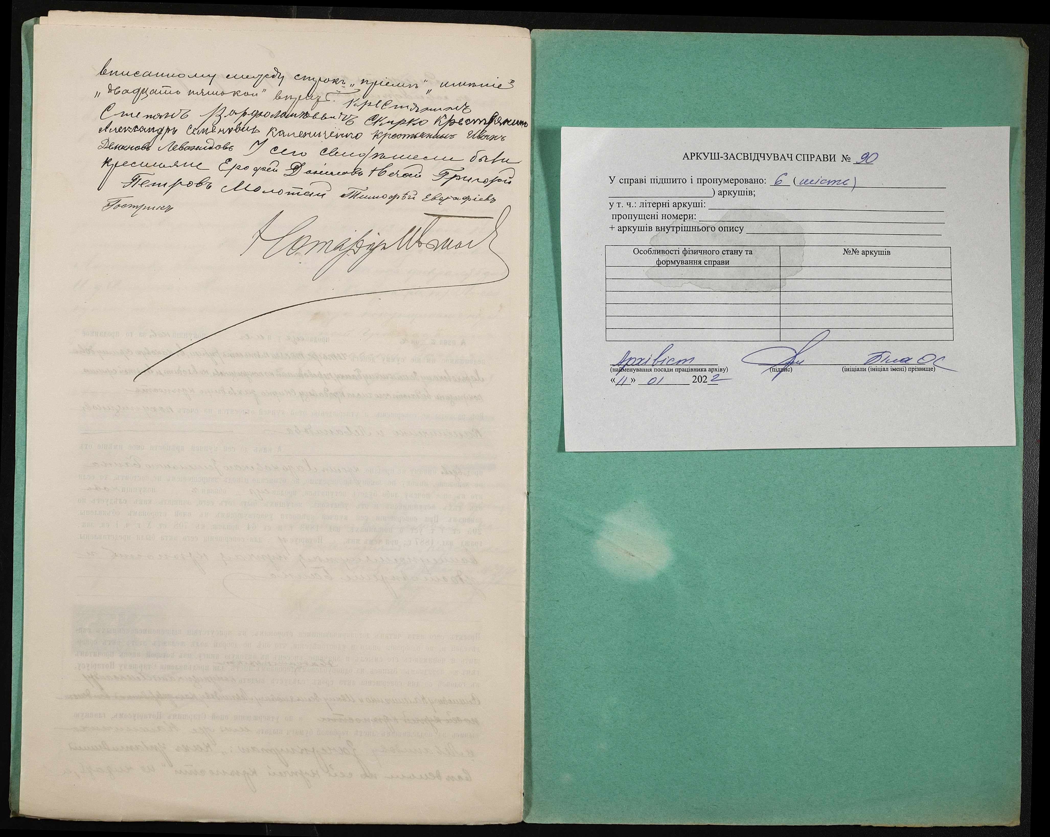 • • • • Справа № 90 “Справа про вчинення купчої про продаж землі селянином Скирком (Скирко) Степаном на користь селян Калениченка Олександра (Калениченко Александра) і Леванідова Івана (Леванидова Ивана)”