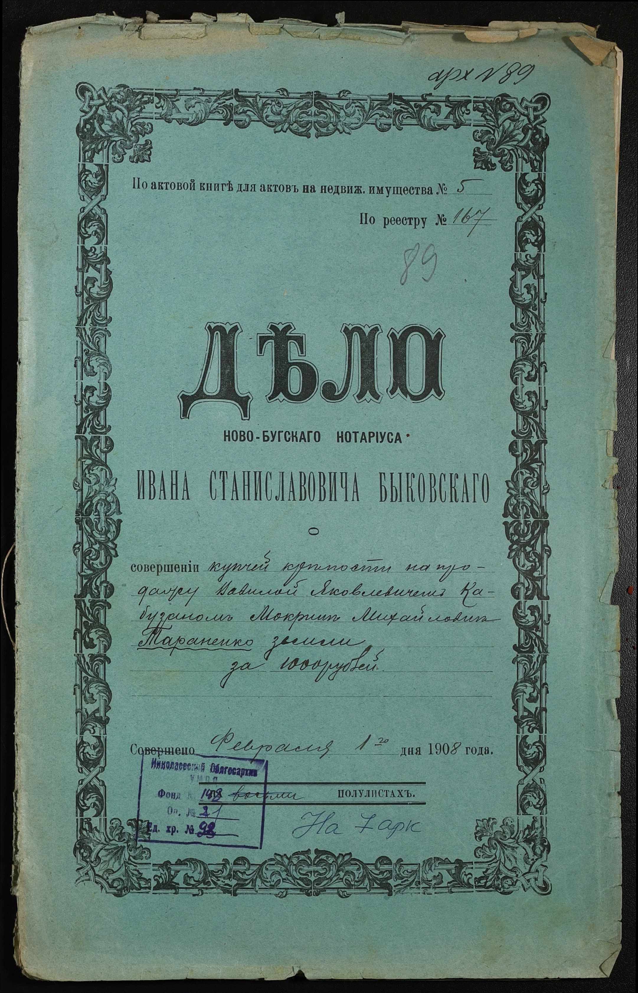 ◦ ◦ Фонд № 148 “Контора новобузького нотаріуса Биковського Івана Станіславовича”