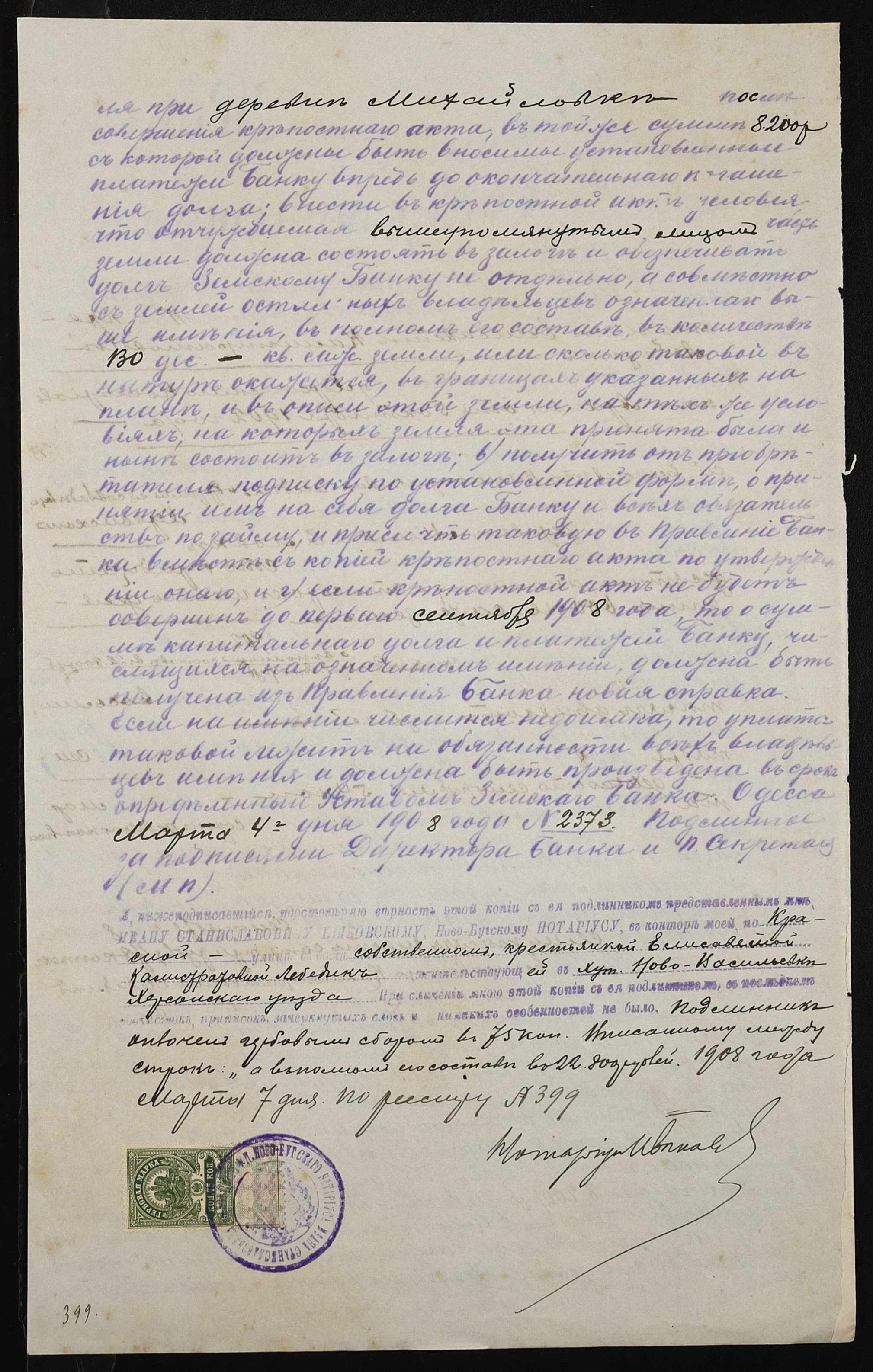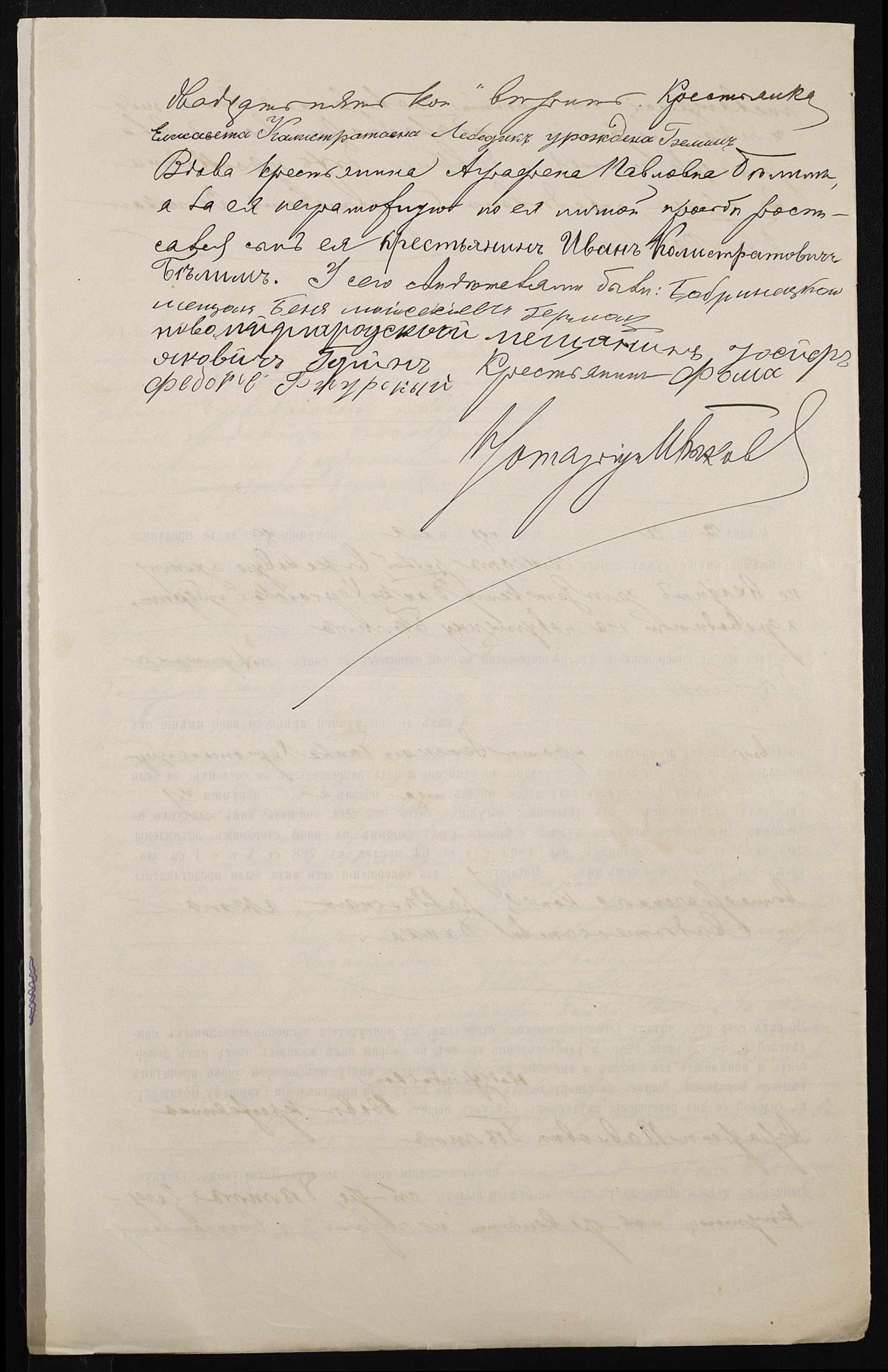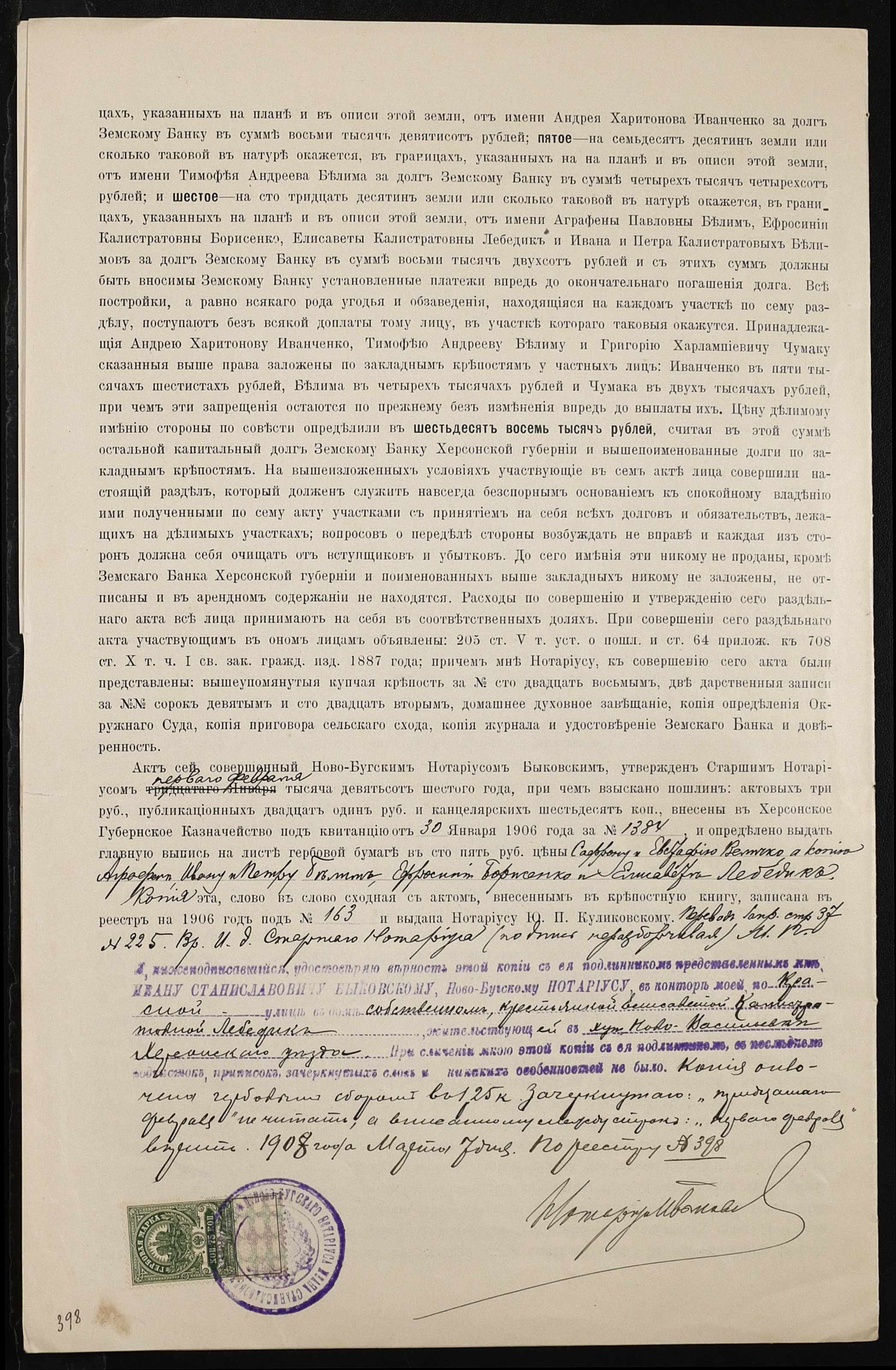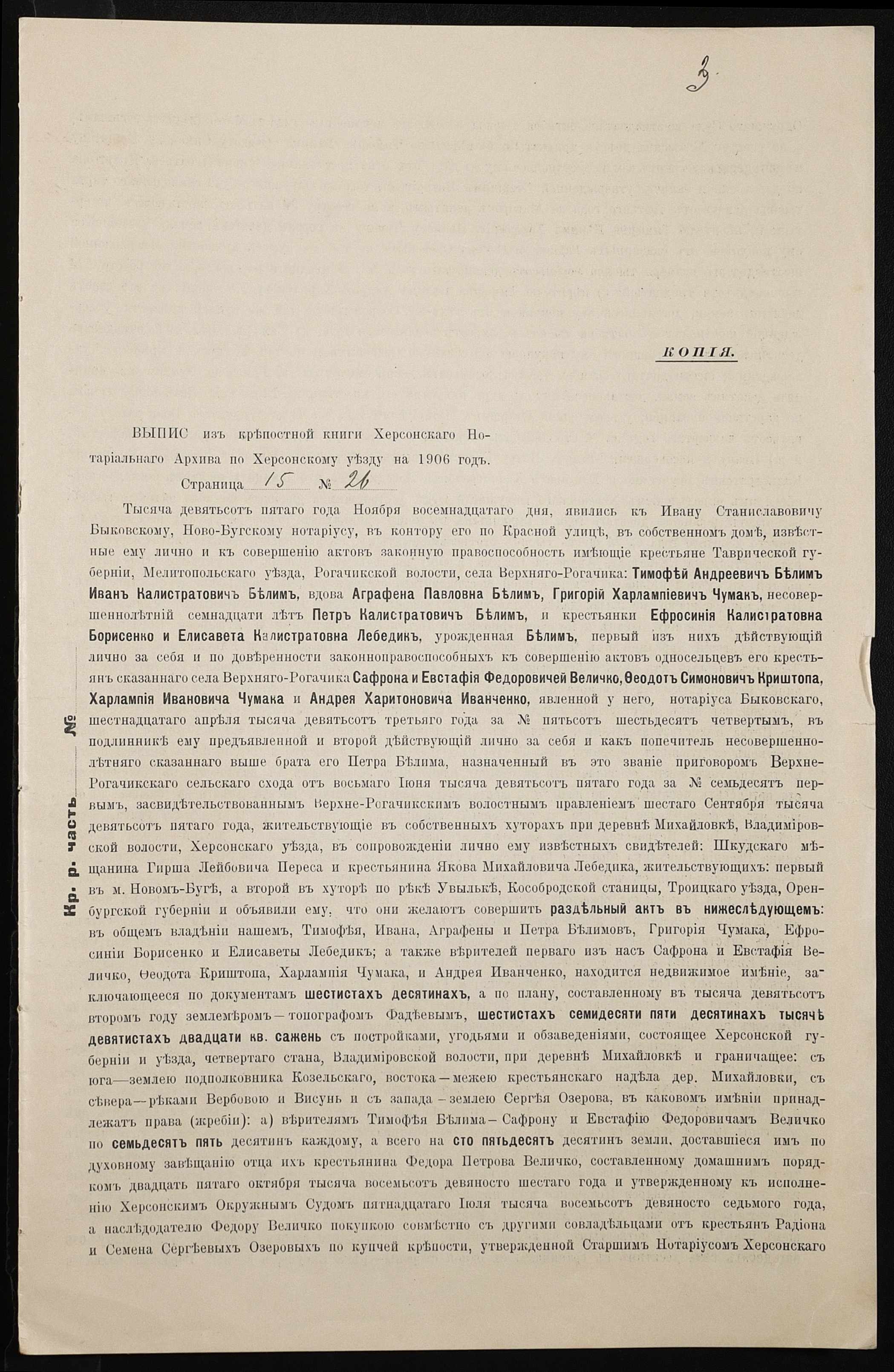 • • • • Справа № 94 “Справа про вчинення купчої про продаж землі селянкою Лебедик Єлисаветою Калістратівною (Елисаветой Калистратовной) на користь селянки Бєлої Горпини Павлівни (Белой Аграфены Павловны)”