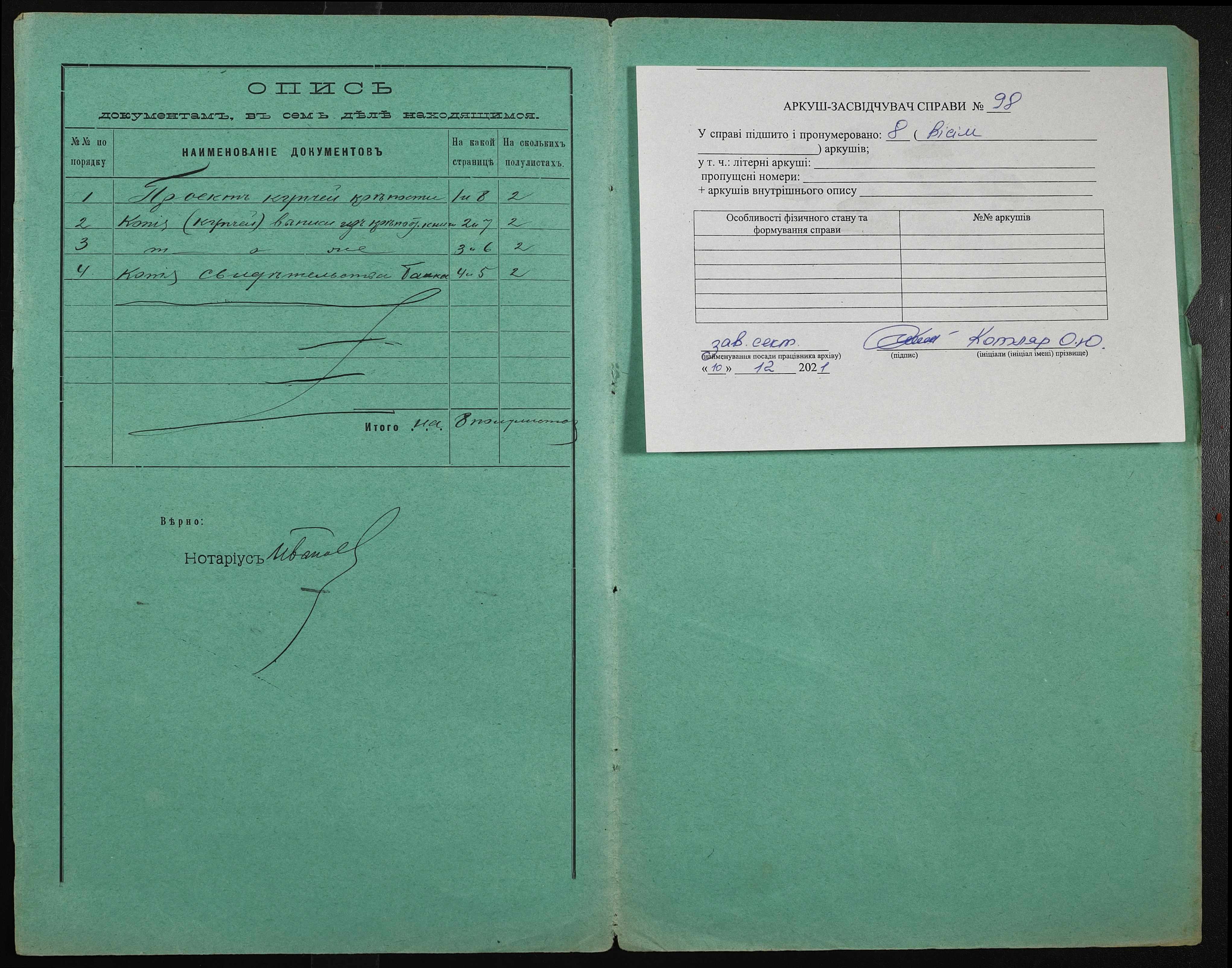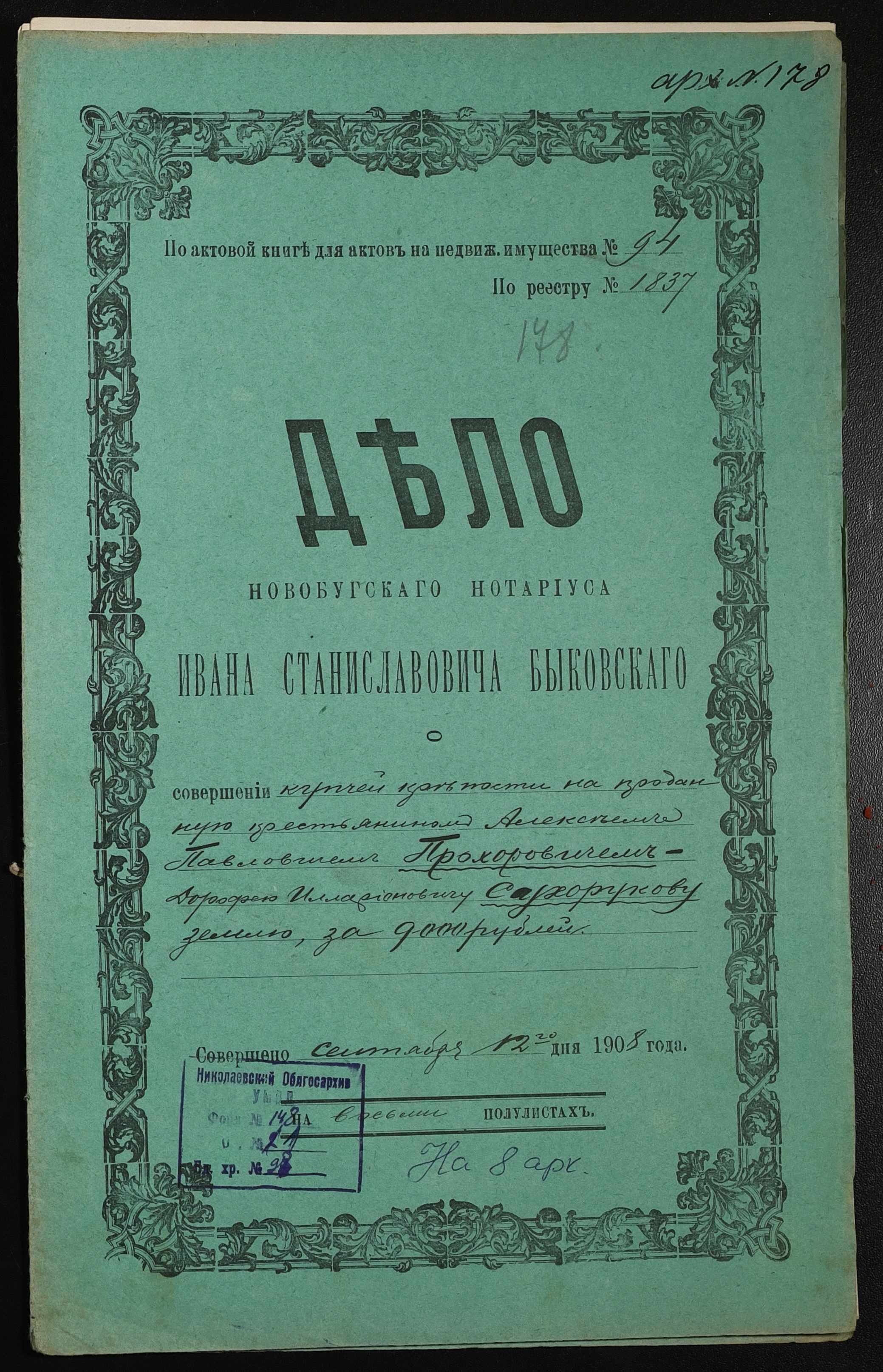 ◦ ◦ Фонд № 148 “Контора новобузького нотаріуса Биковського Івана Станіславовича”