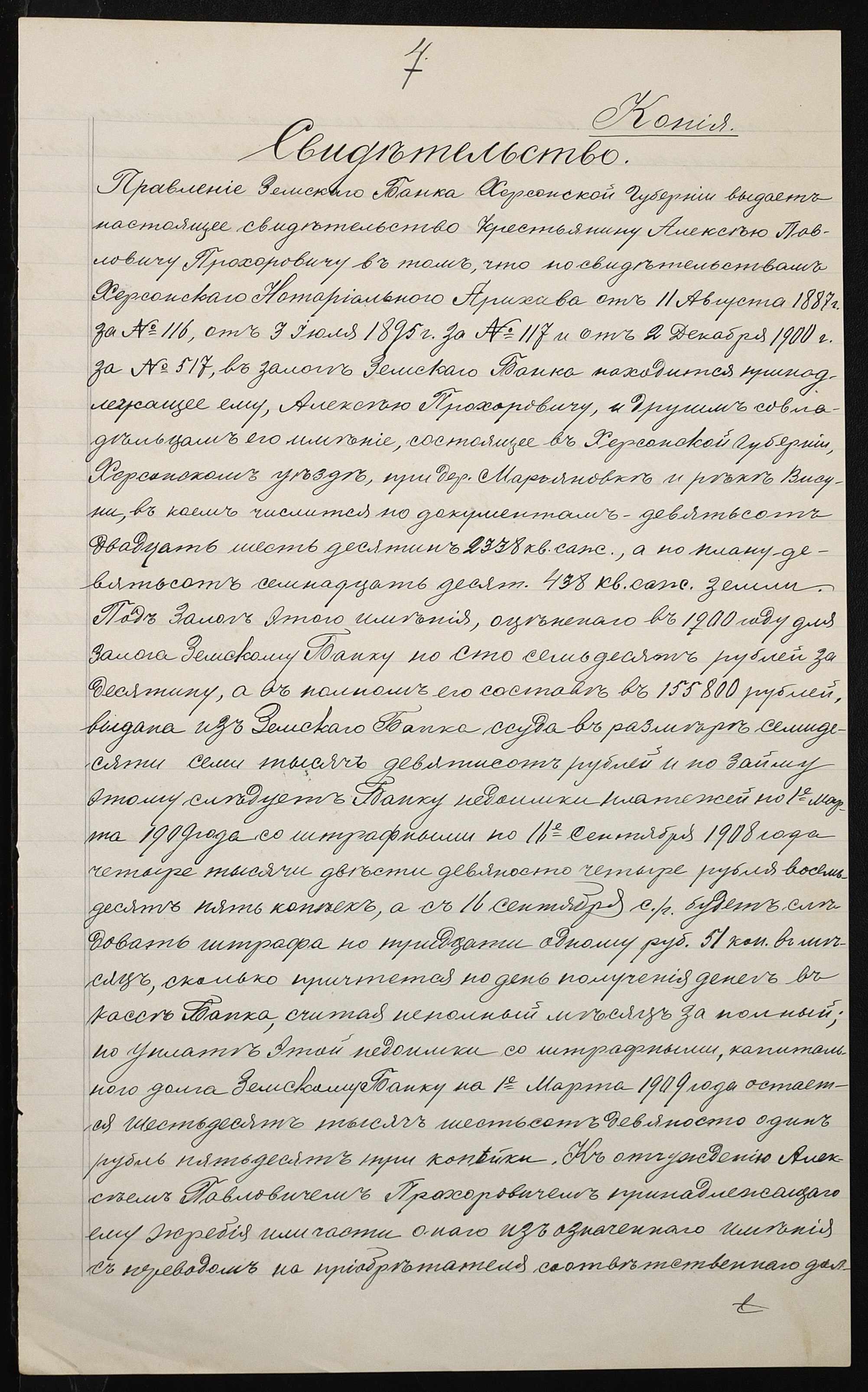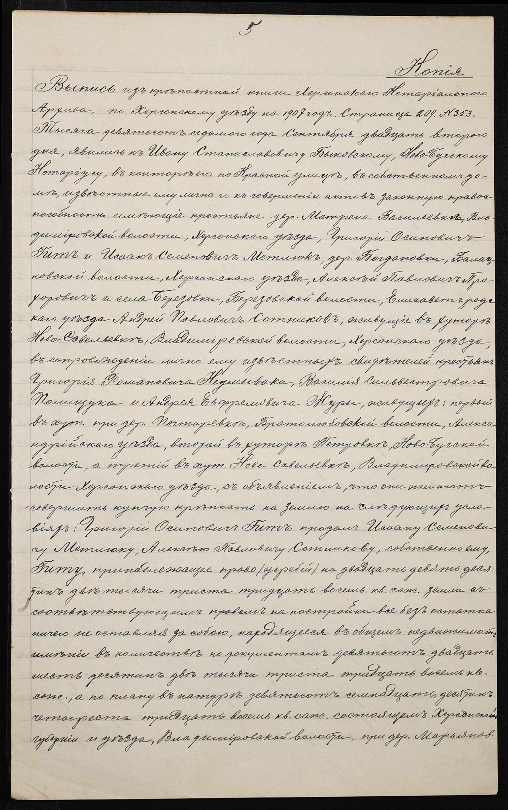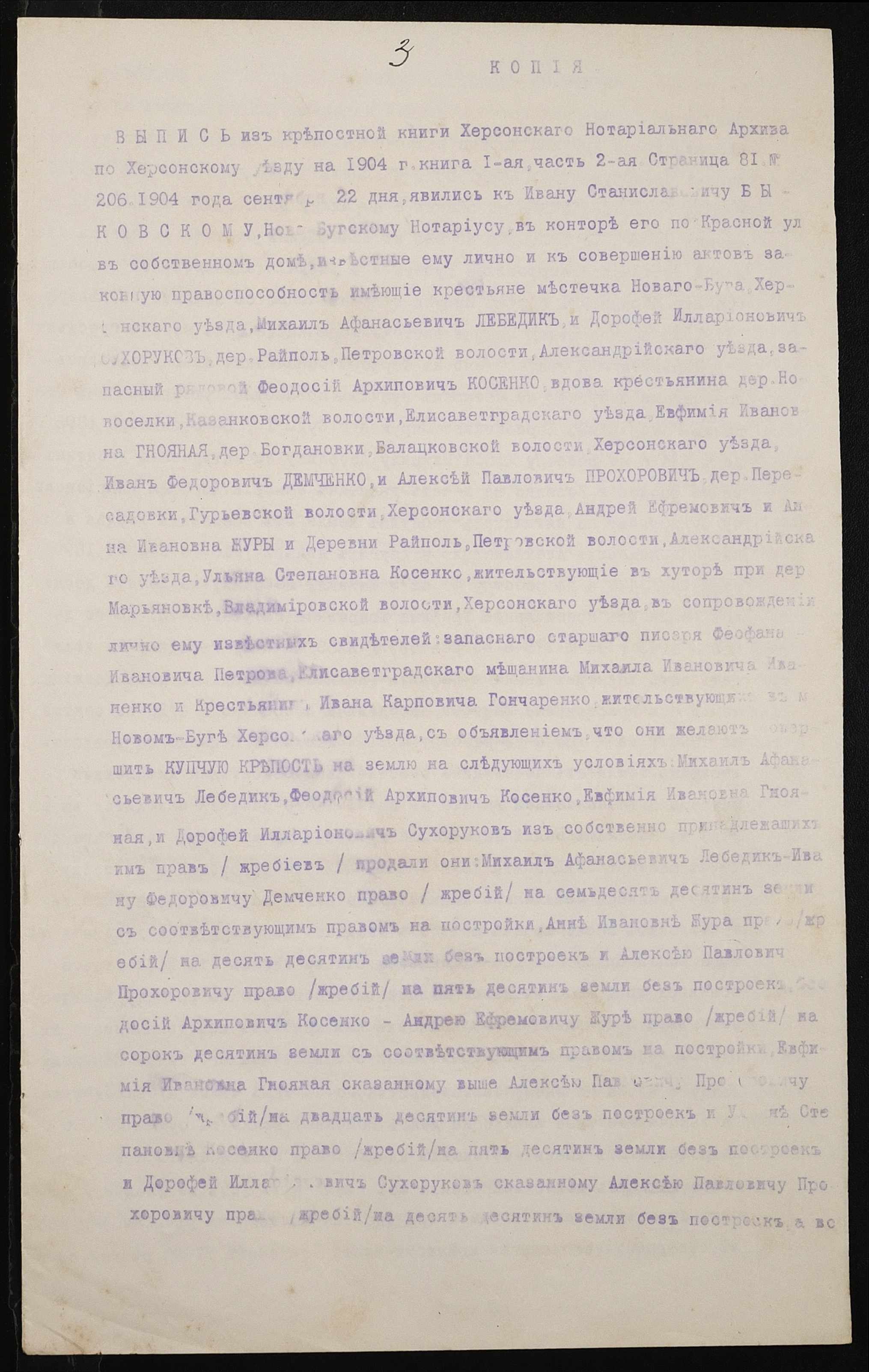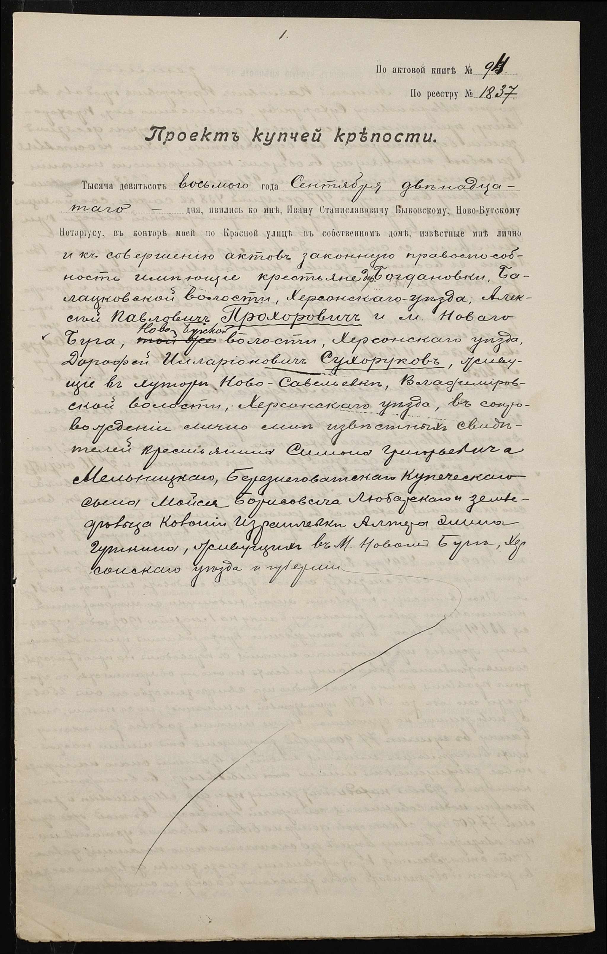 • • • • Справа № 98 “Справа про вчинення купчої про продаж землі селянином Прохоровичем Олексієм (Алексеем) Павловичем на користь селянина Сухорукова Дорофія Ілларіоновича (Дорофея Илларионовича)”
