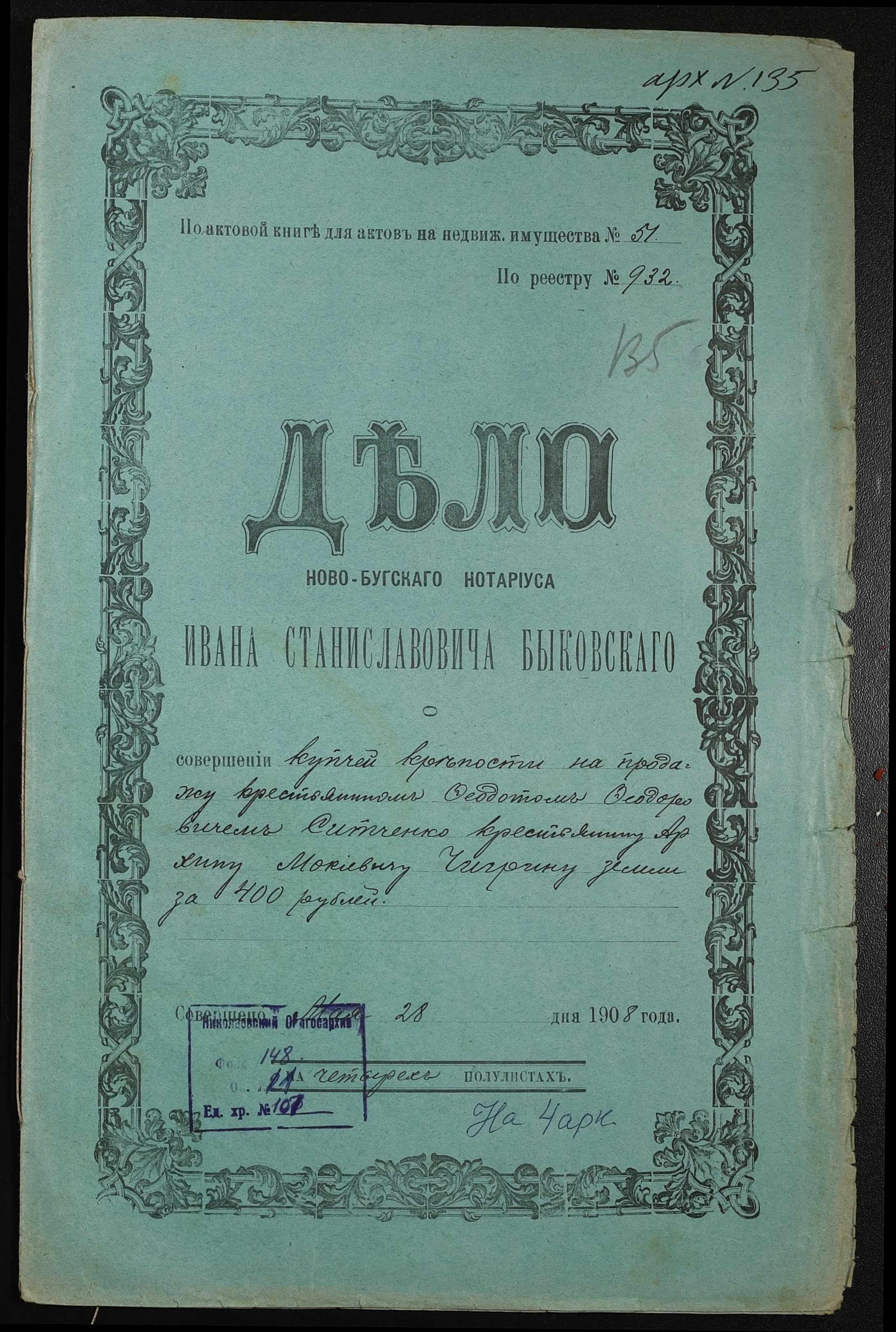 ◦ ◦ Фонд № 148 “Контора новобузького нотаріуса Биковського Івана Станіславовича”