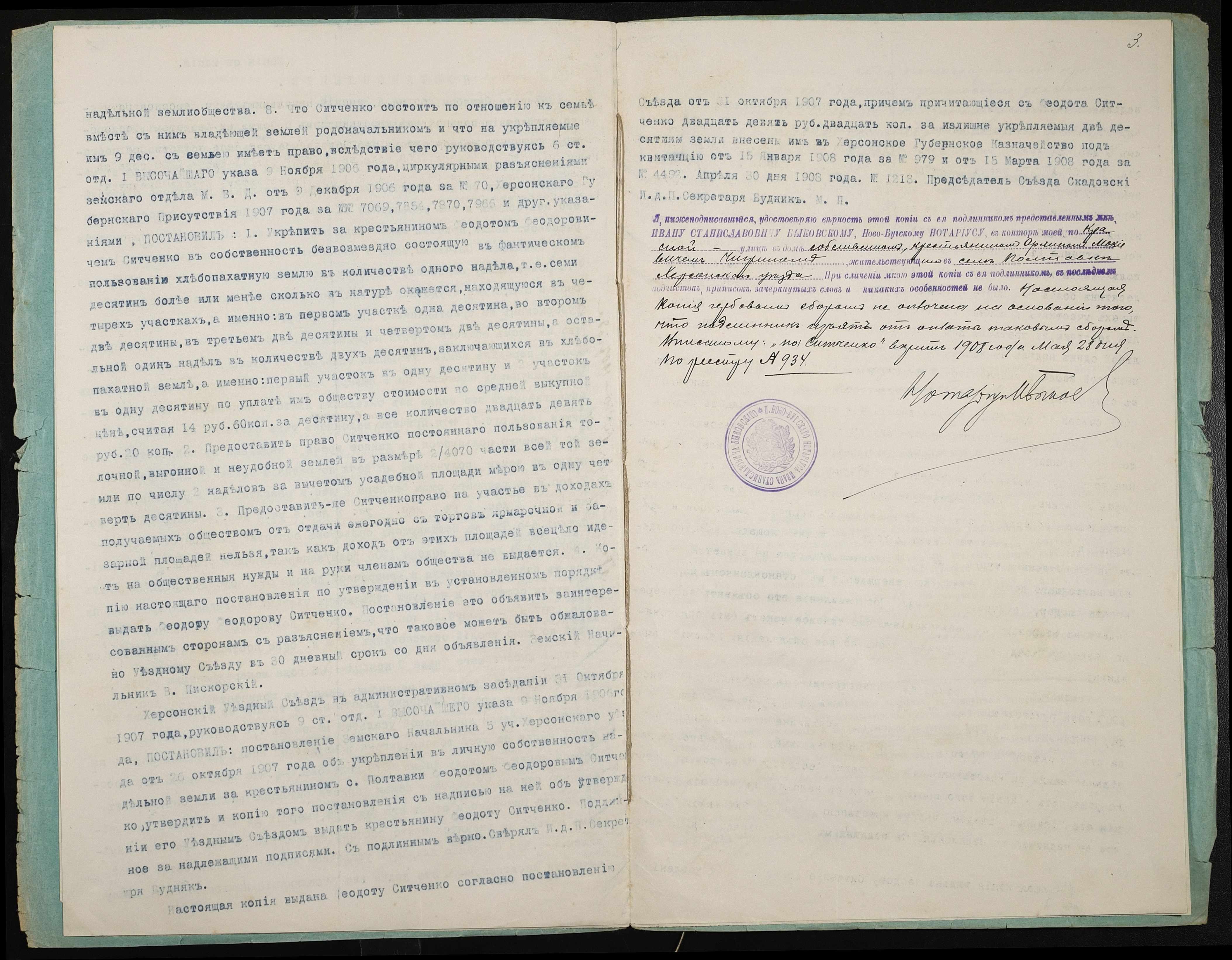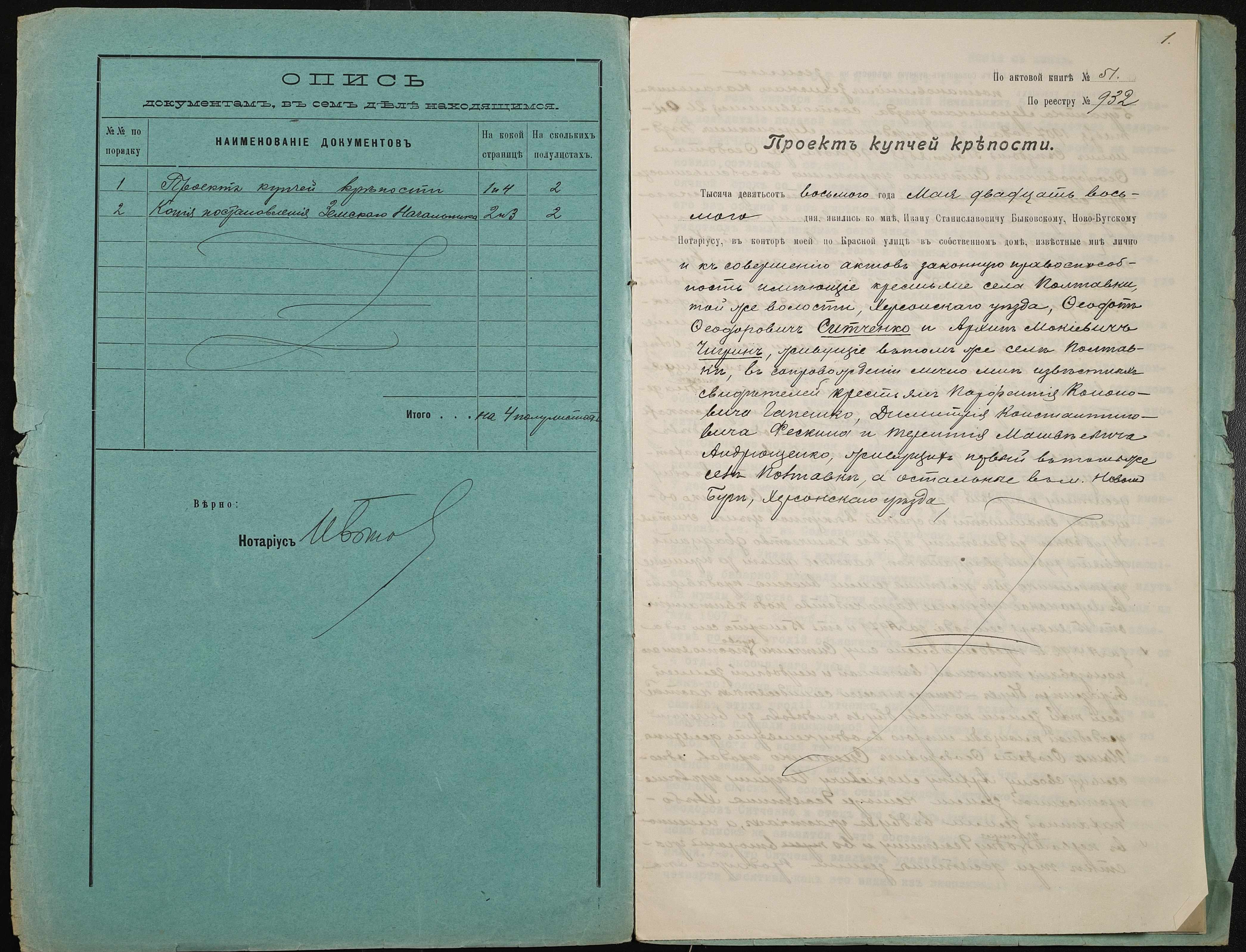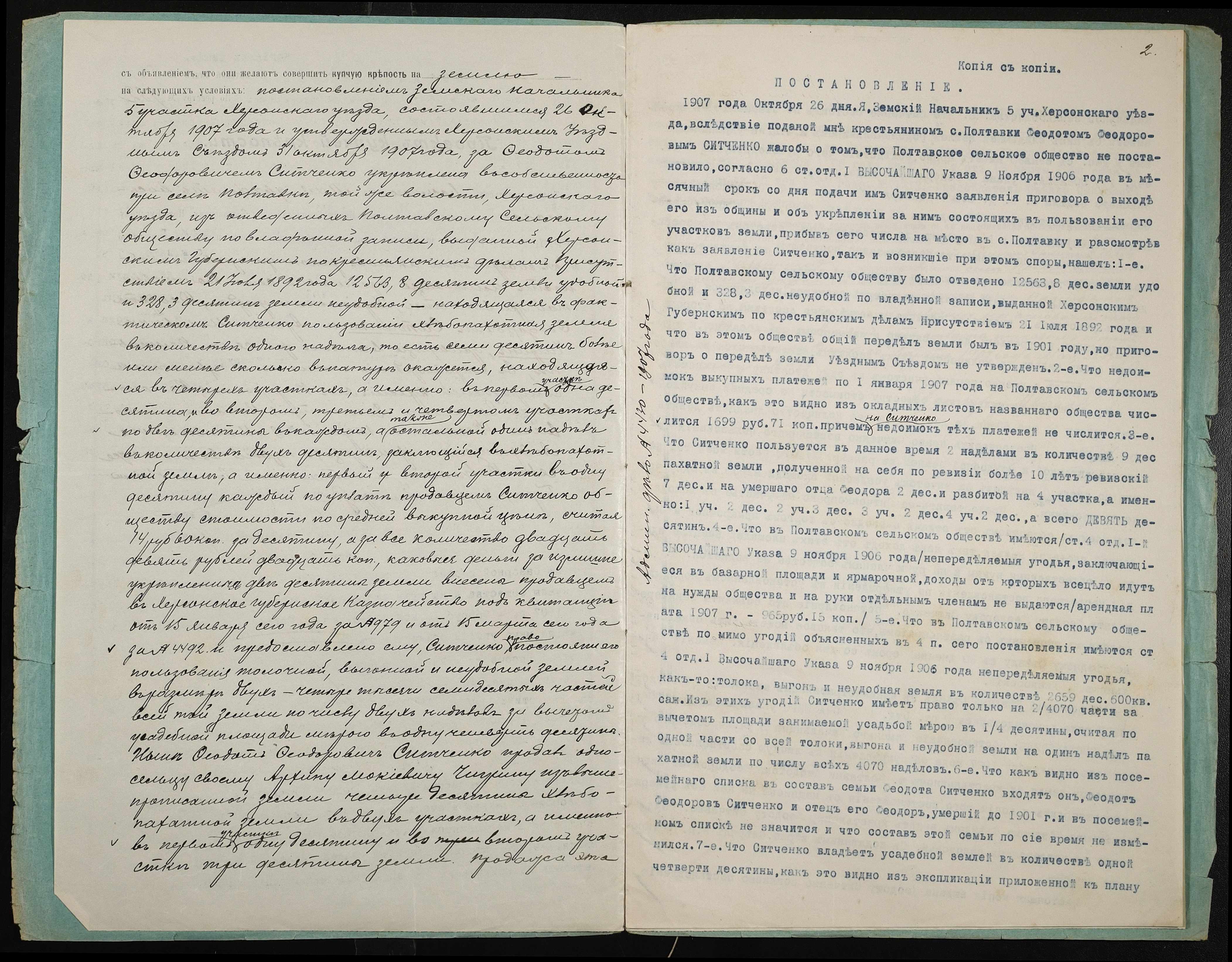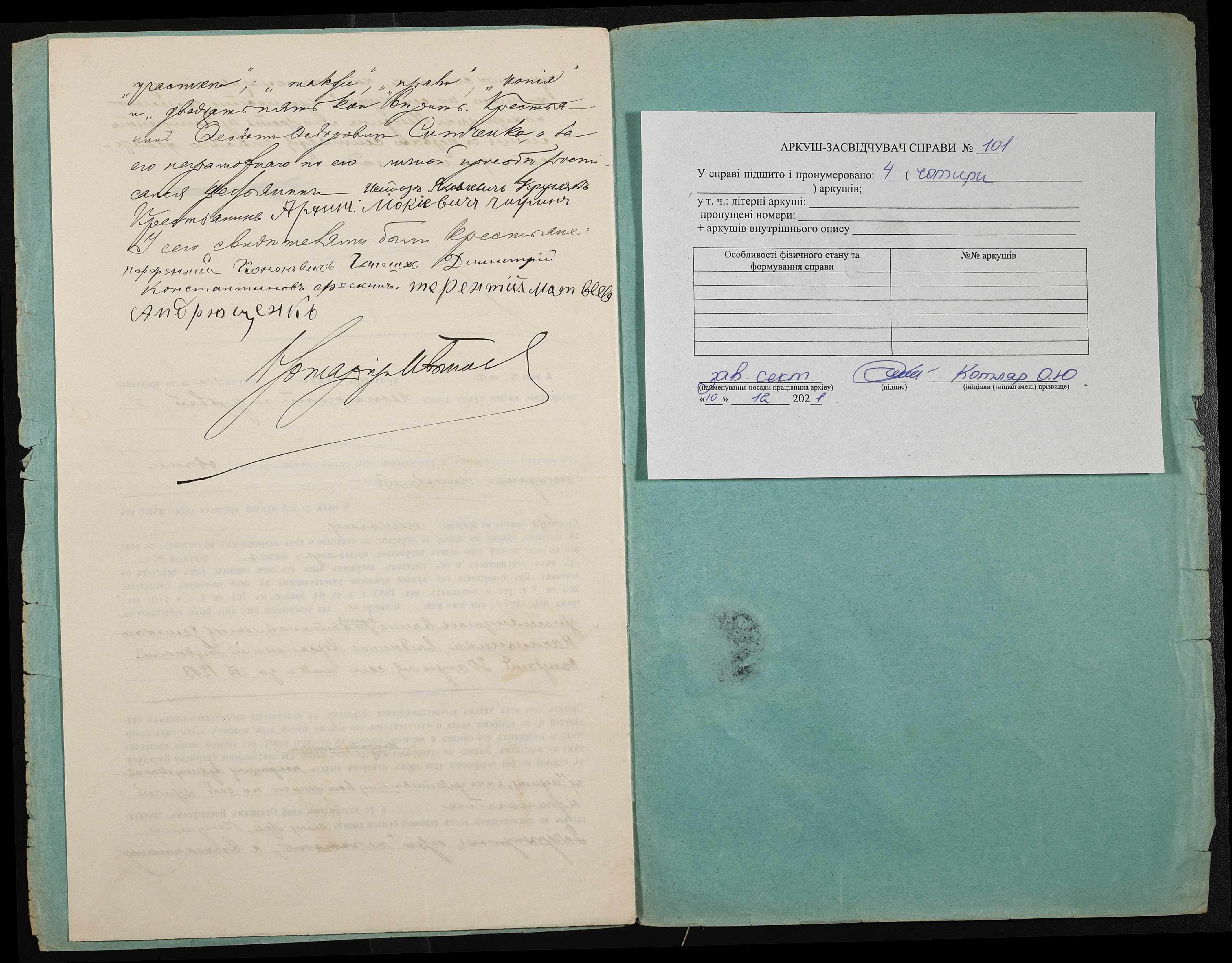 • • • • Справа № 101 “Справа про вчинення купчої про продаж землі селянином Ситченком (Ситченко) Федотом Федоровичем на користь селянина Чигрина Архипа Мокійовича (Мокиевича)”