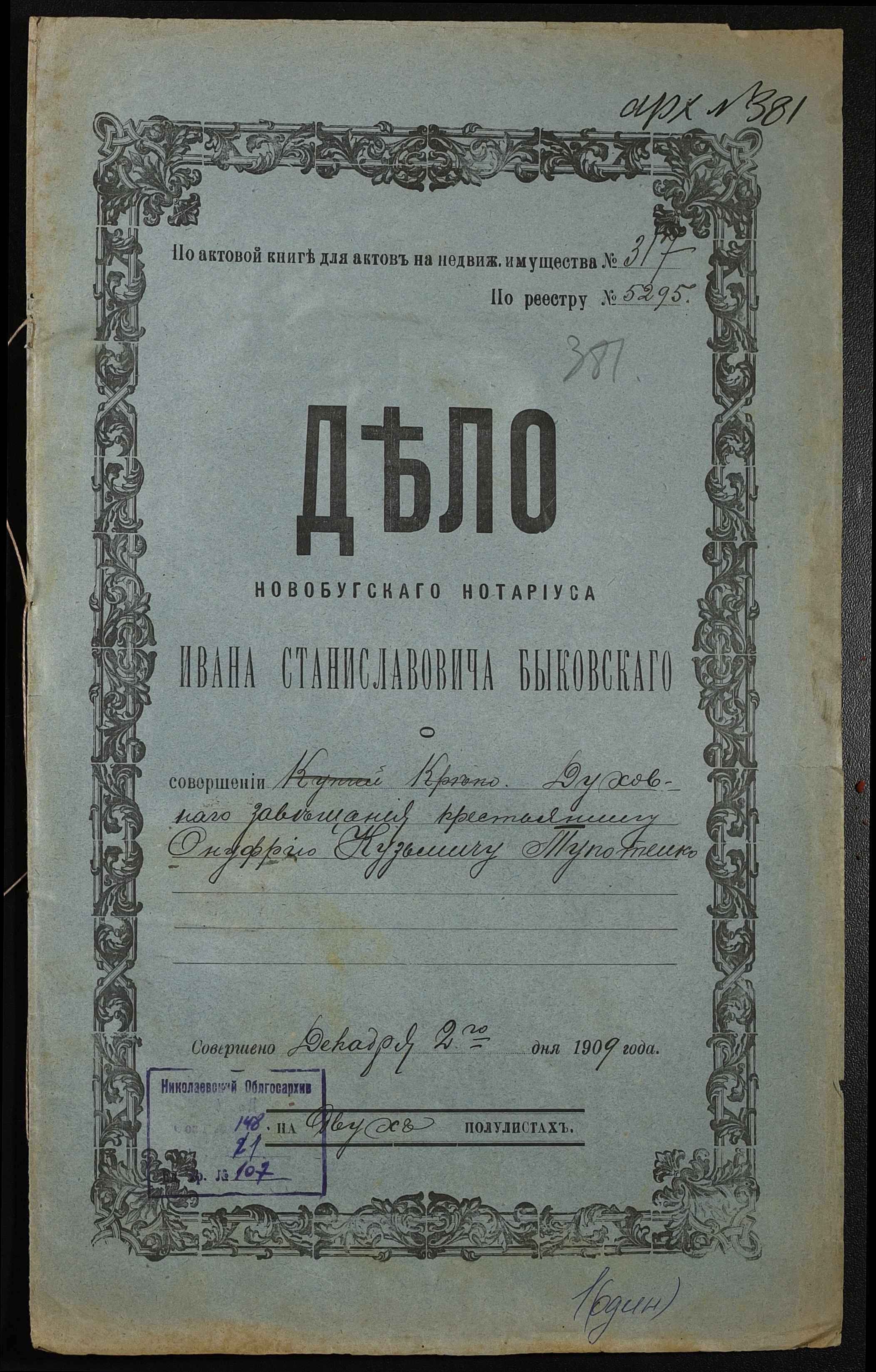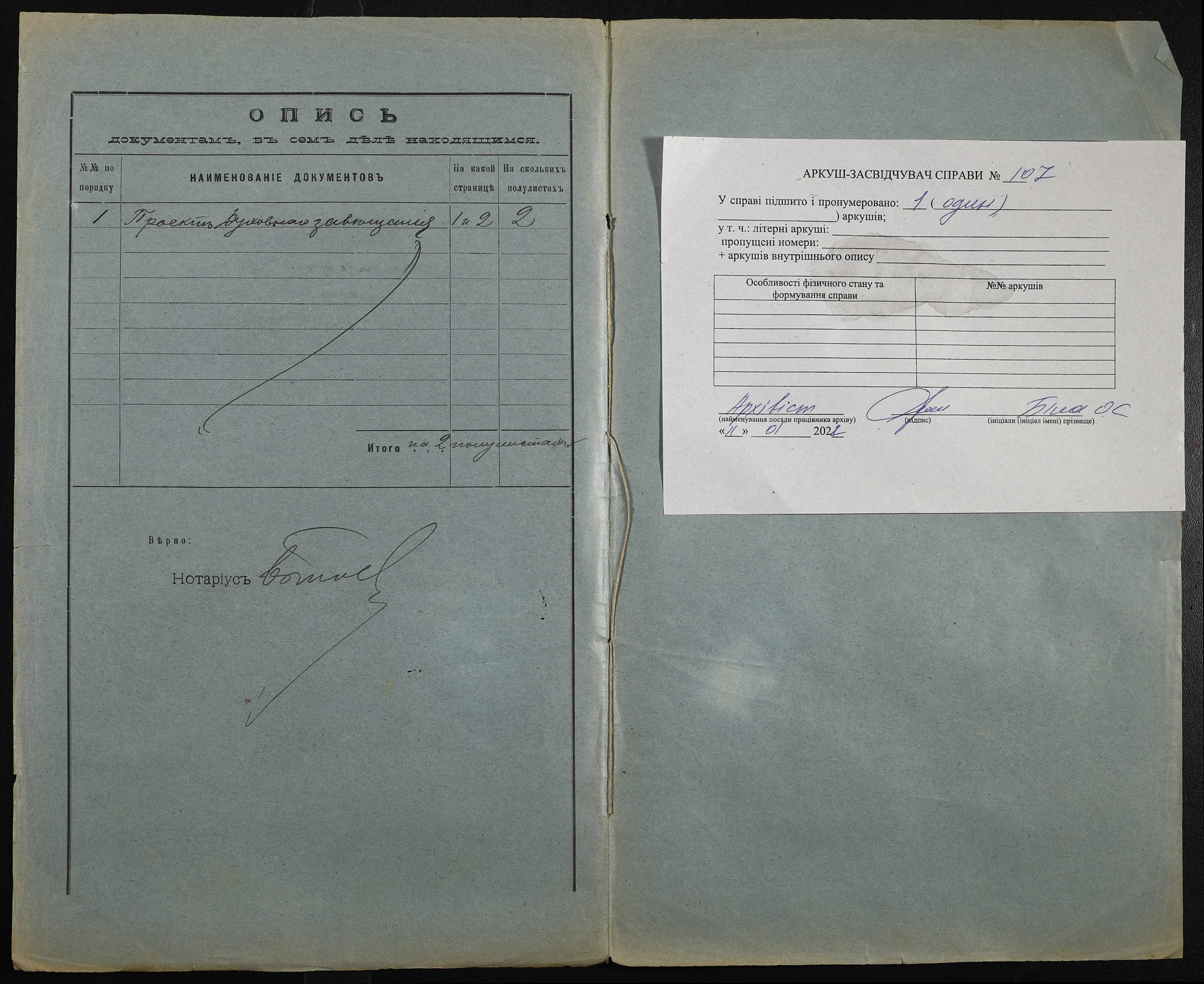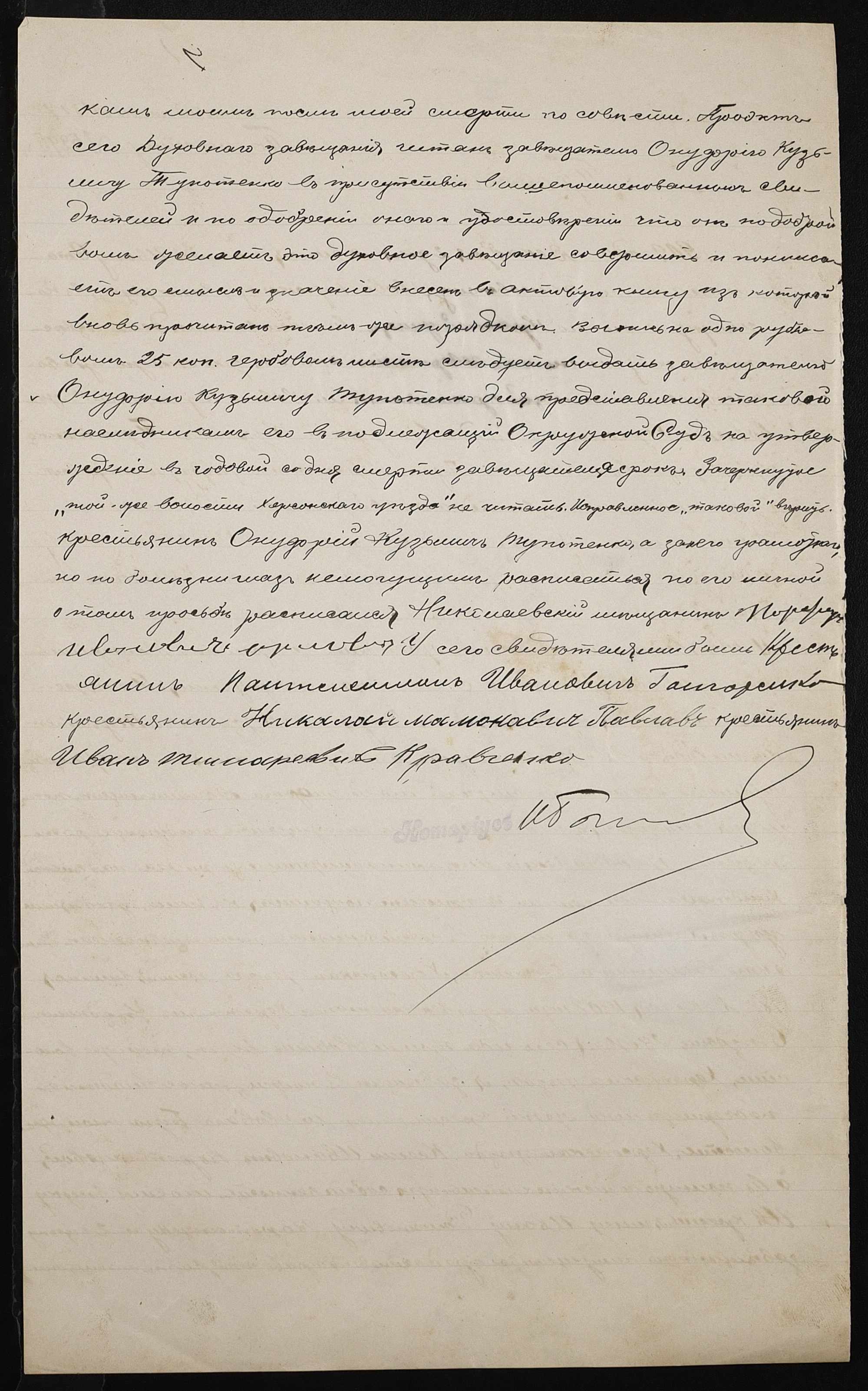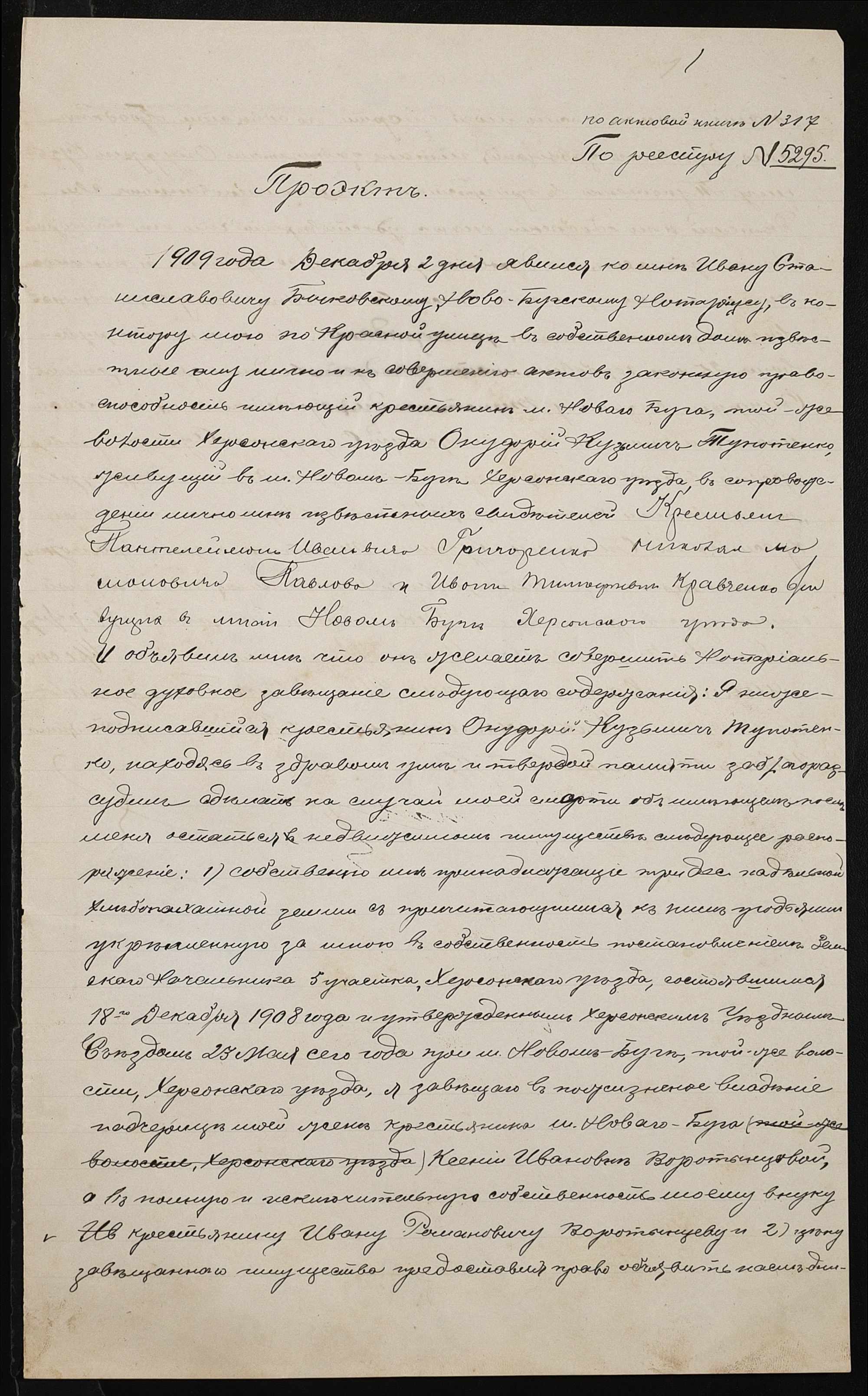 • • • • Справа № 107 “Проєкт духівниці Тупотенка Онуфрія (Тупотенко Онуфрия) Кузьмича”