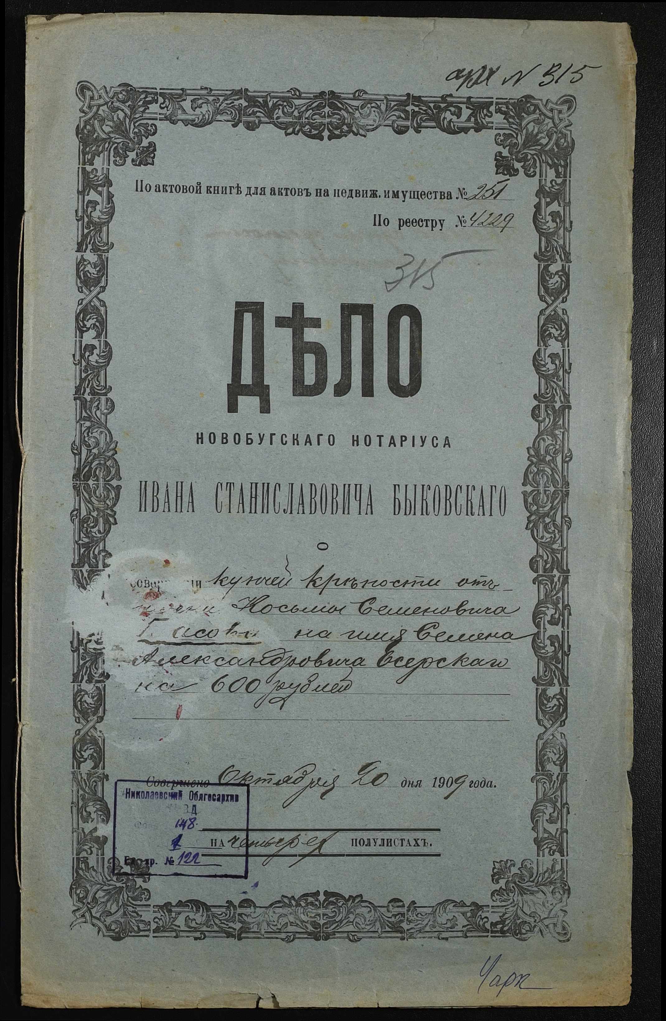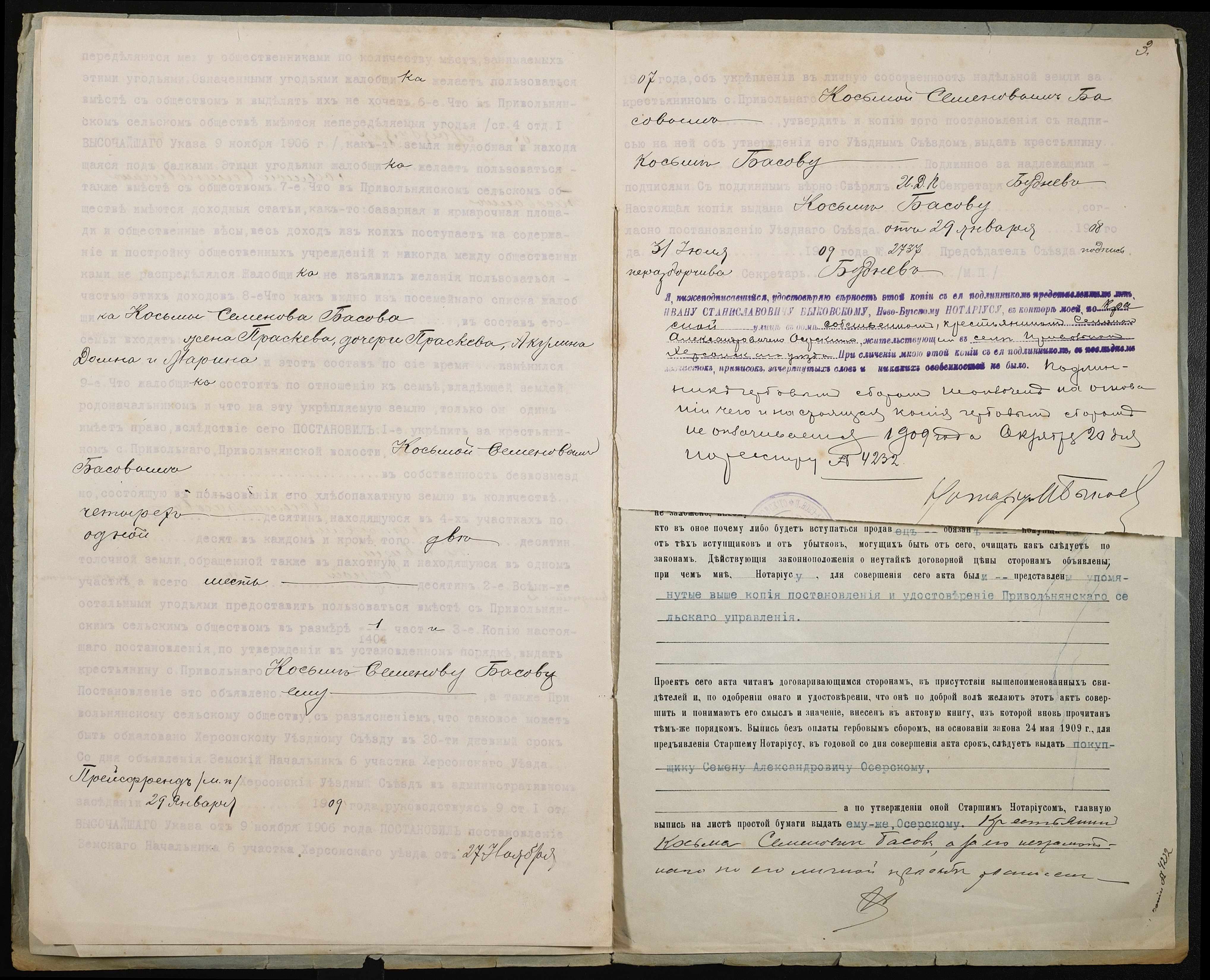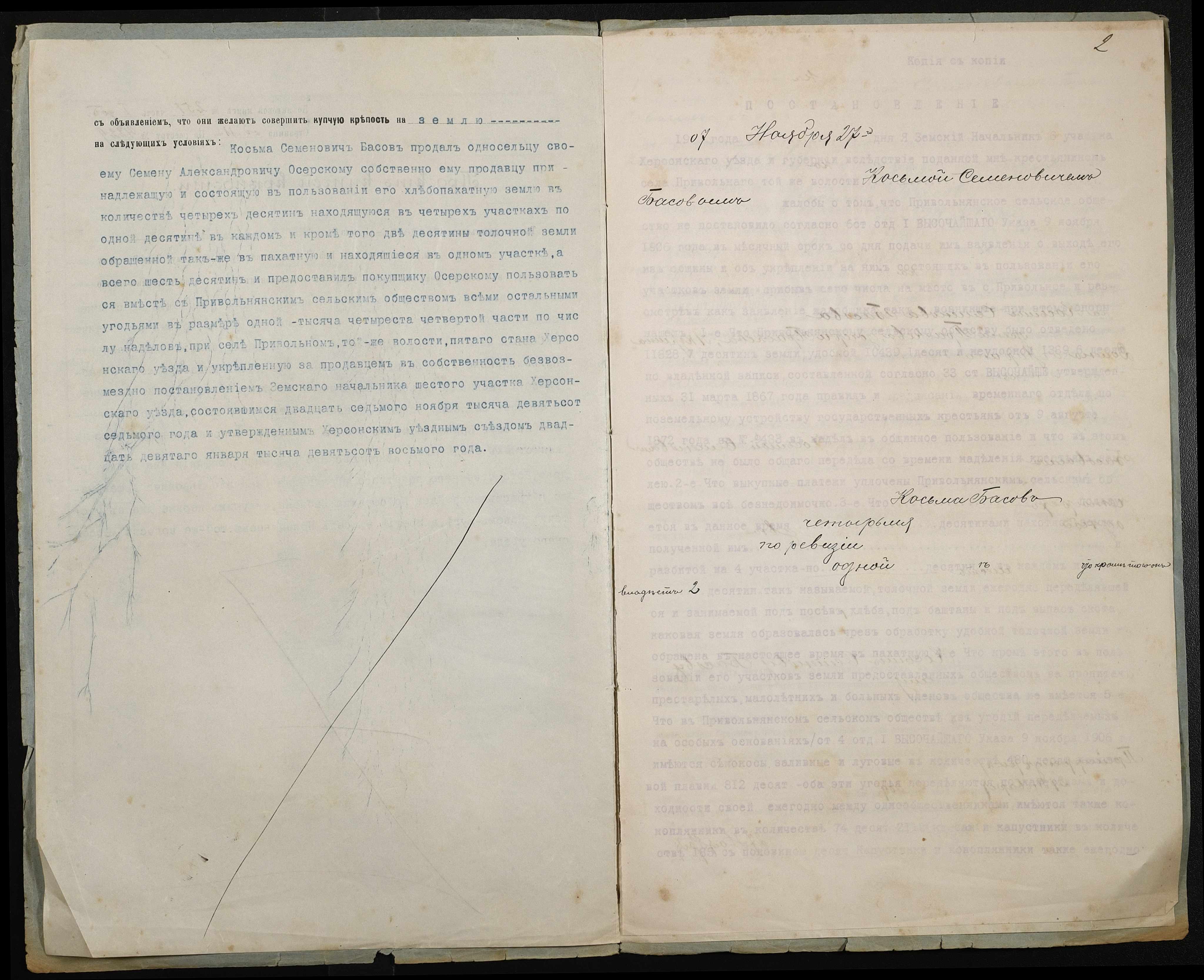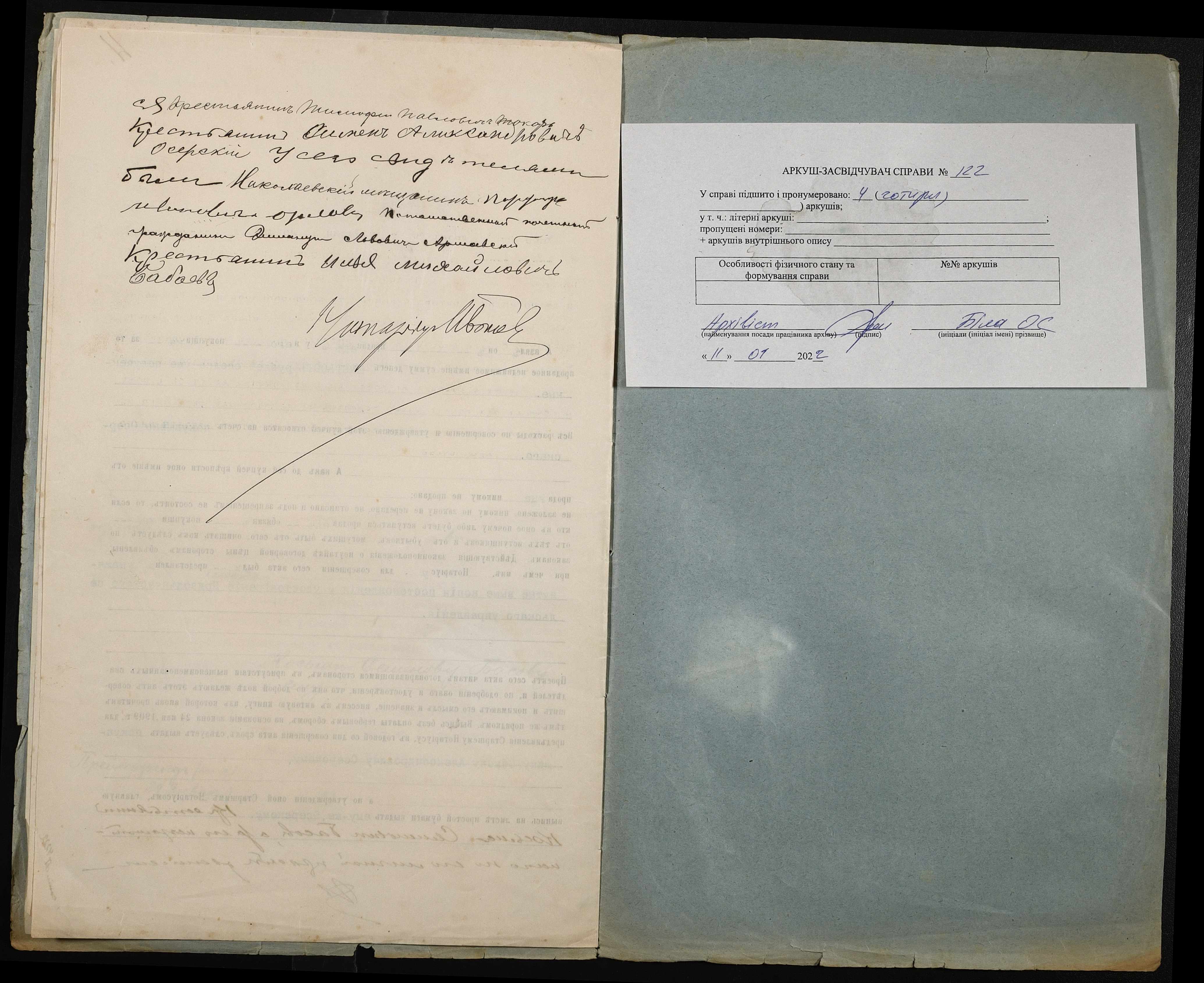 • • • • Справа № 122 “Справа про вчинення купчої про продаж землі селянином Базовим (Базовым) Кузьмою Семеновичем на користь селянина Осерського (Осерского) Семена Олександровича (Александровича)”
