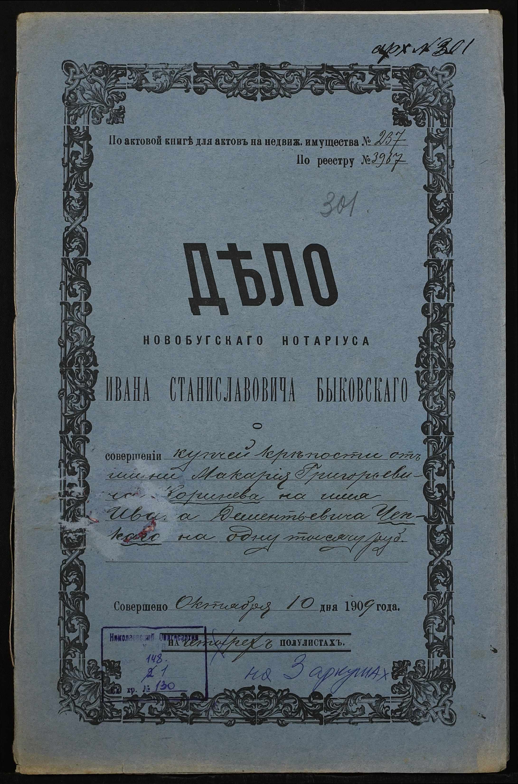 ◦ ◦ Фонд № 148 “Контора новобузького нотаріуса Биковського Івана Станіславовича”