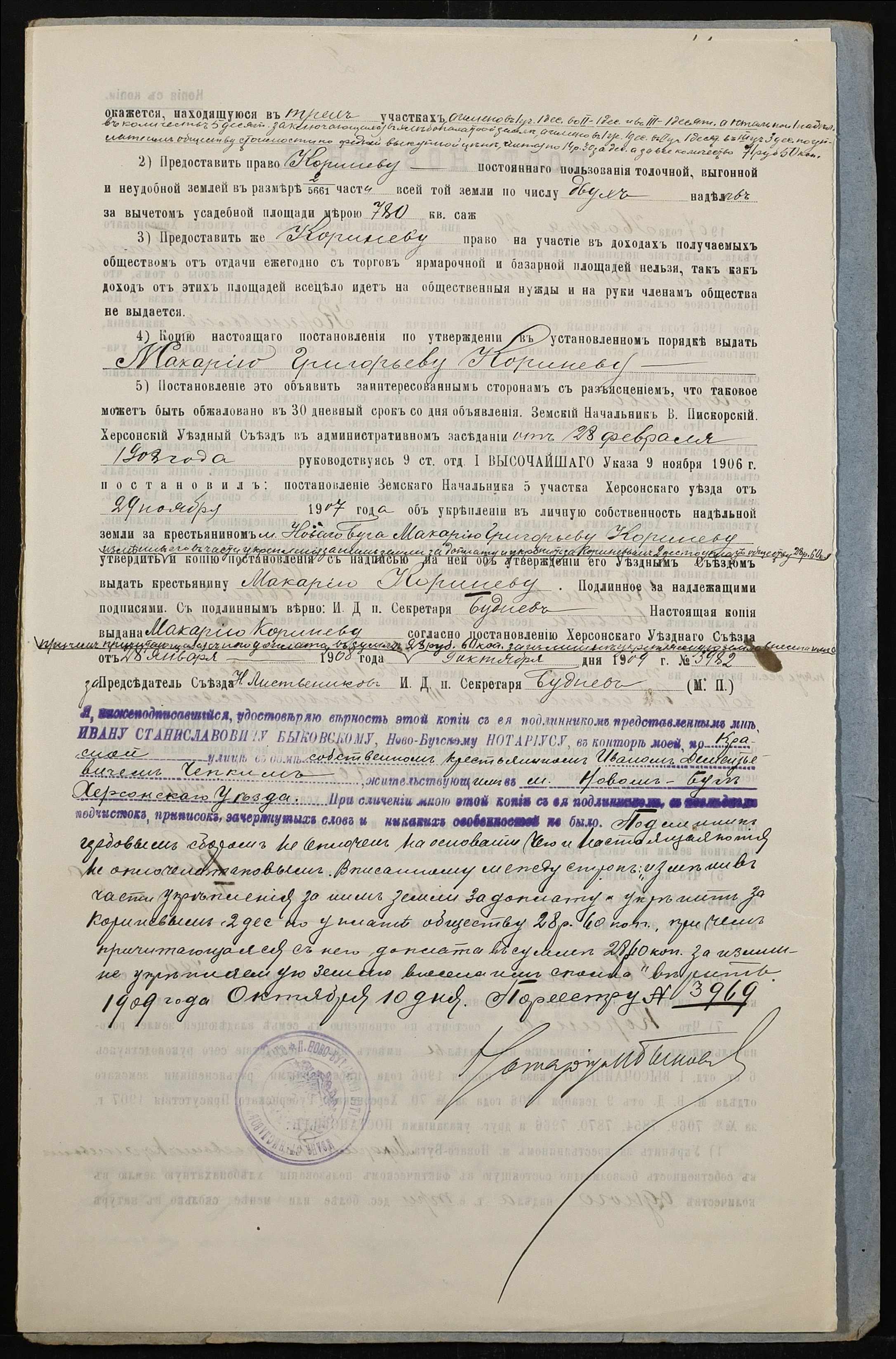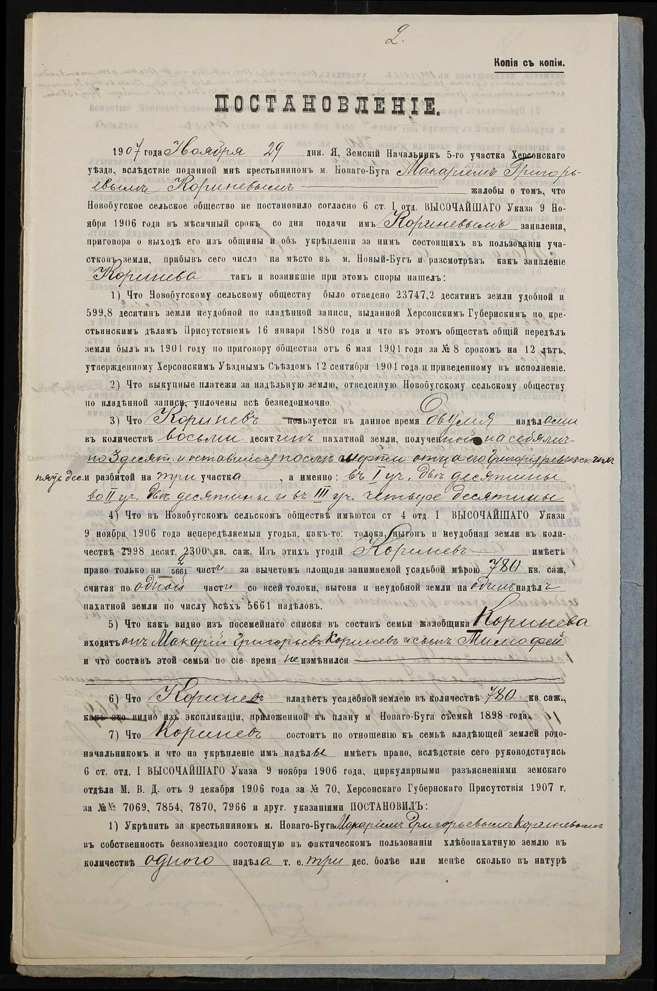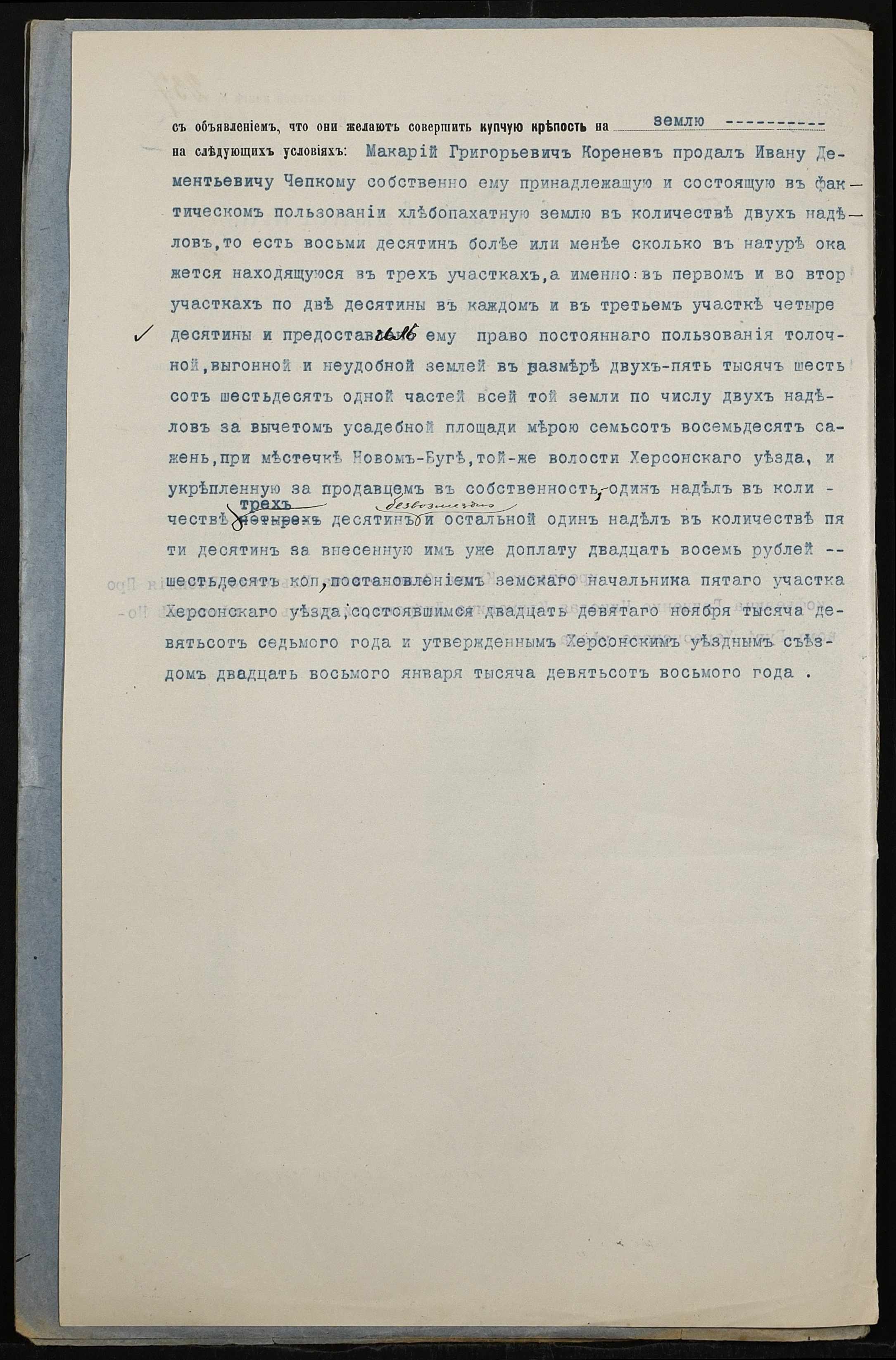 • • • • Справа № 130 “Справа про вчинення купчої про продаж землі селянином Корінєвим Макарієм Григоровичем (Кориневым Макарием Григорьевичем) на користь селянина Чепкого Івана Дементійовича (Ивана Деменьевича)”