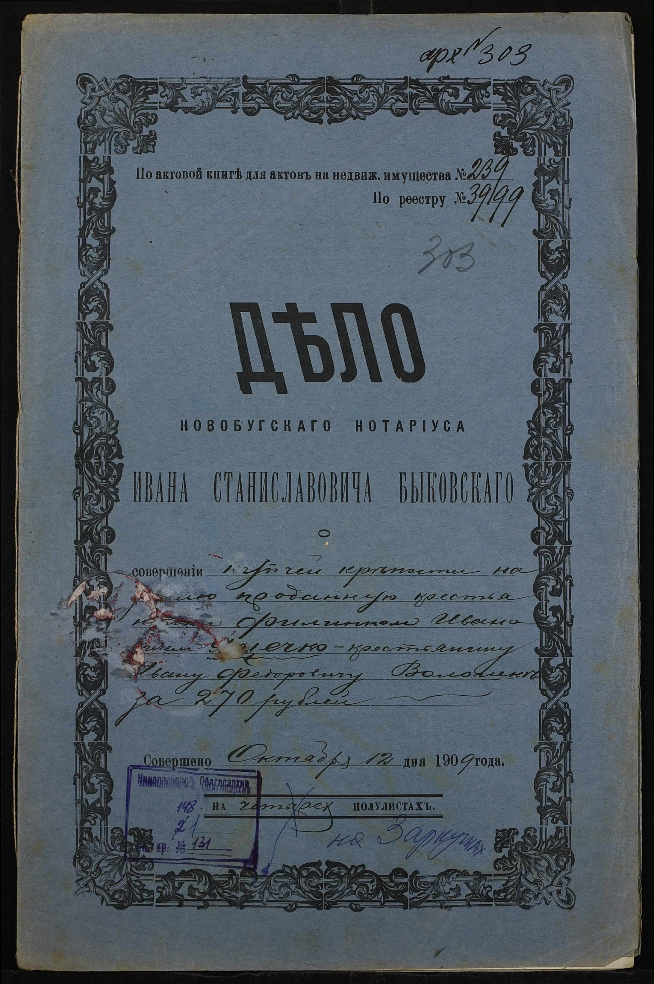 ◦ ◦ Фонд № 148 “Контора новобузького нотаріуса Биковського Івана Станіславовича”