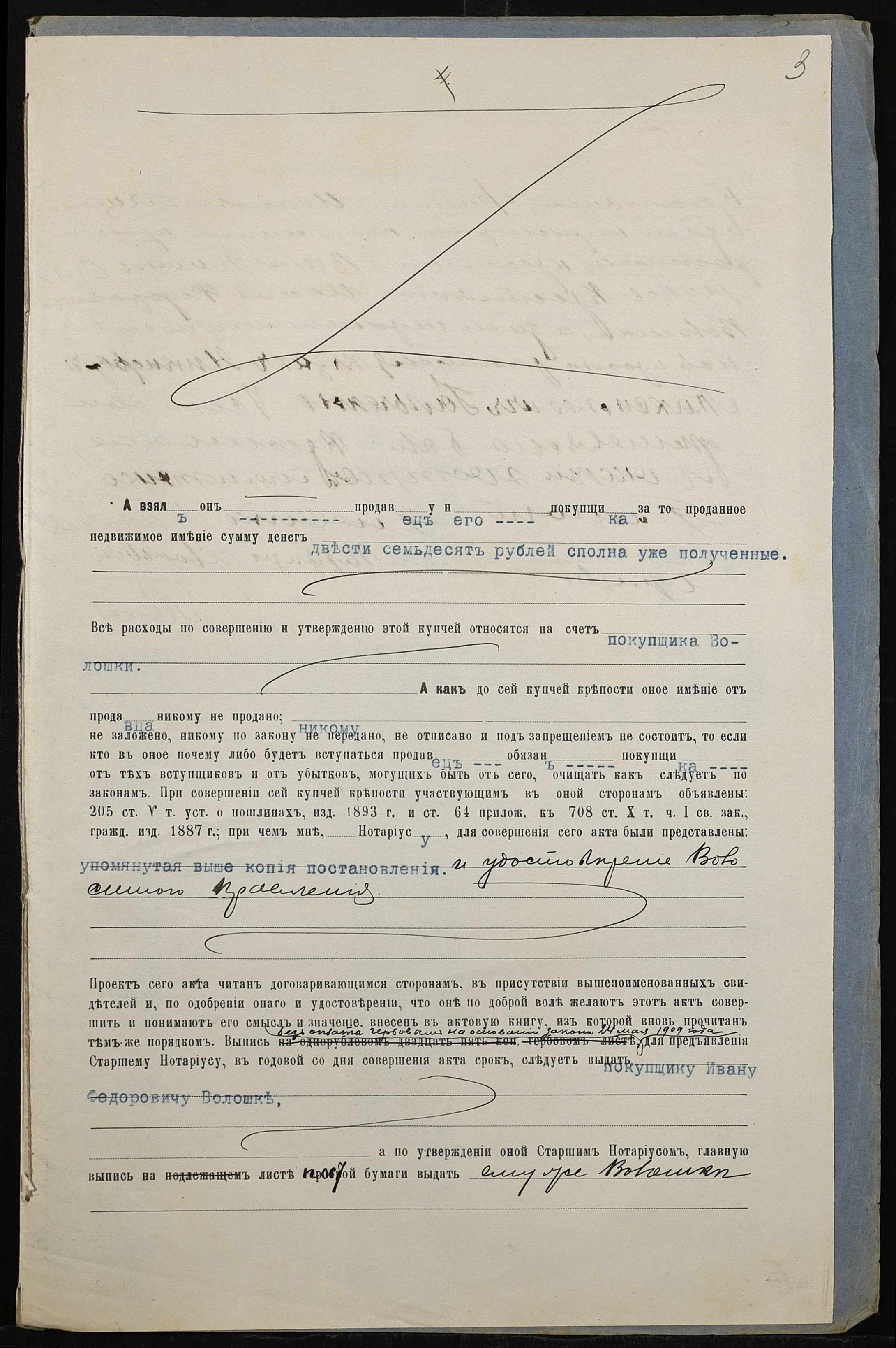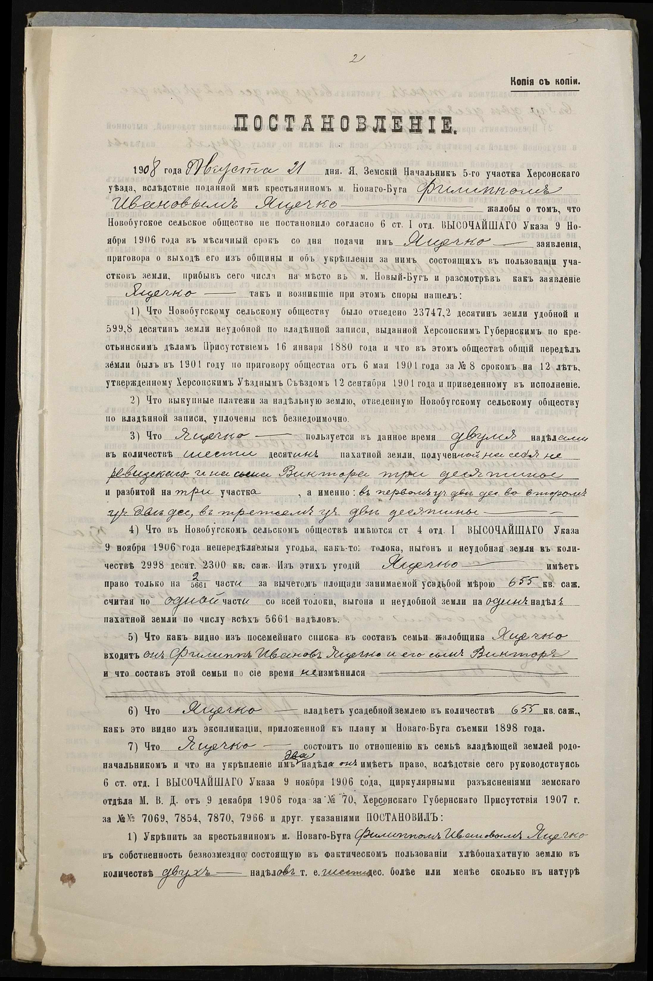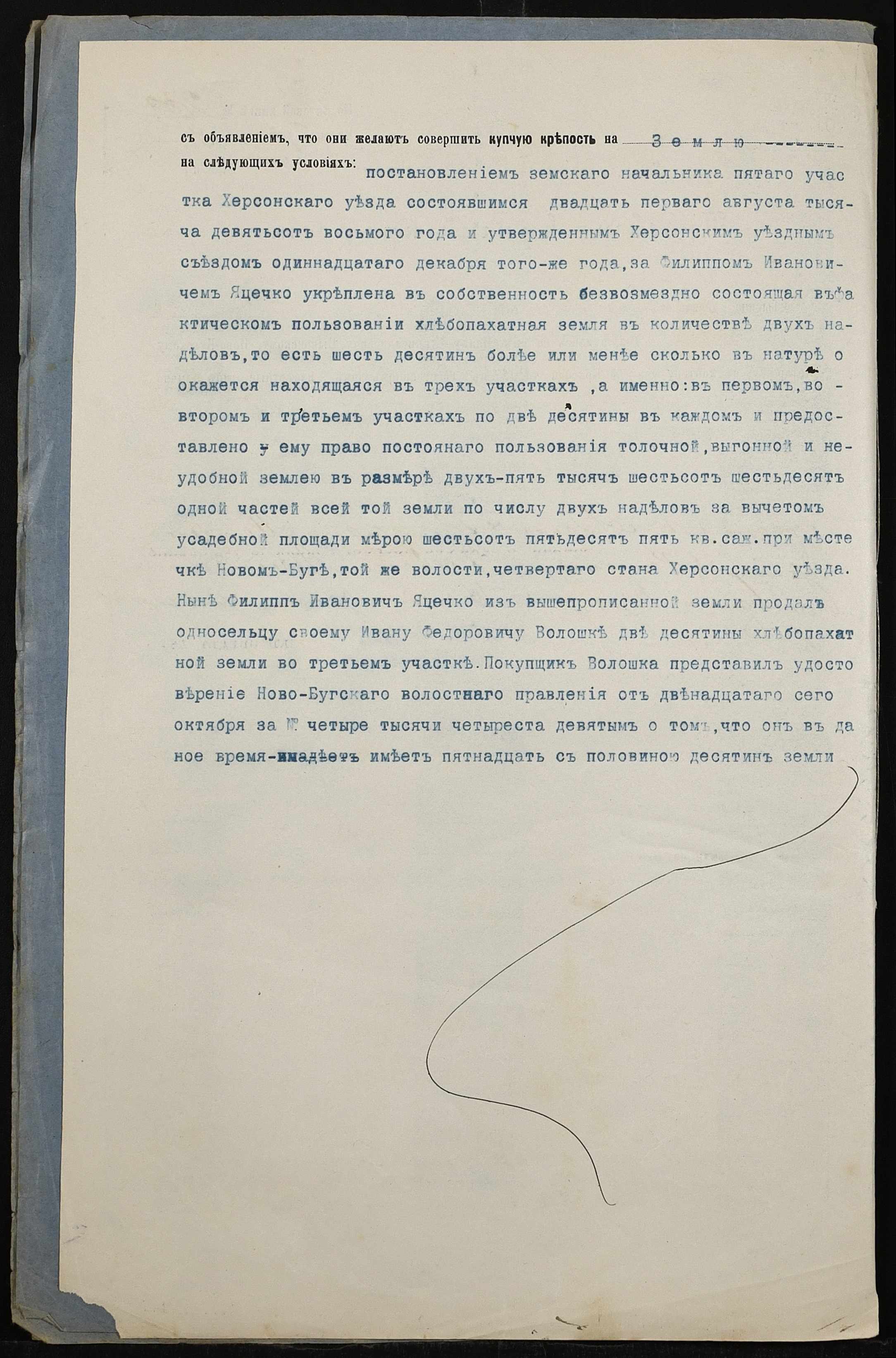 • • • • Справа № 131 “Справа про вчинення купчої про продаж землі селянином Яцечком Пилипом Івановичем (Яцечко Филиппом Ивановичем) на користь селянина Волошина Івана (Ивана) Федоровича”