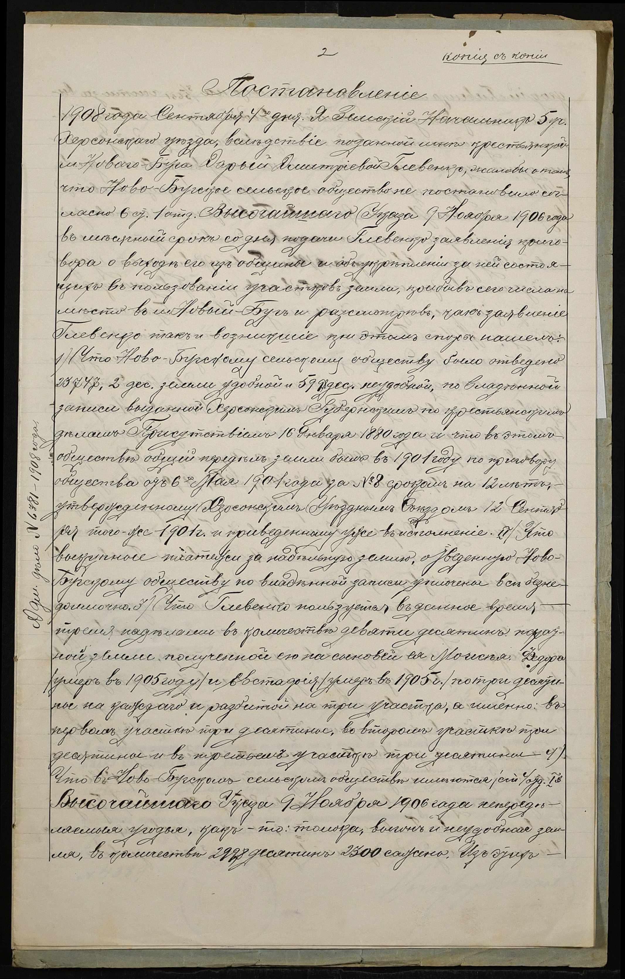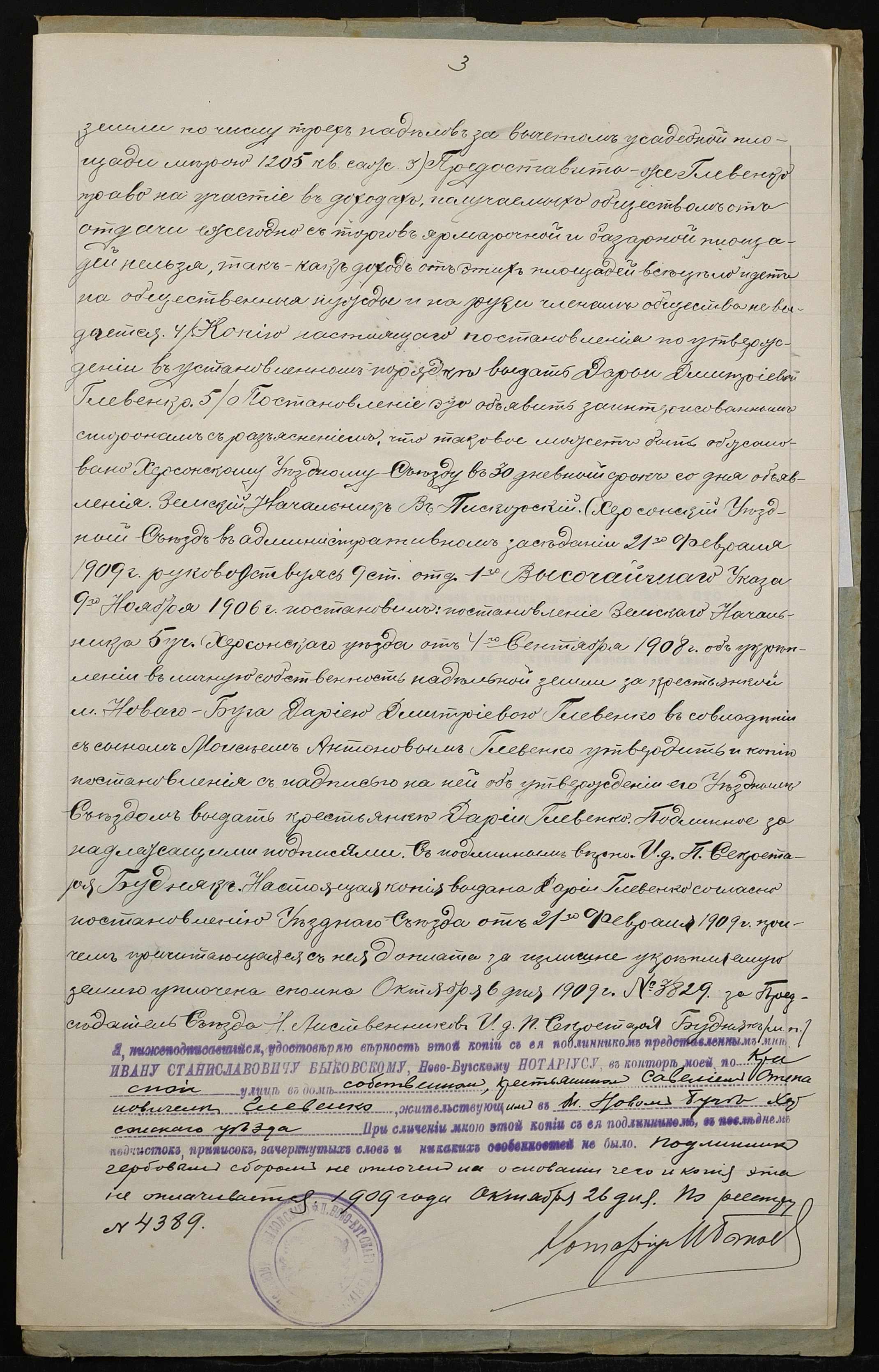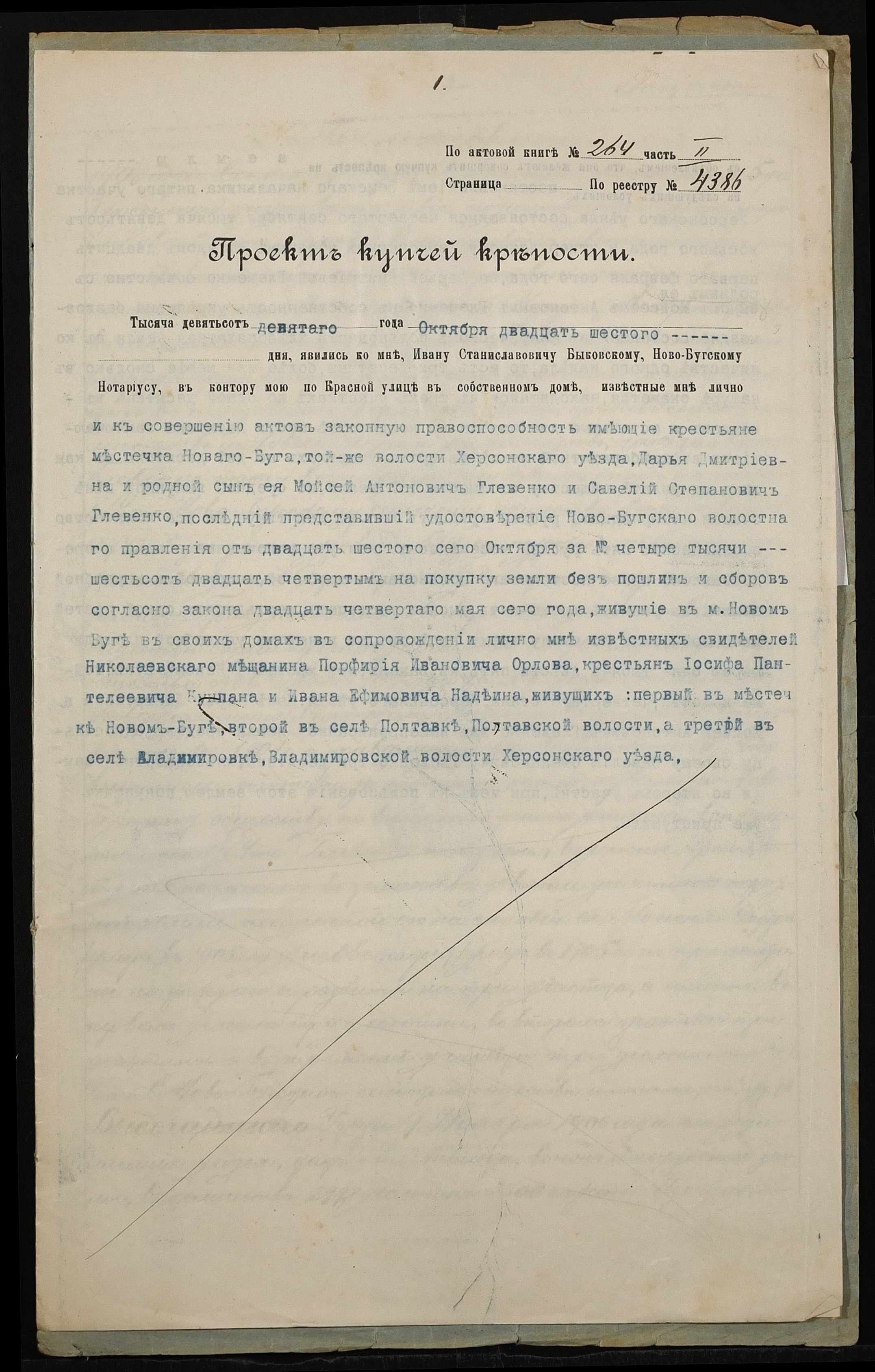 • • • • Справа № 138 “Справа про вчинення купчої про продаж землі селянами Глевенко Дарією Дмитрівною (Дарией Дмитриевной) і Глевенком Мойсеєм Антоновичем (Глевенко Моисеем Антоновичем) на користь селянина Глевенка Савелія (Глевенко Савелия) Степановича”