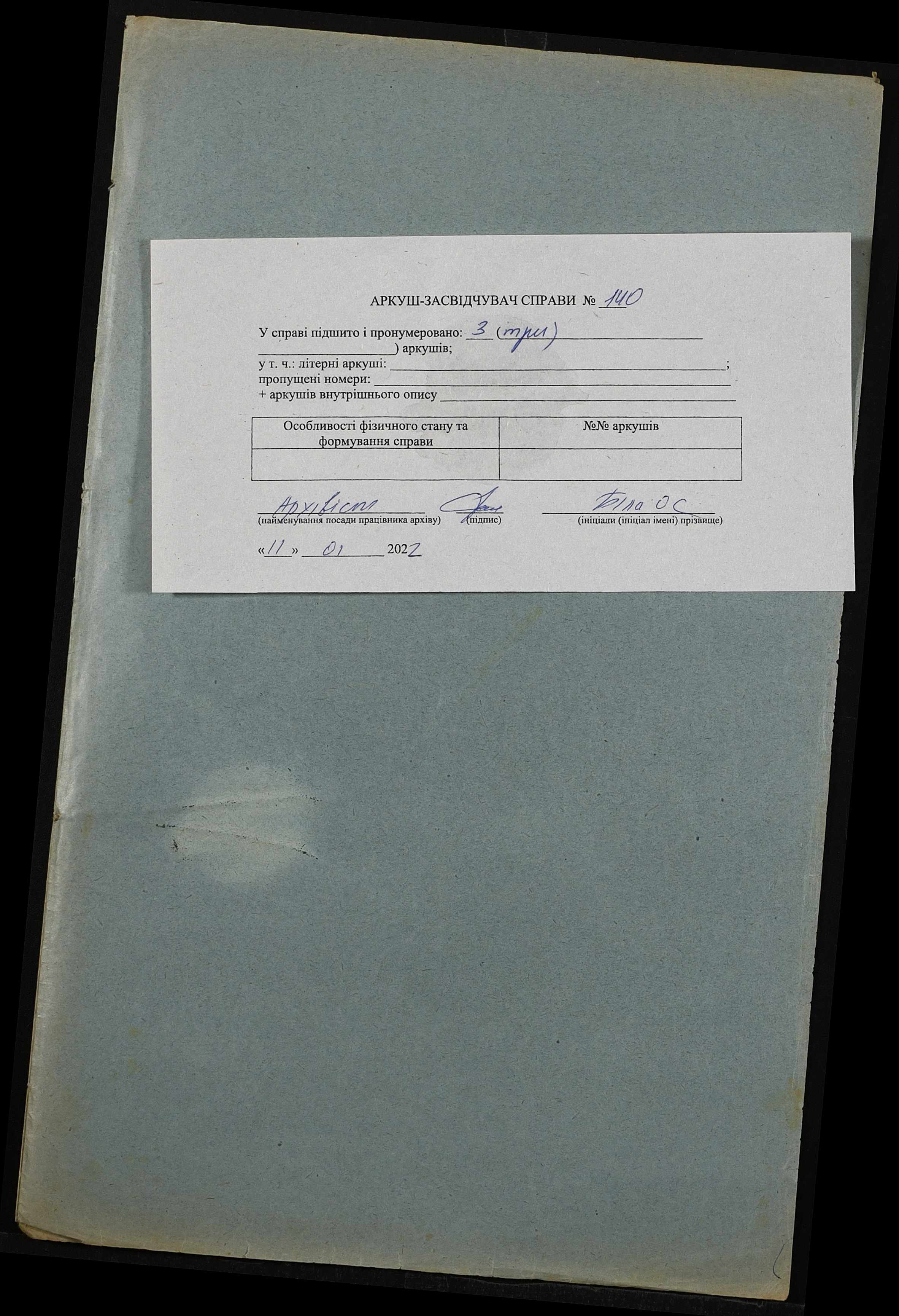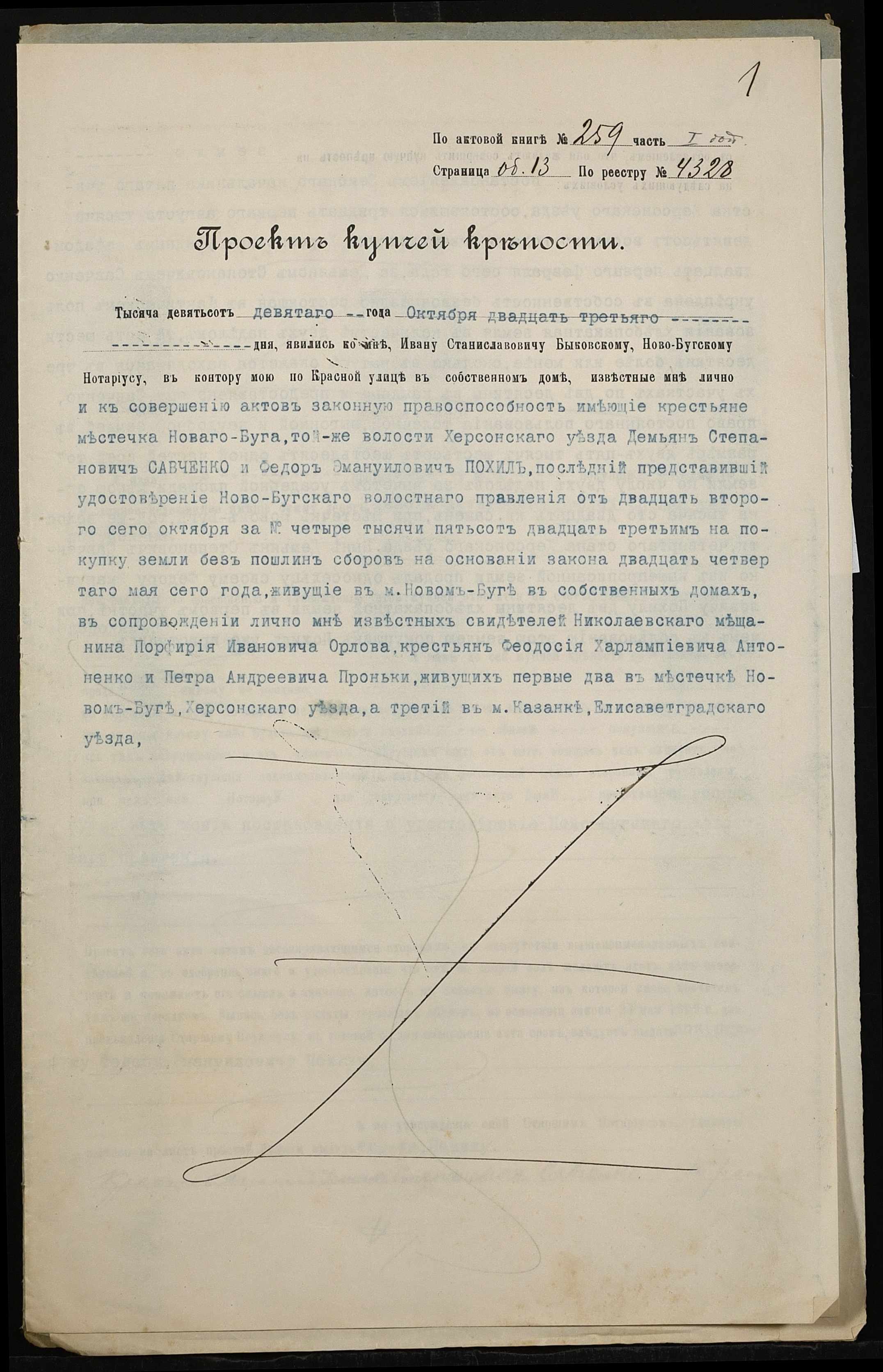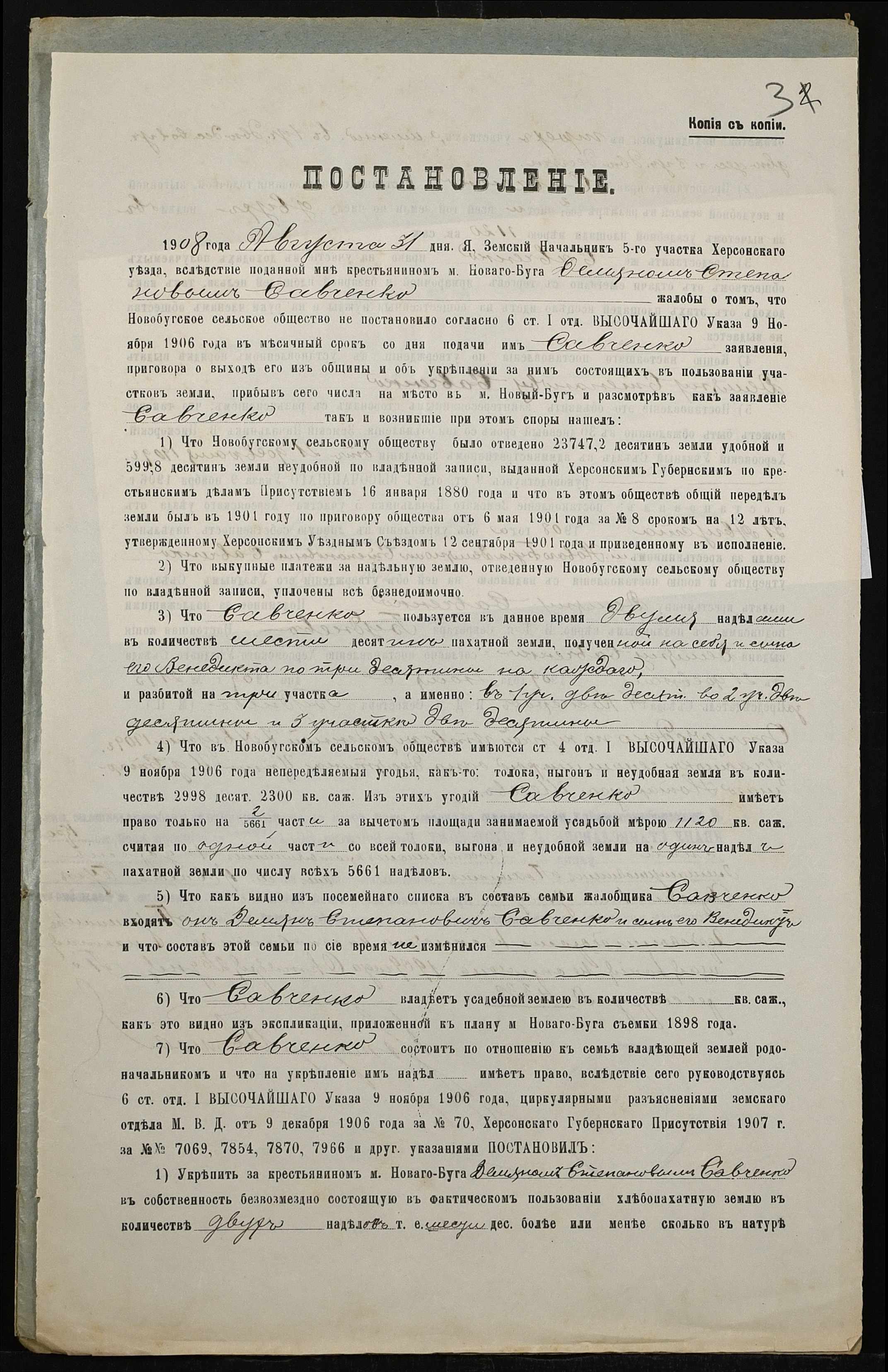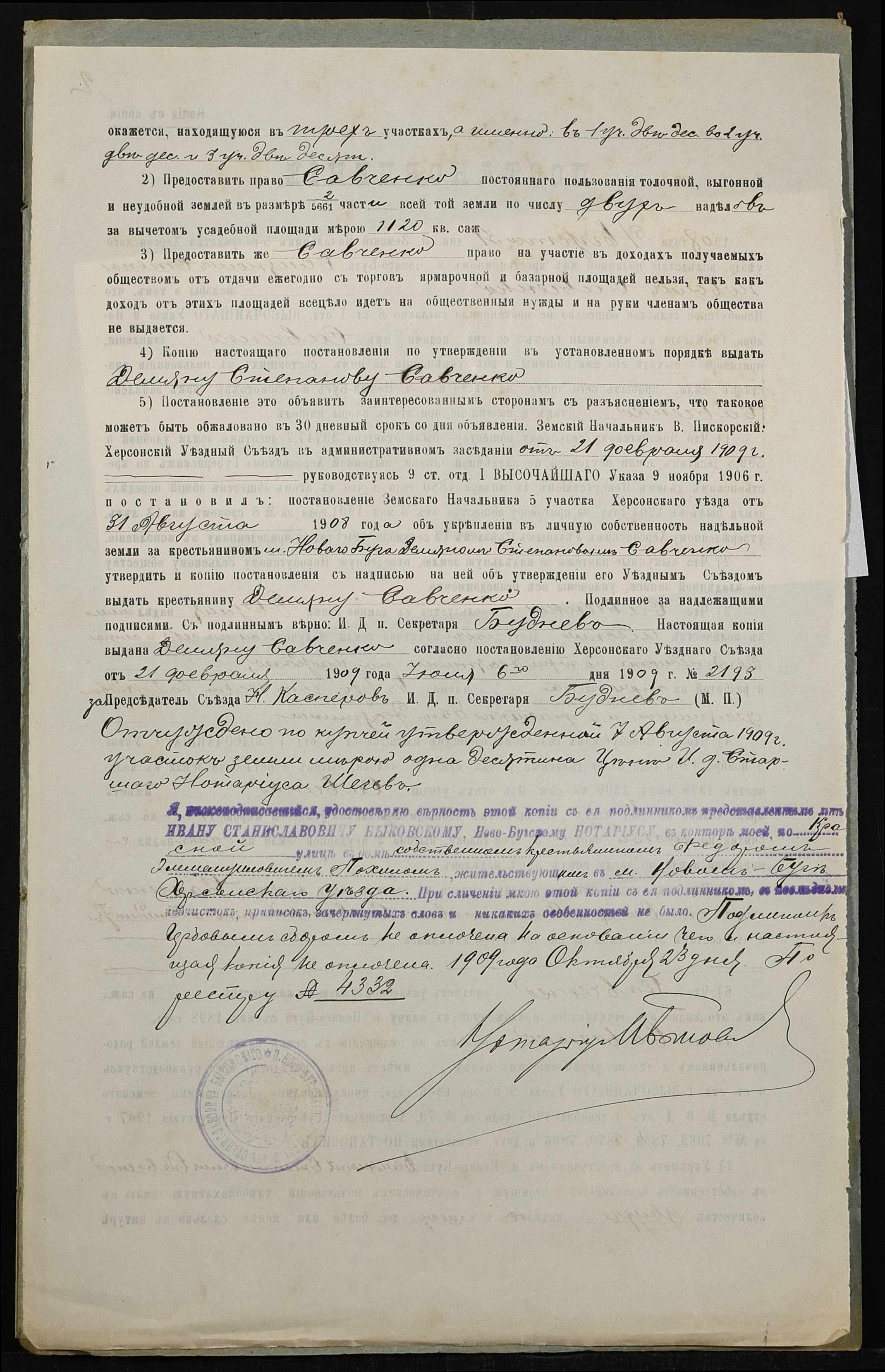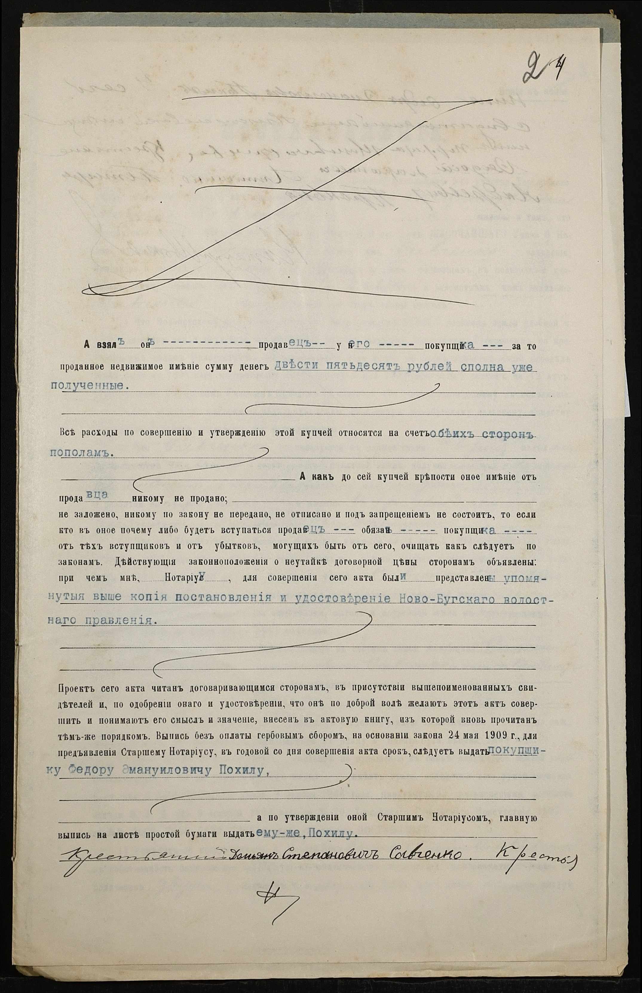 • • • • Справа № 140 “Справа про вчинення купчої про продаж землі селянином Савченком Дем’яном (Савченко Демьяном) Степановичем на користь селянина Похила Федора Еммануїловича (Эммануиловича)”