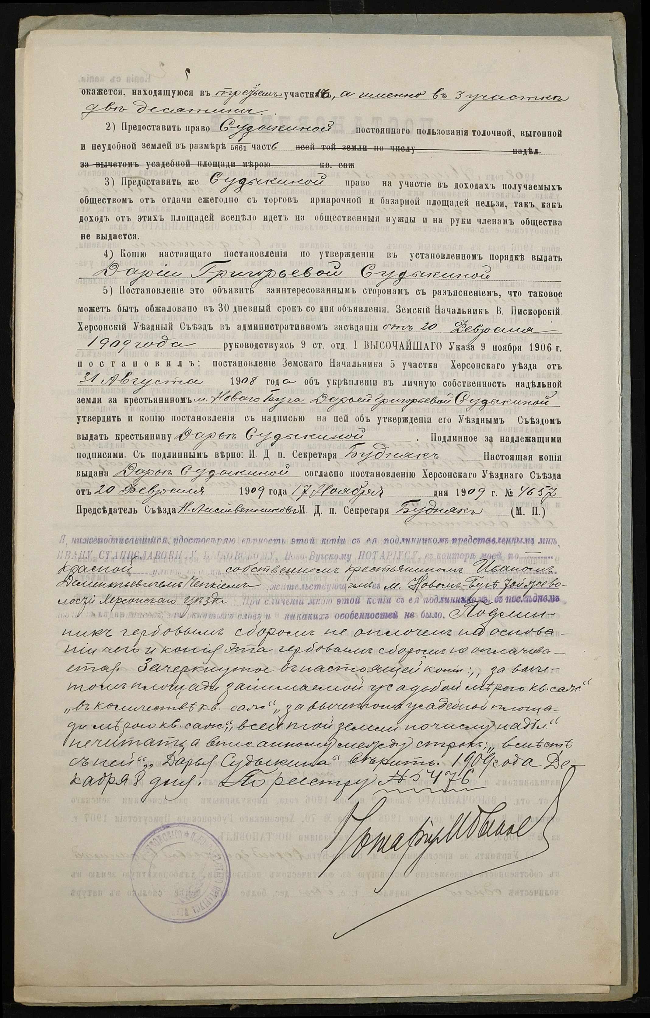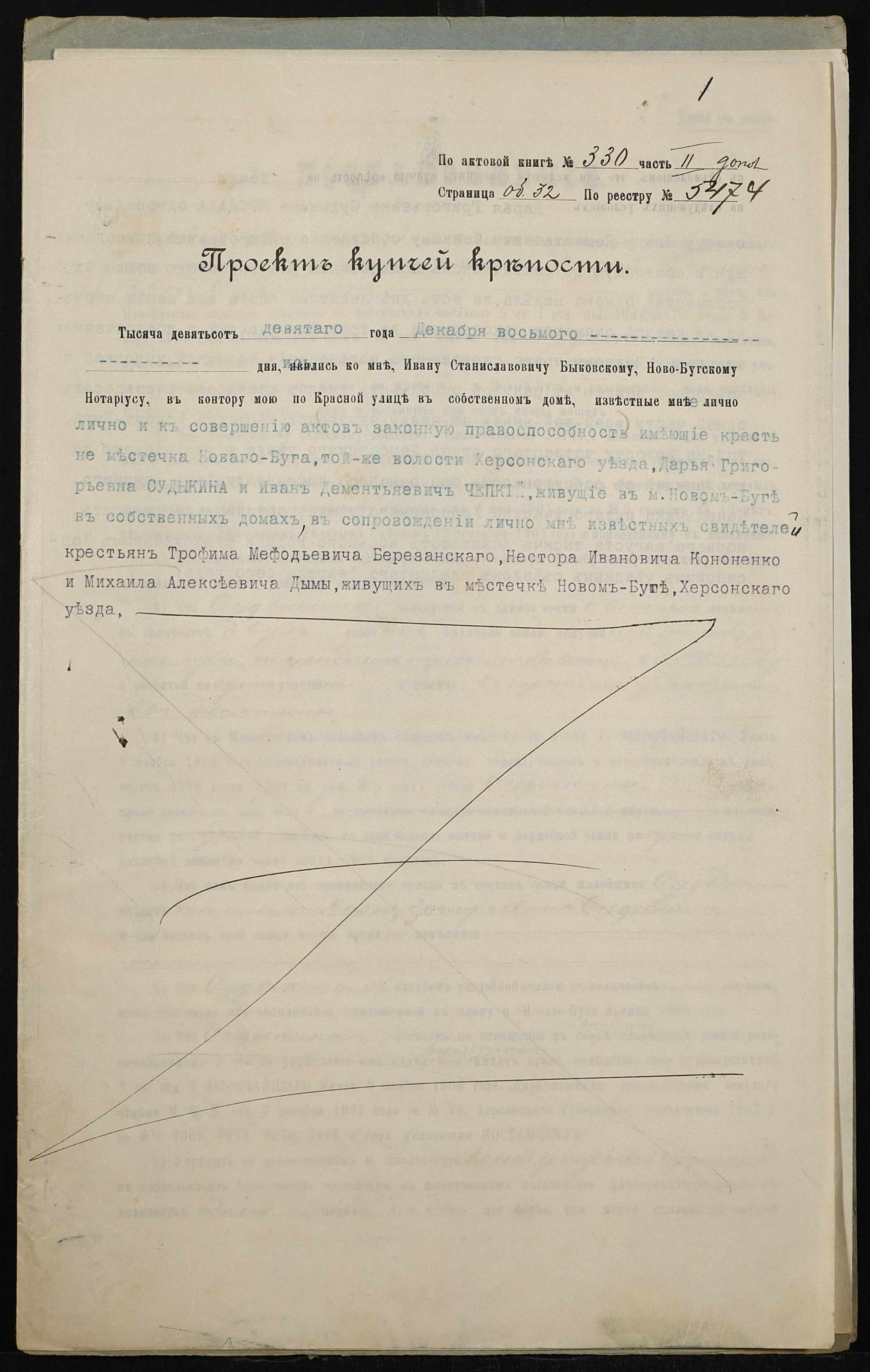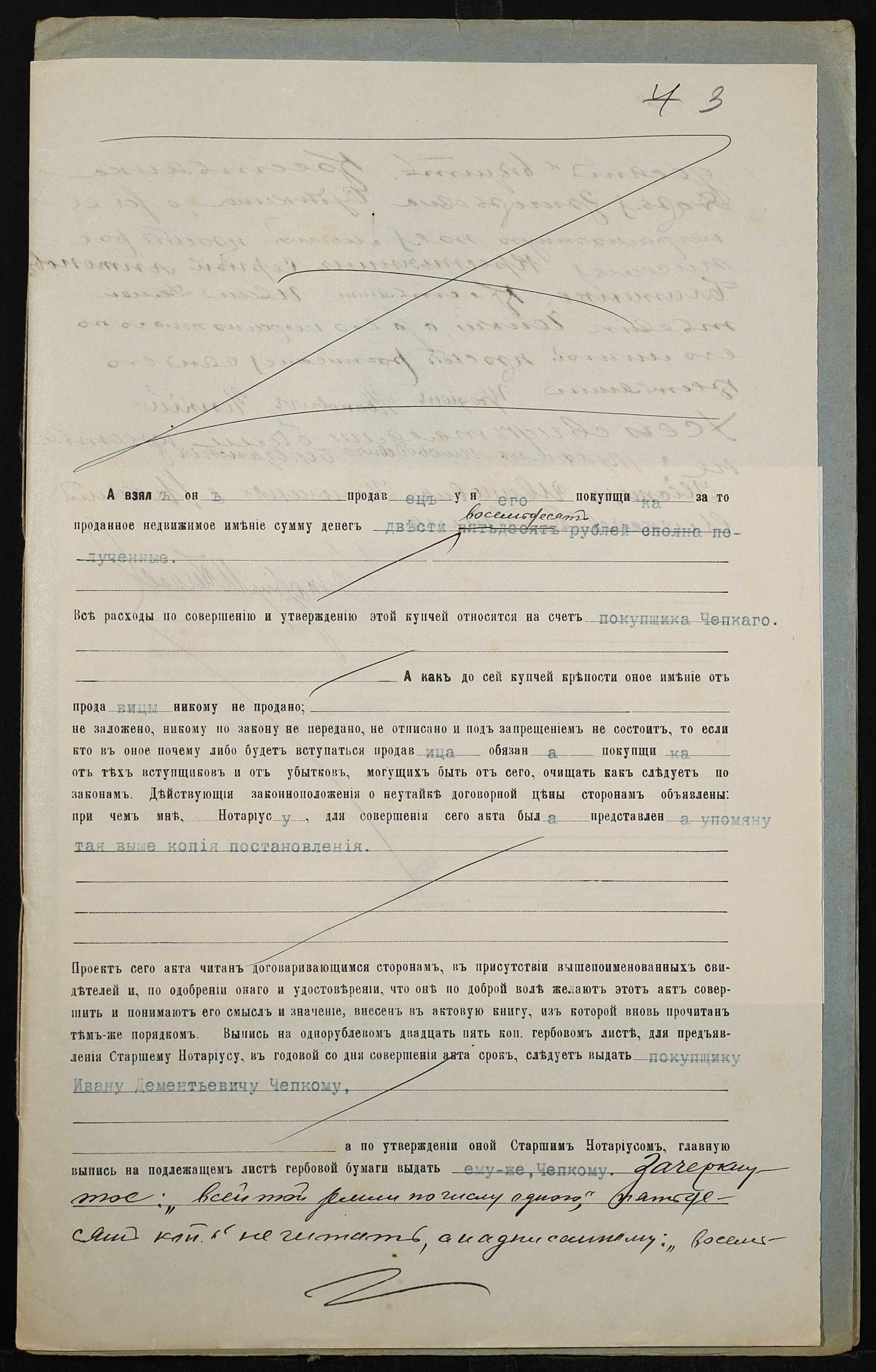 • • • • Справа № 145 “Справа про вчинення купчої про продаж землі селянкою Судикіною Дарією Григорівною (Судыкиной Дарией Григорьевной) на користь селянина Чепкого Івана Дементійовича (Ивана Дементьевича)”